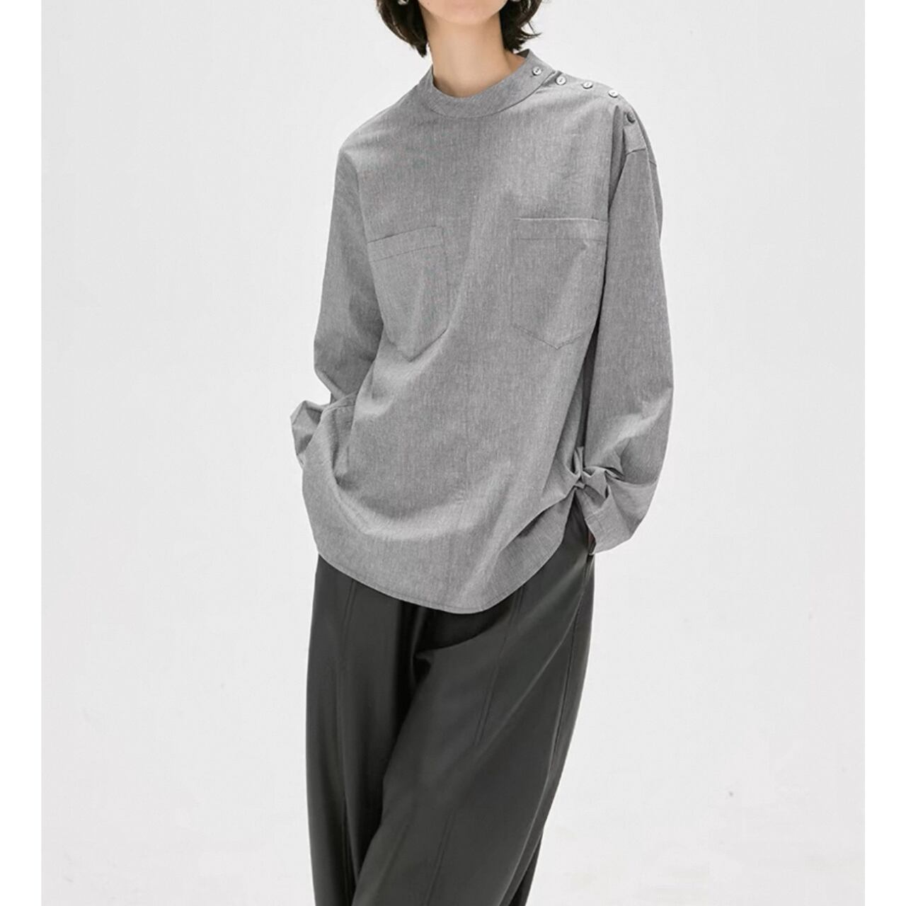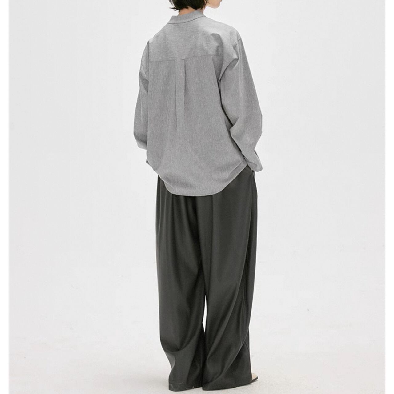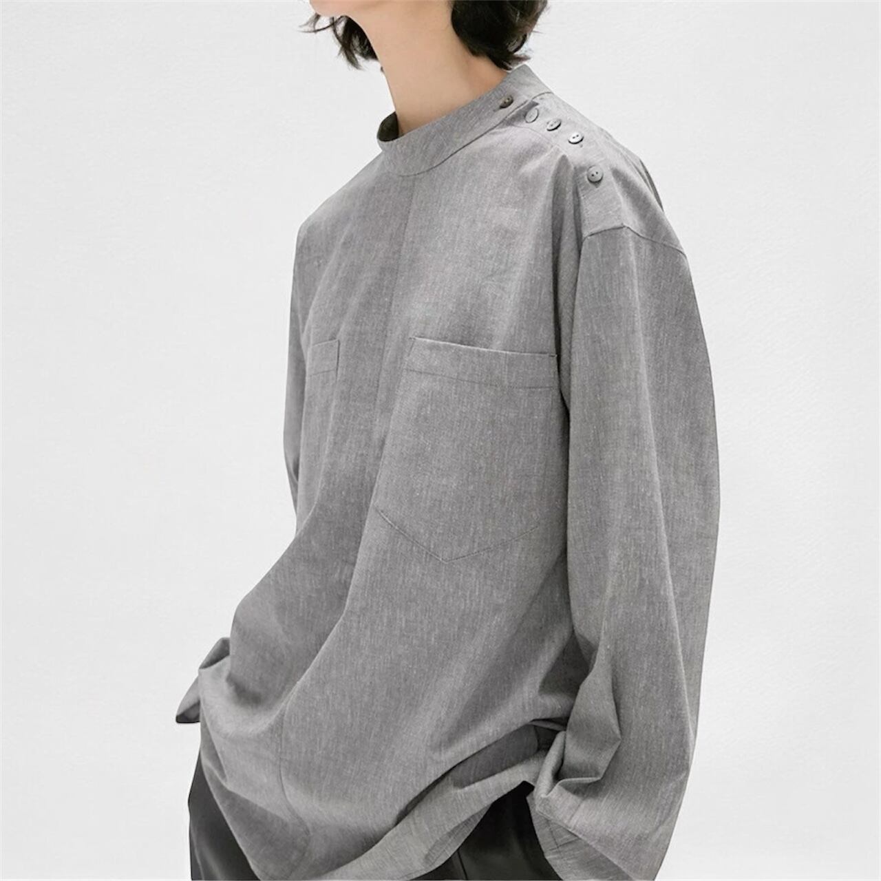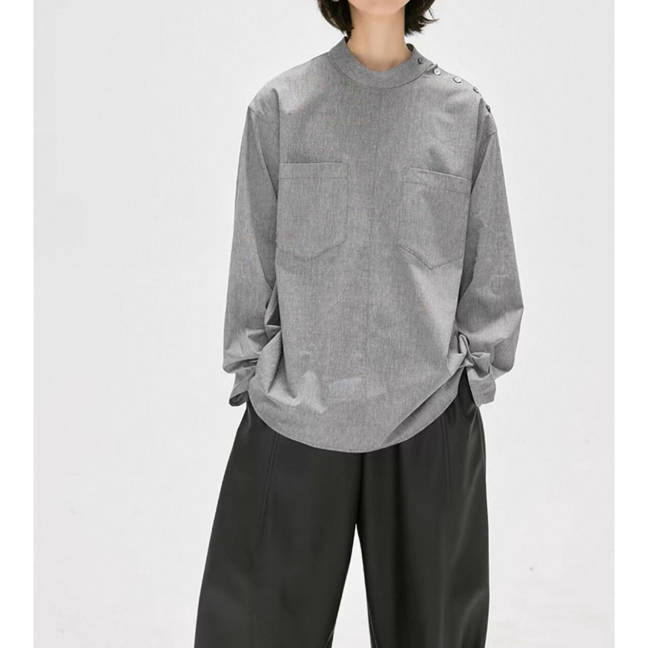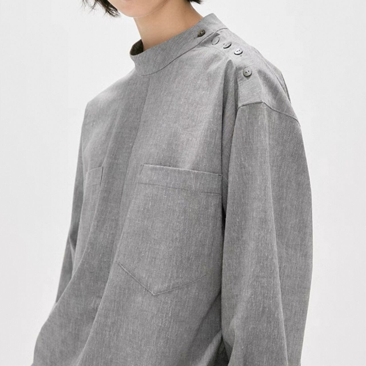 shoulder button band collar shirt 00190
