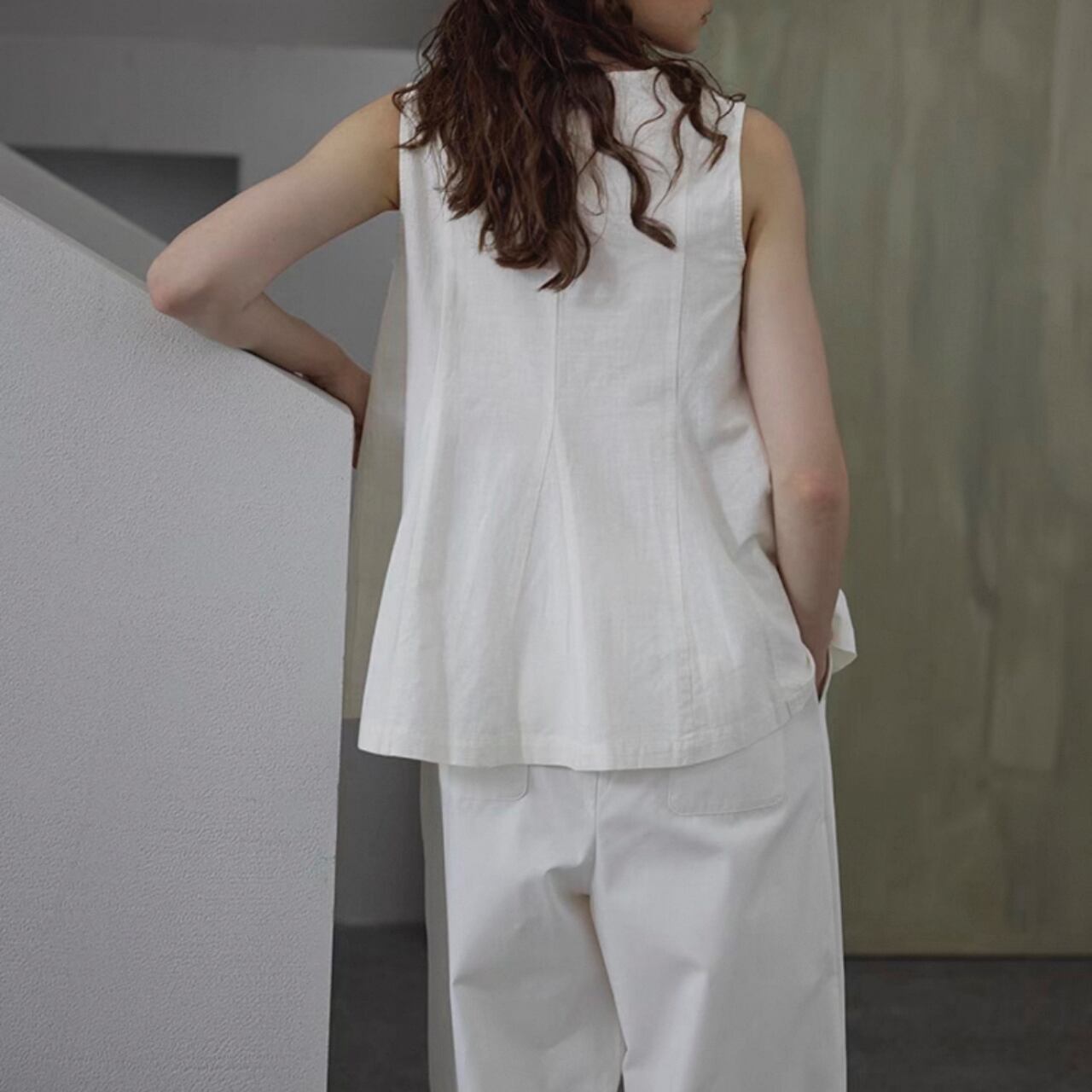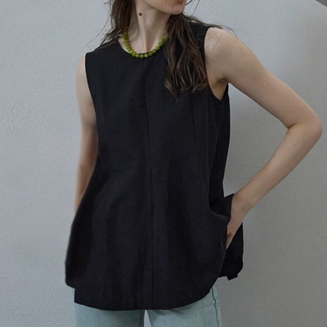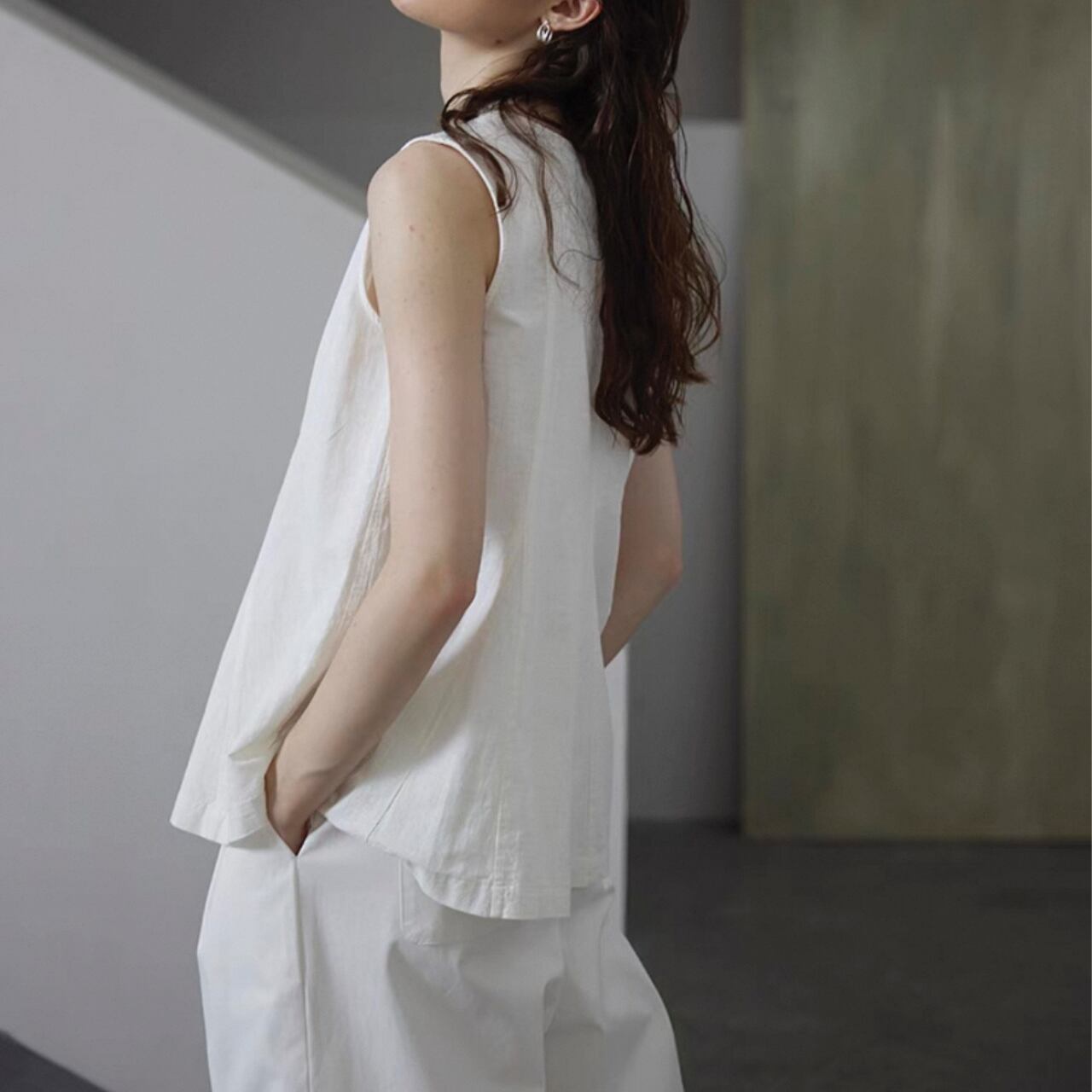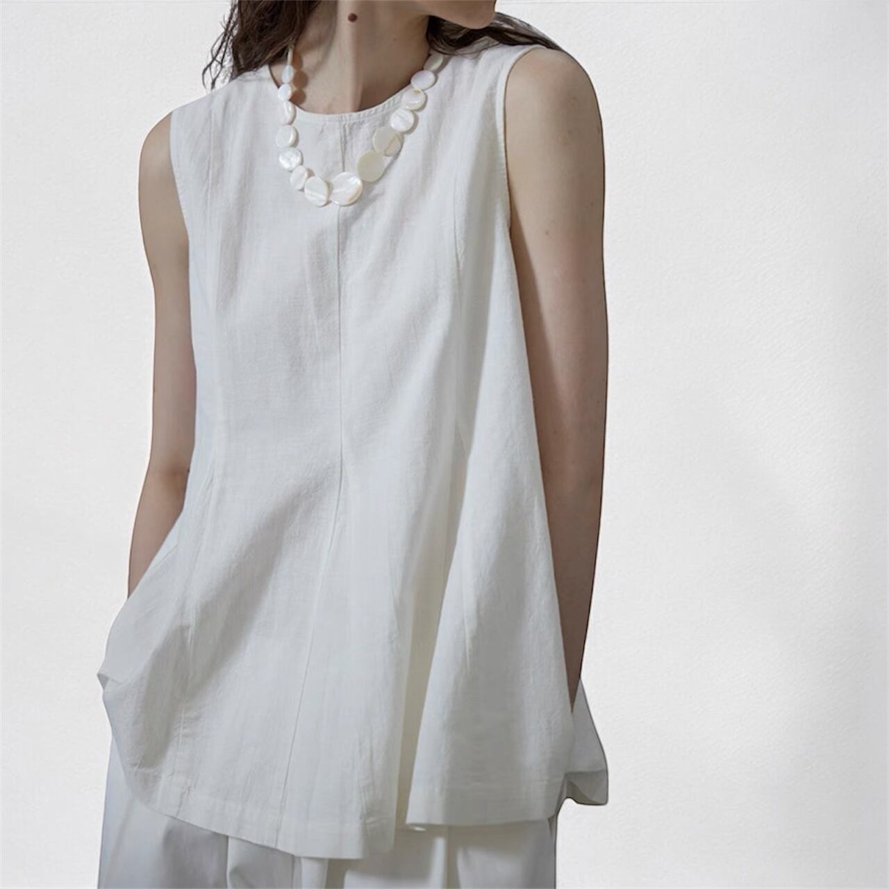 上品さと遊び心を兼ね備えたリネンブレンドトップス。