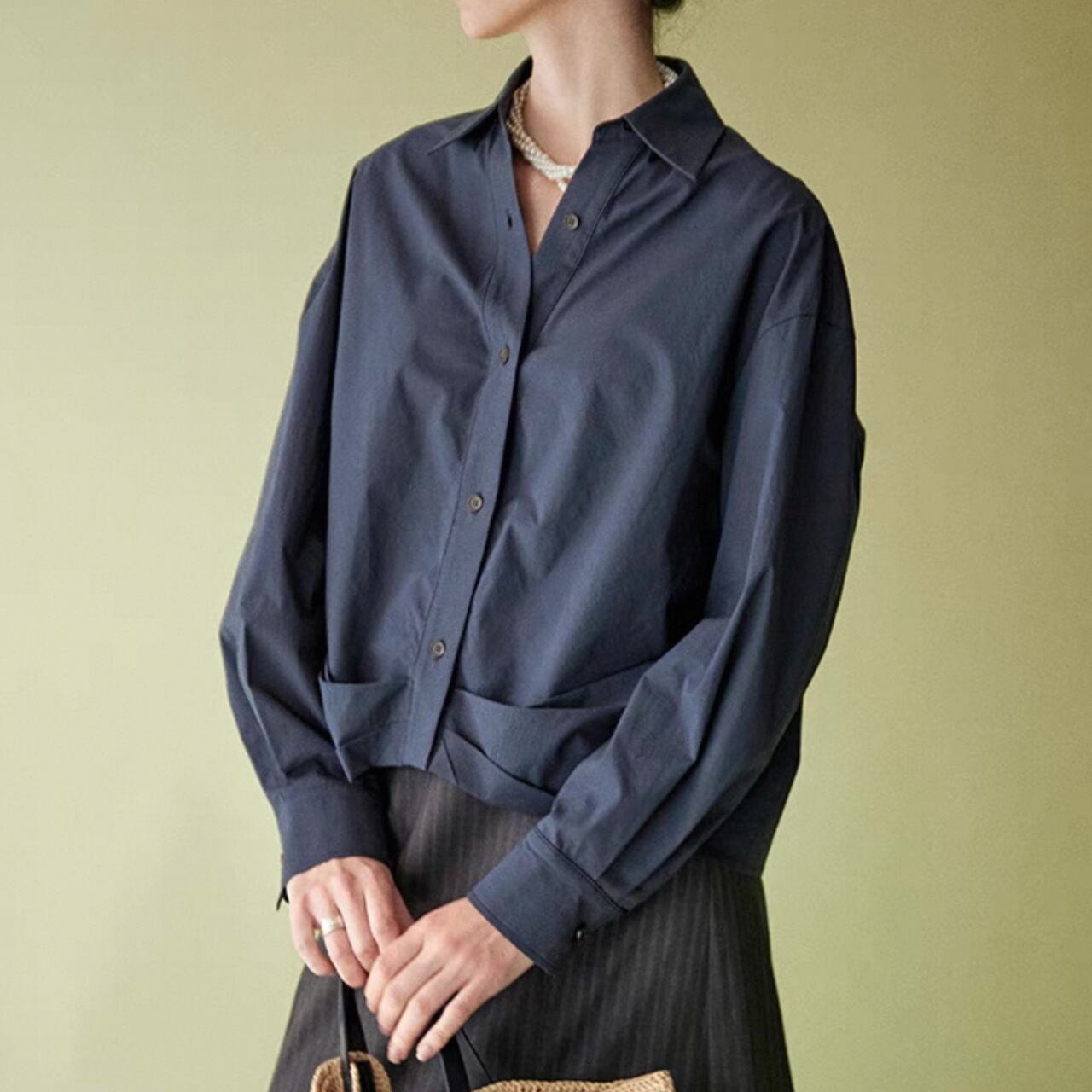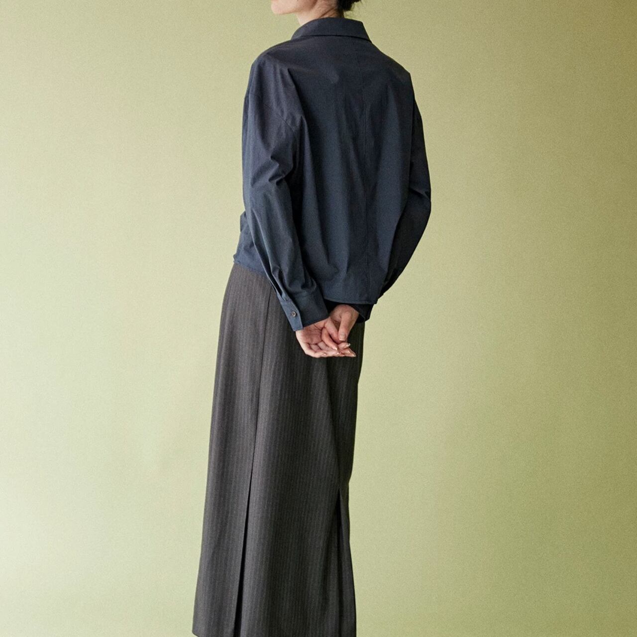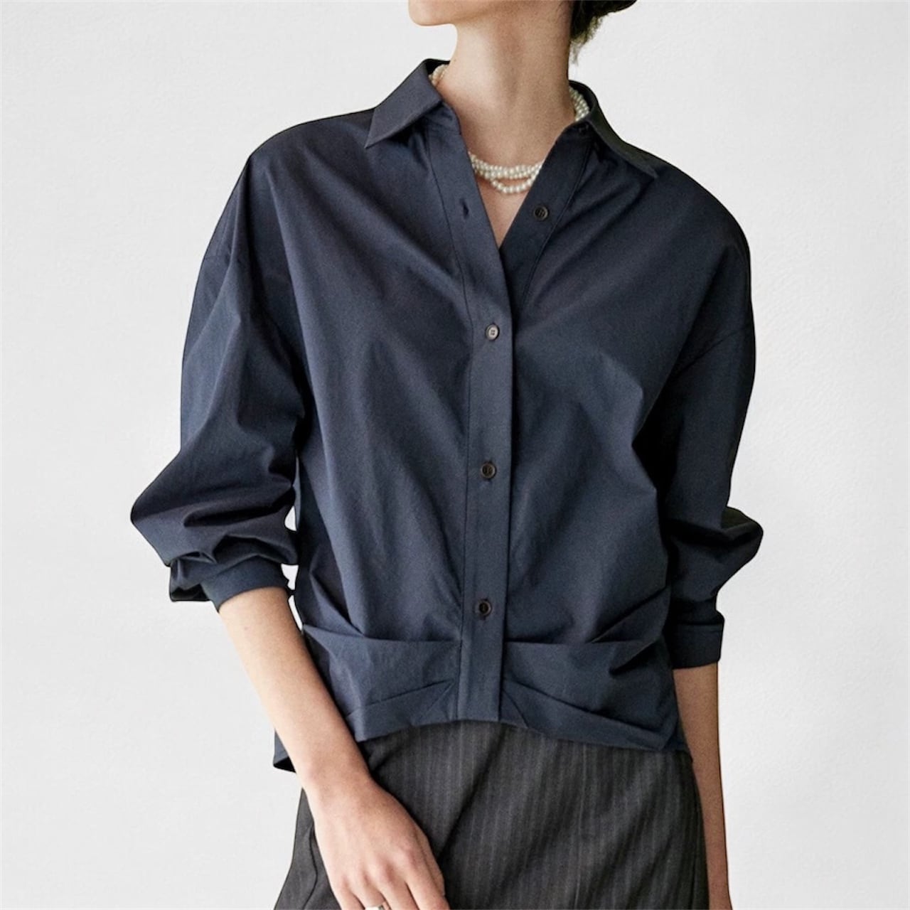 裾プリーツがユニークなクロップドシャツ。