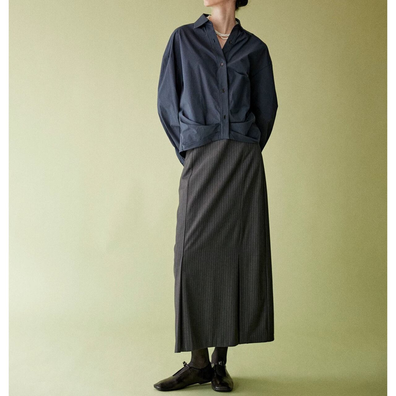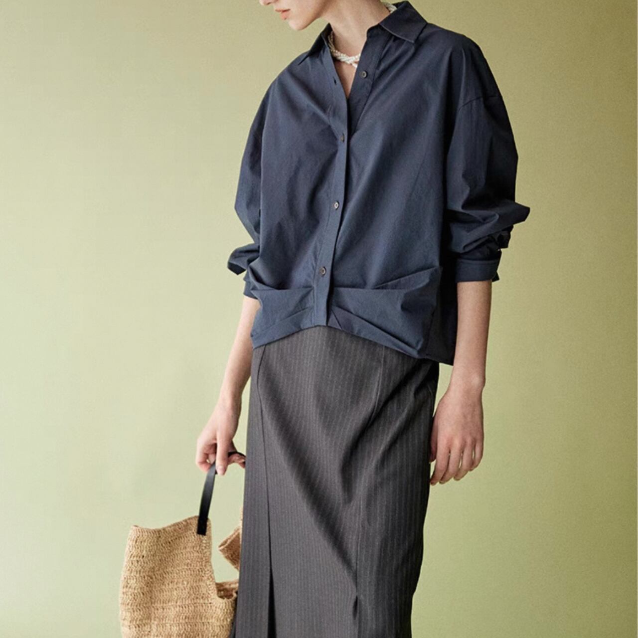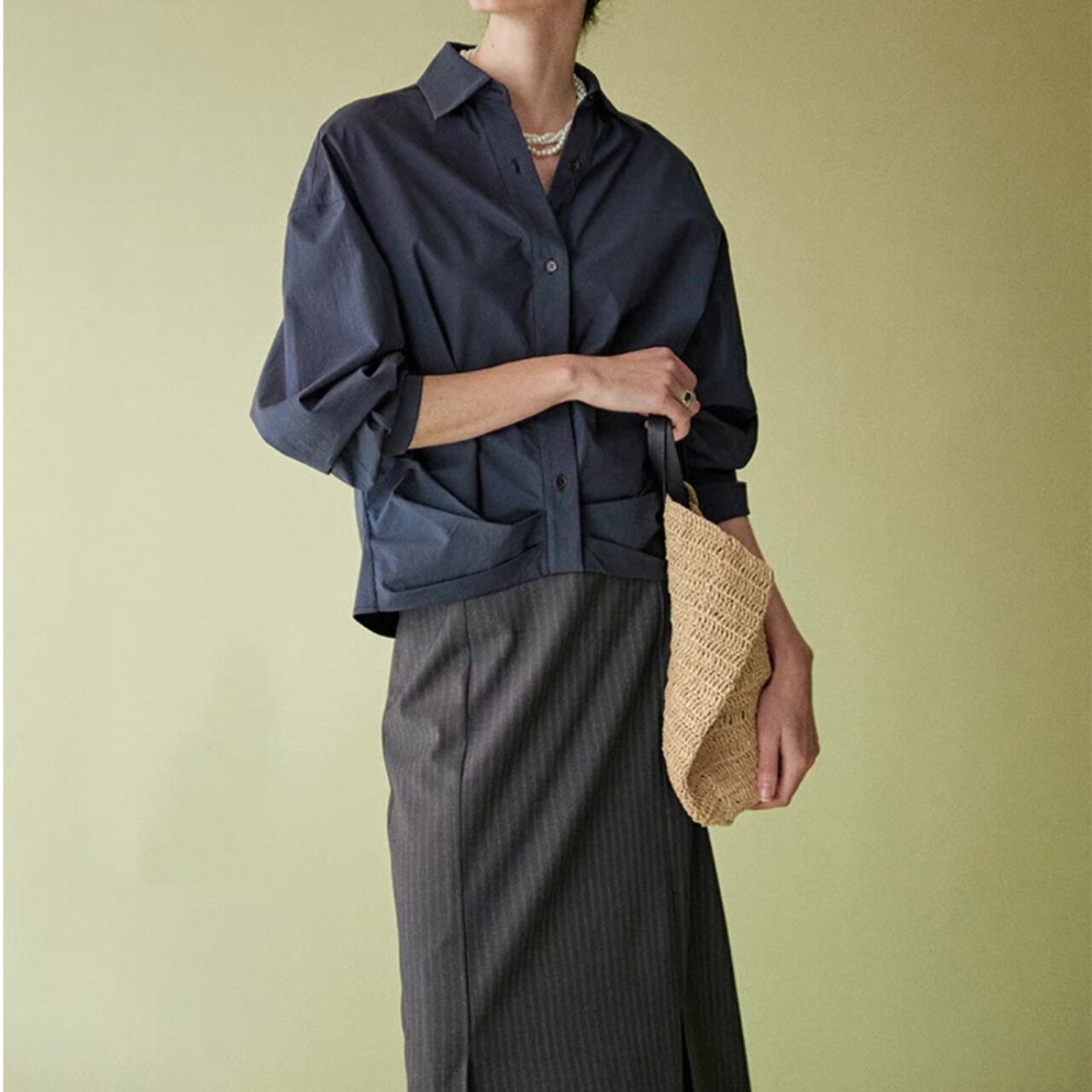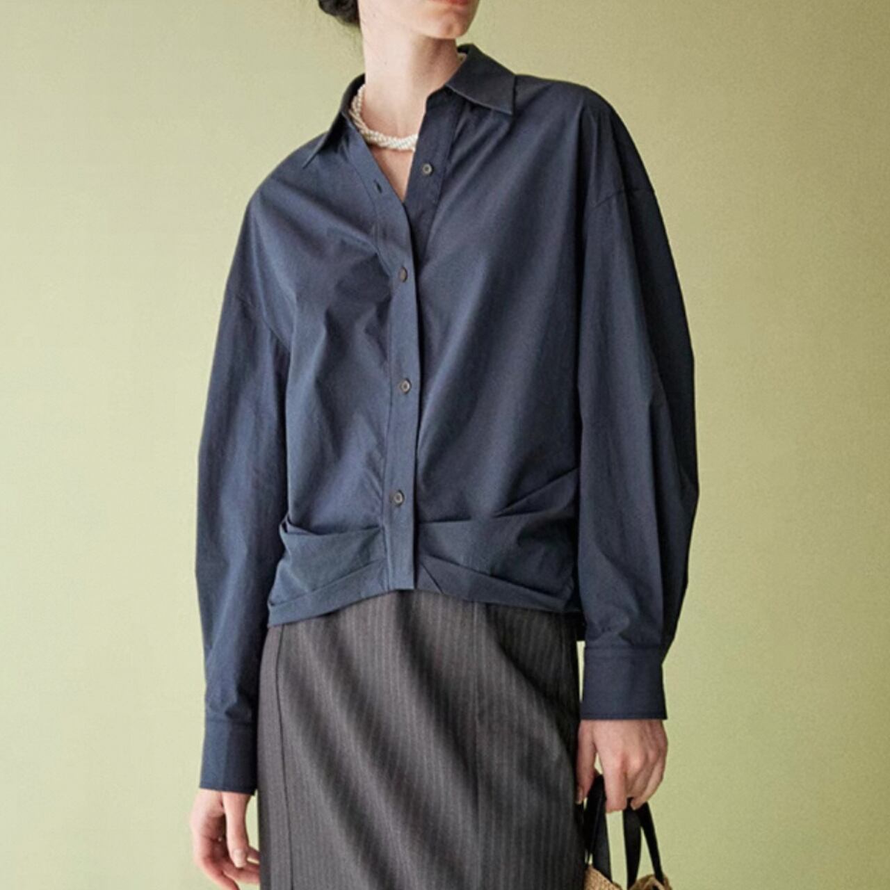 裾プリーツがユニークなクロップドシャツ。
