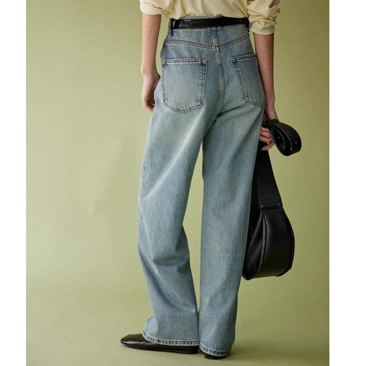 あらゆる脚の形をカバーし、長く魅せる万能ストレートスタイル。バックの大き目のパッチポケットがヒップをすっきりと魅せ美しい後ろ姿に。ウォッシュ加工により、どんなコーデもこなれた雰囲気を与えてくれる。