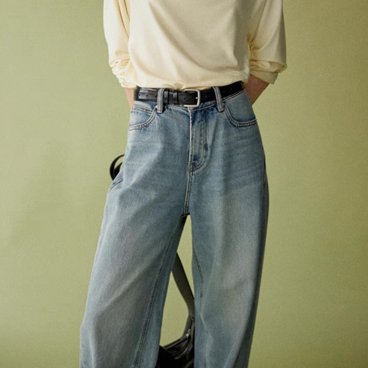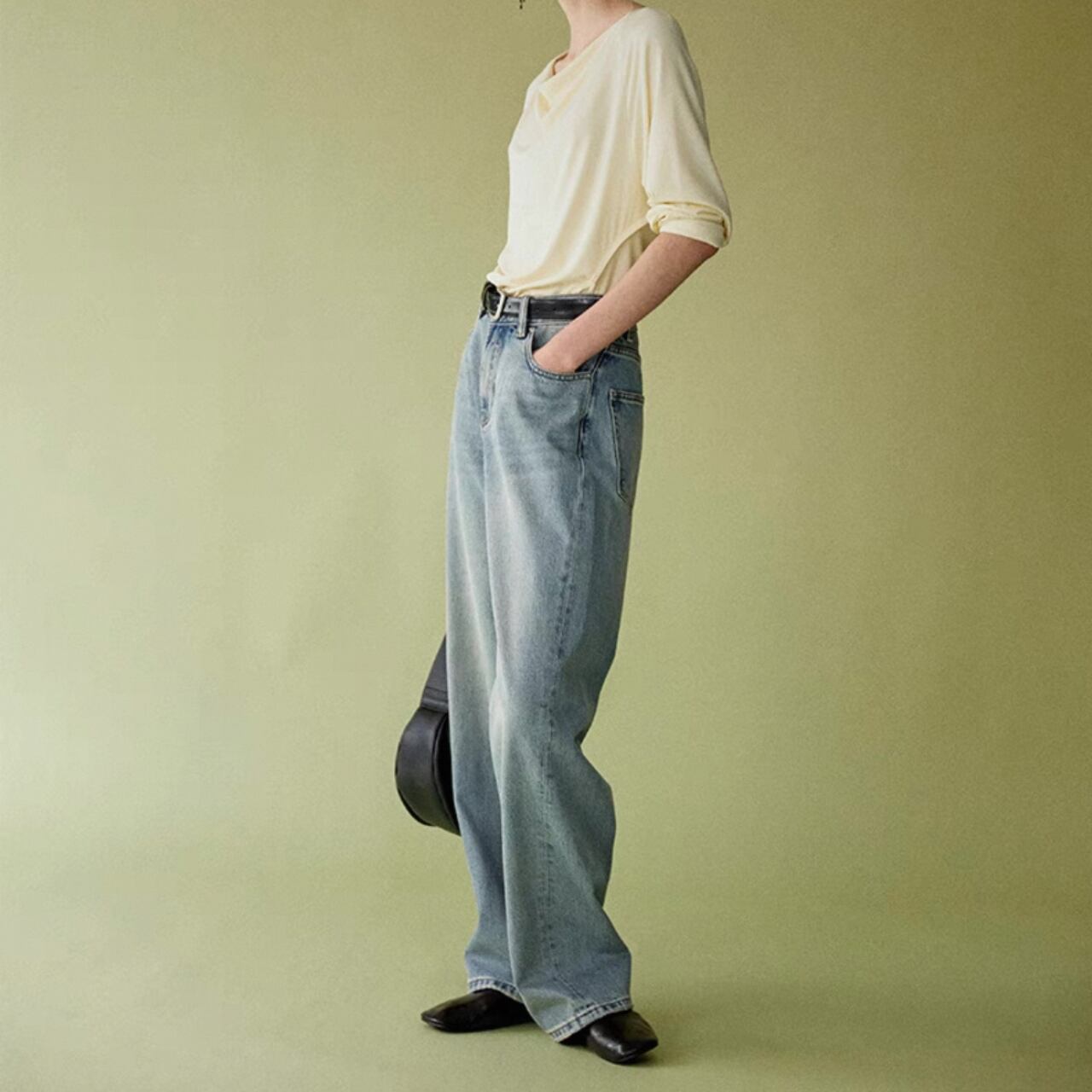 使い込むほどに味が出る、定番のワイドジーンズ。