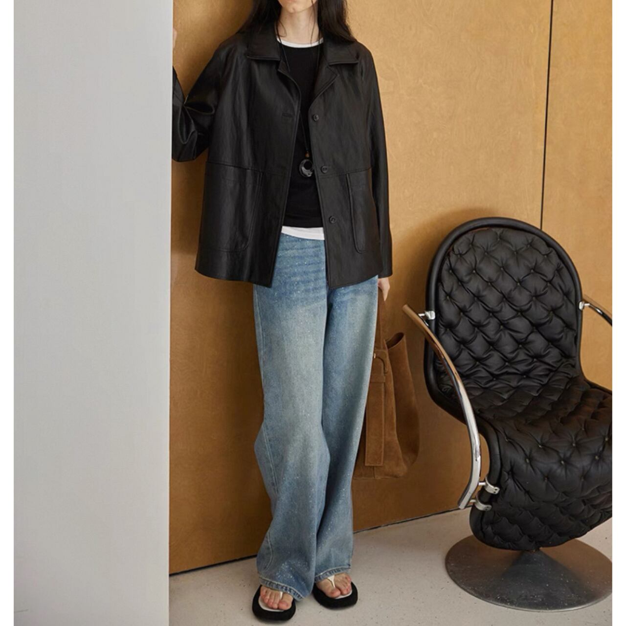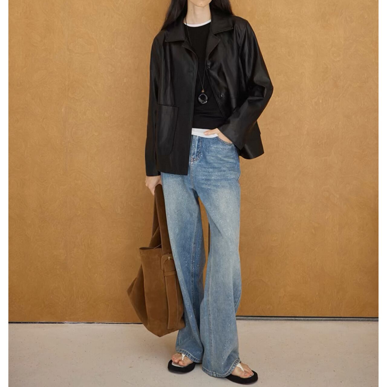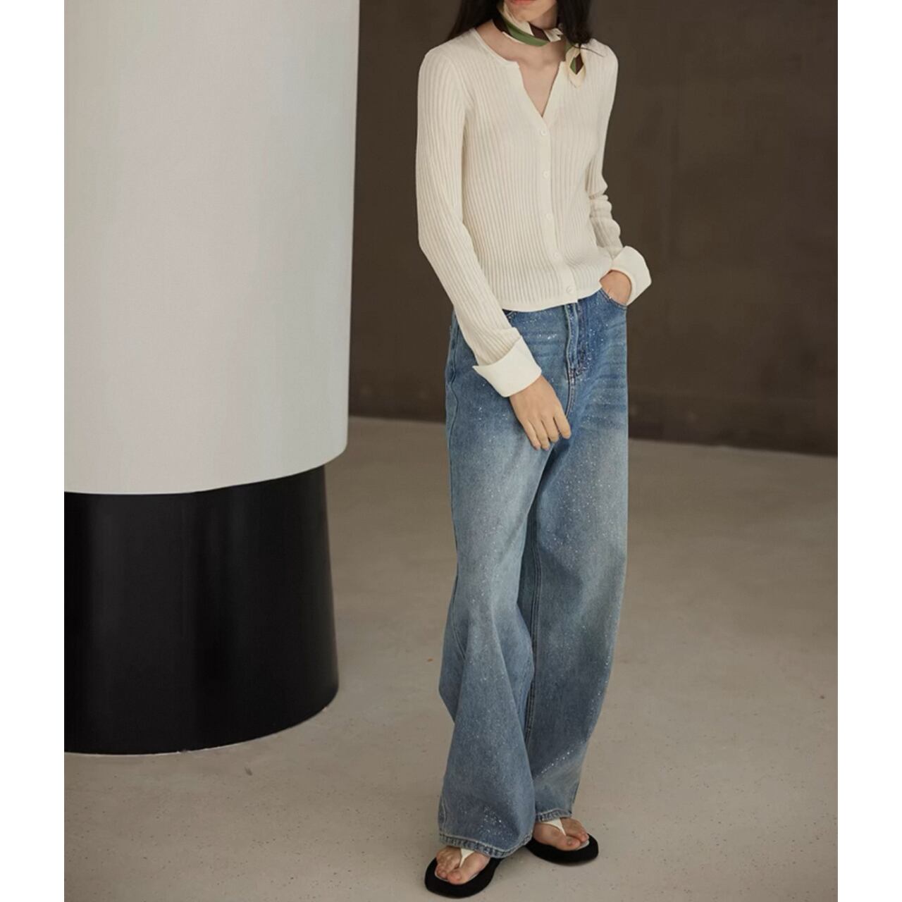 煌くシルバー加工が目を惹くワイドジーンズ。