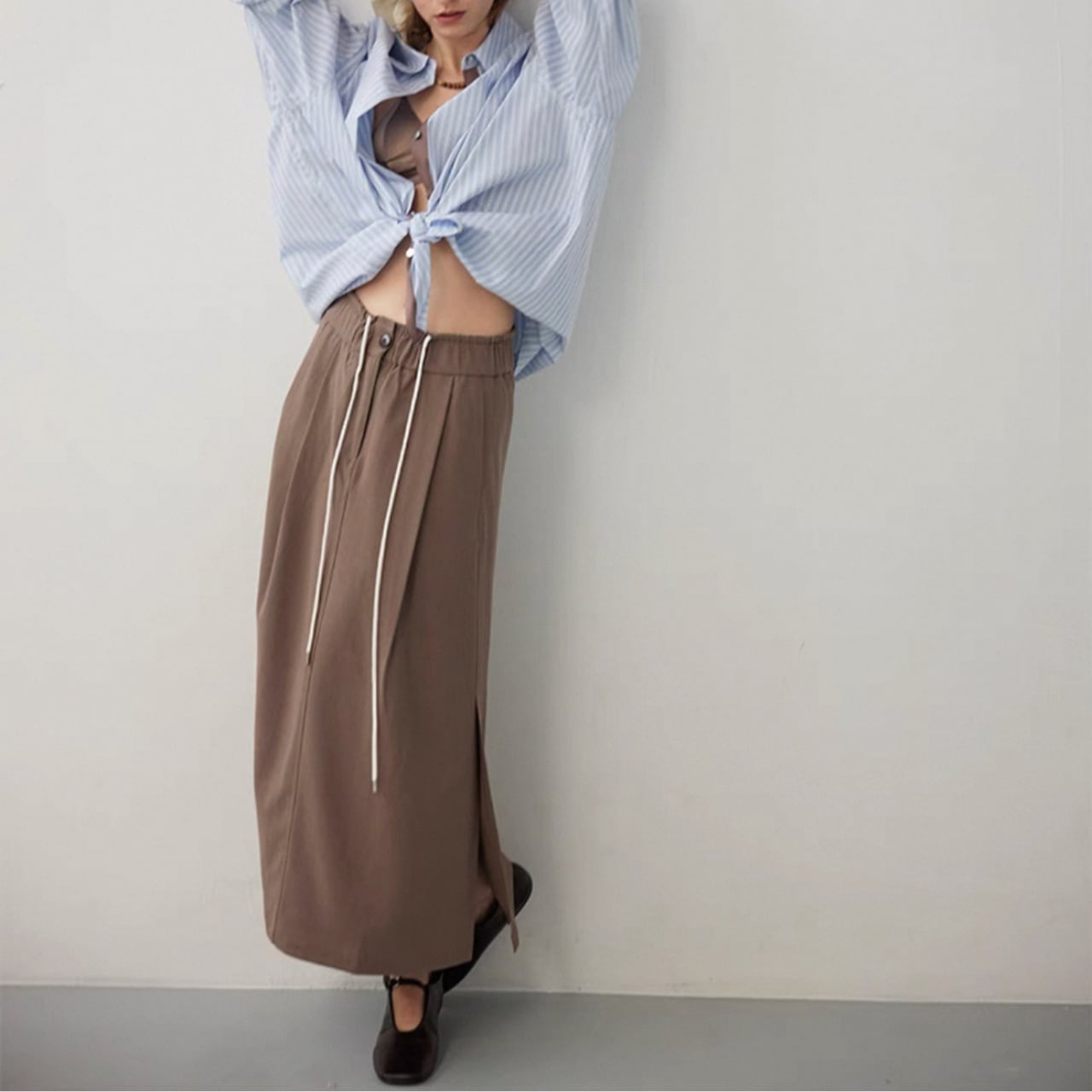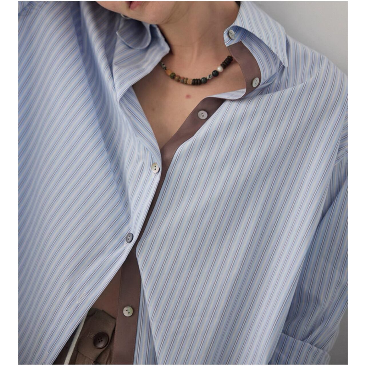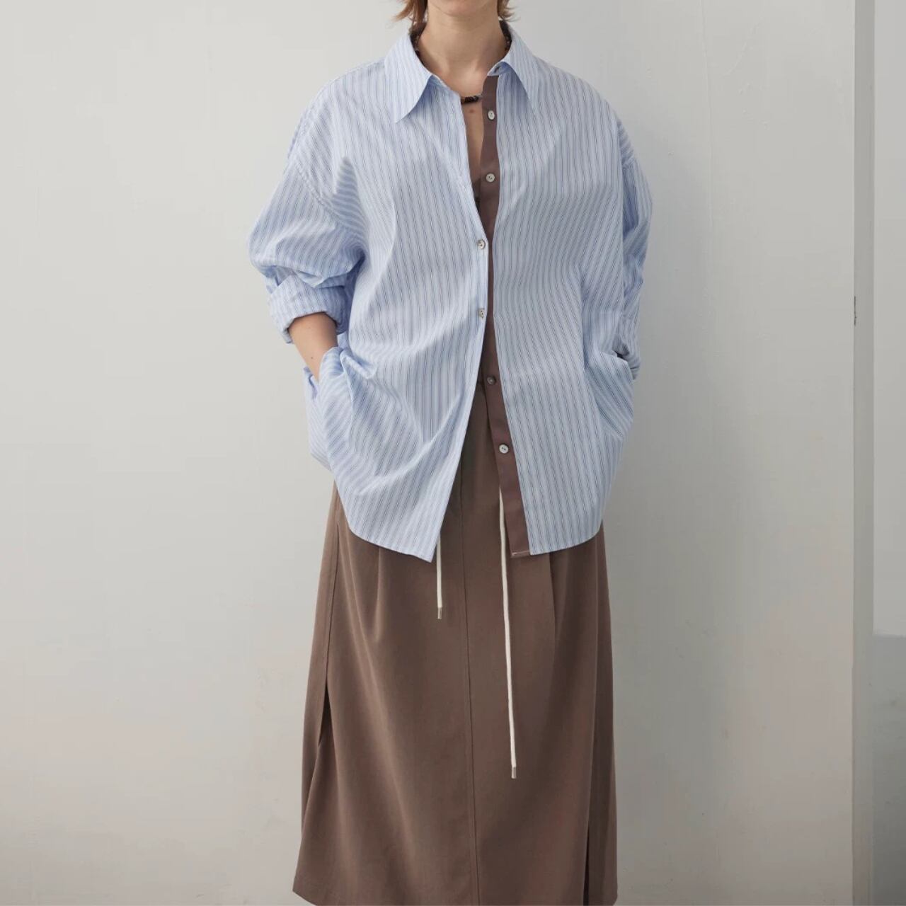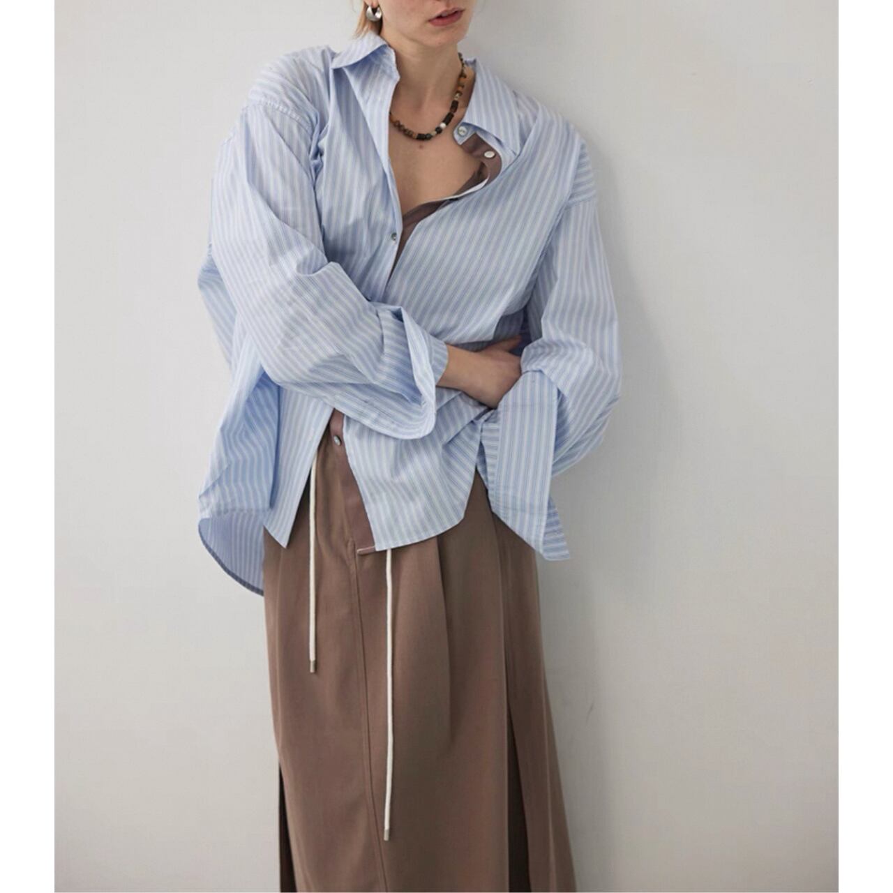体型を選ばないオーバーサイズスタイルは、一枚で着ても羽織りとしても活躍。袖のスリットと前立てのコントラストの効いたリボンがさり気ない個性を醸し出す。