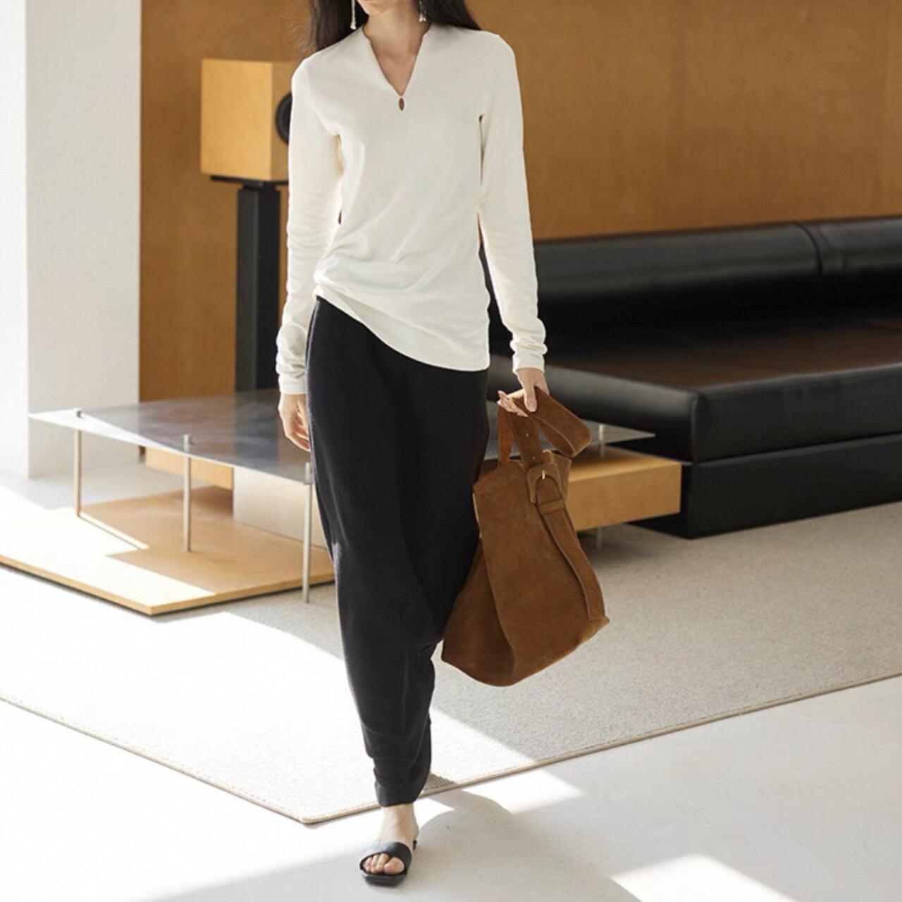 程よくゆとりのあるコクーンシルエットでゆったりとした履き心地を実現。ウエストは伸縮性バンドと内側のドローストリングでより快適に。デイリーユースに最適な一品。