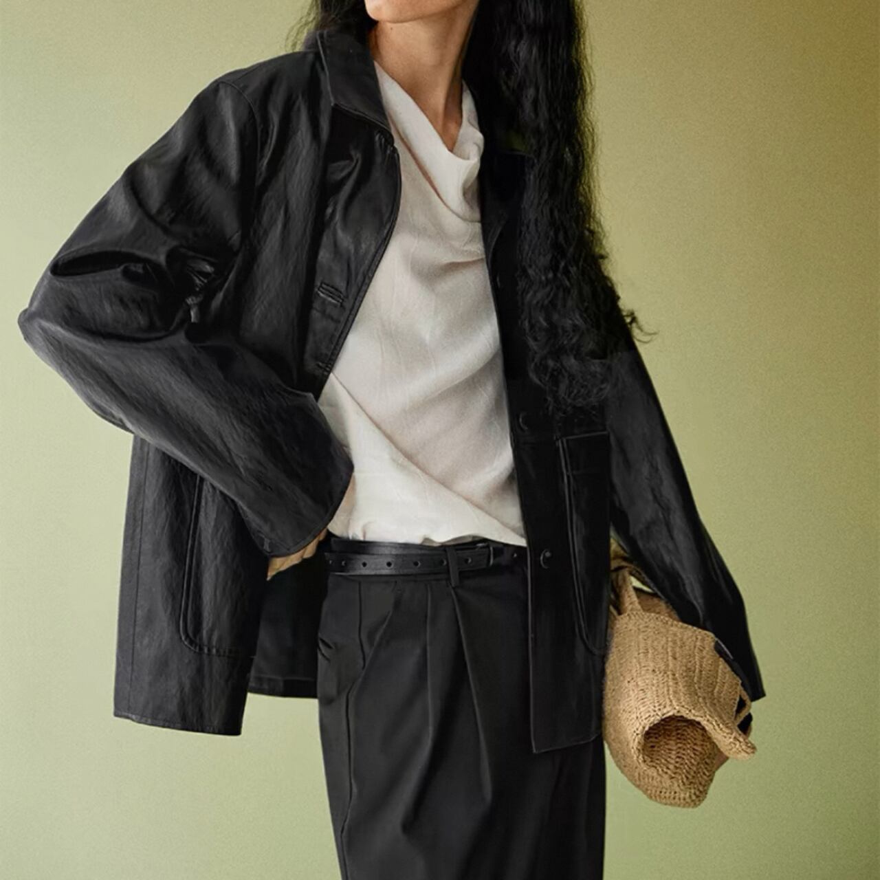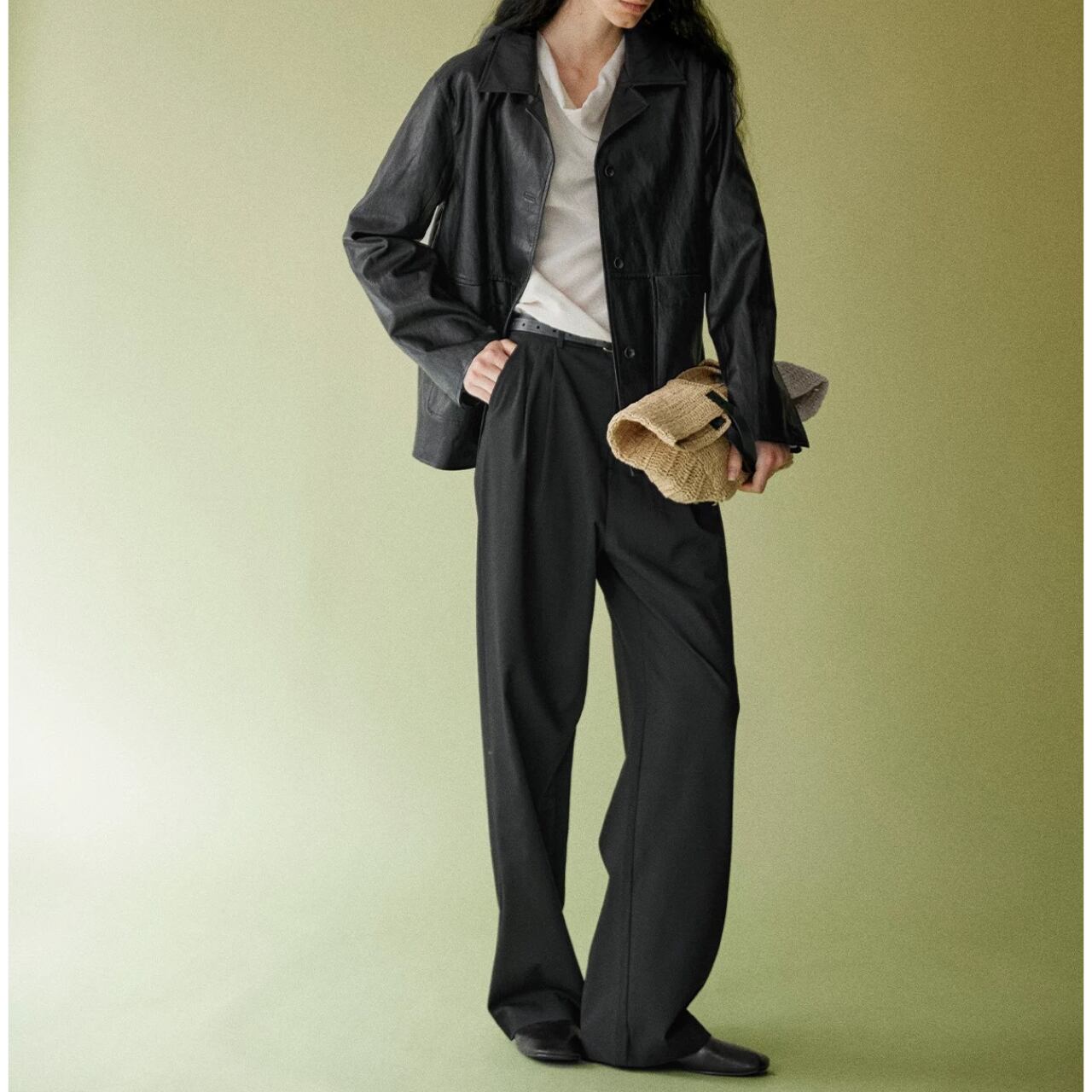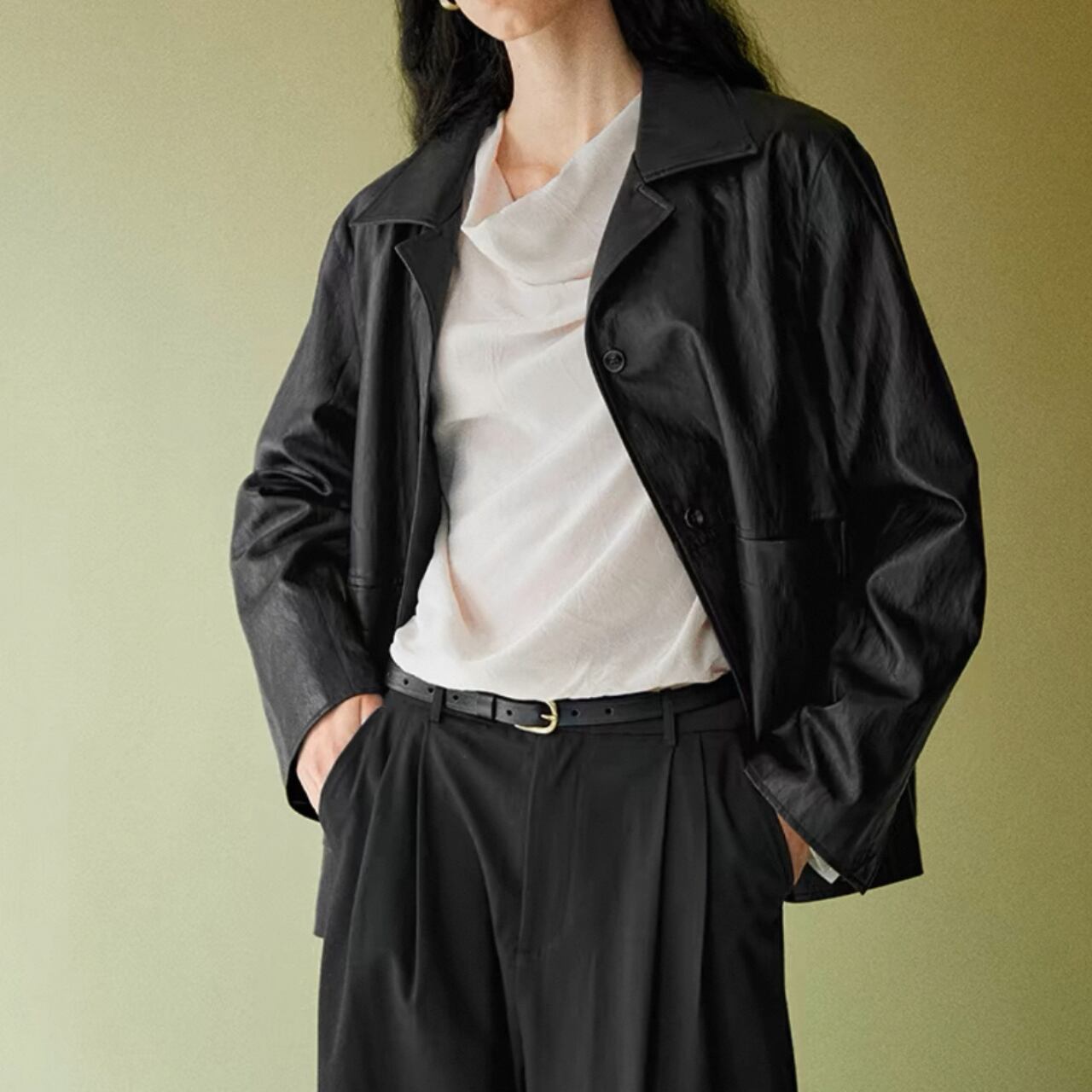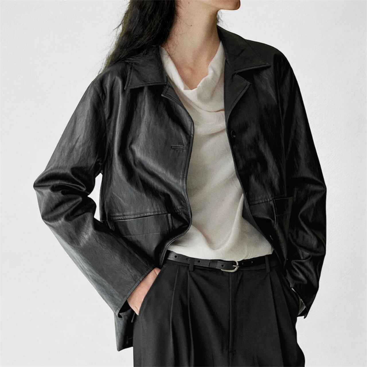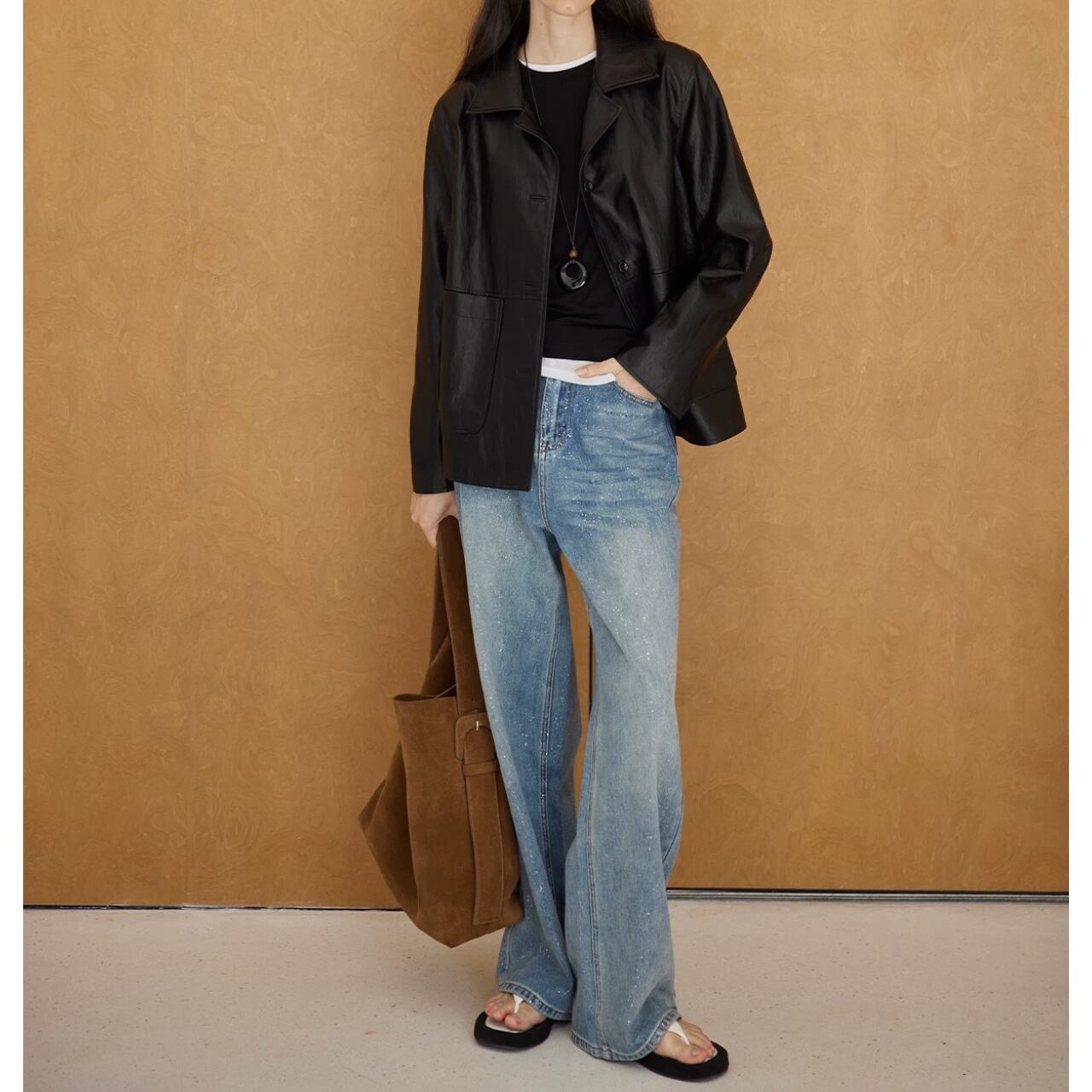 気取らないハンサムモードが完成、PUレザージャケット。