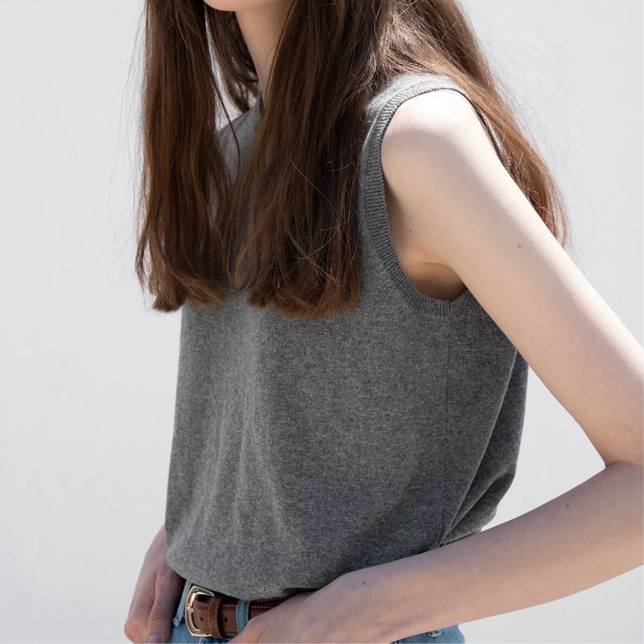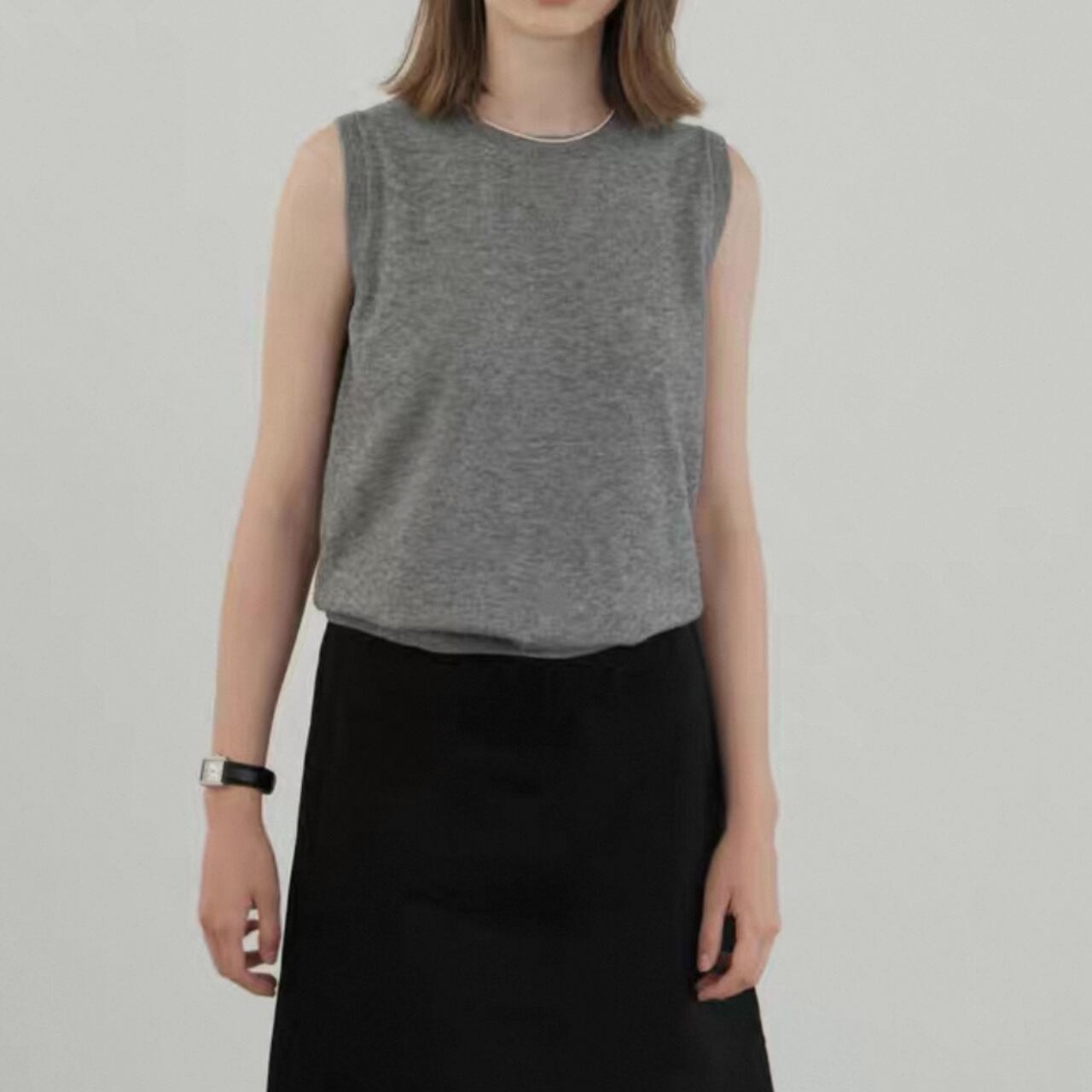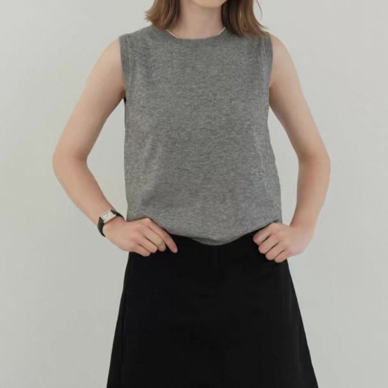 round neck gray knit vest 00242