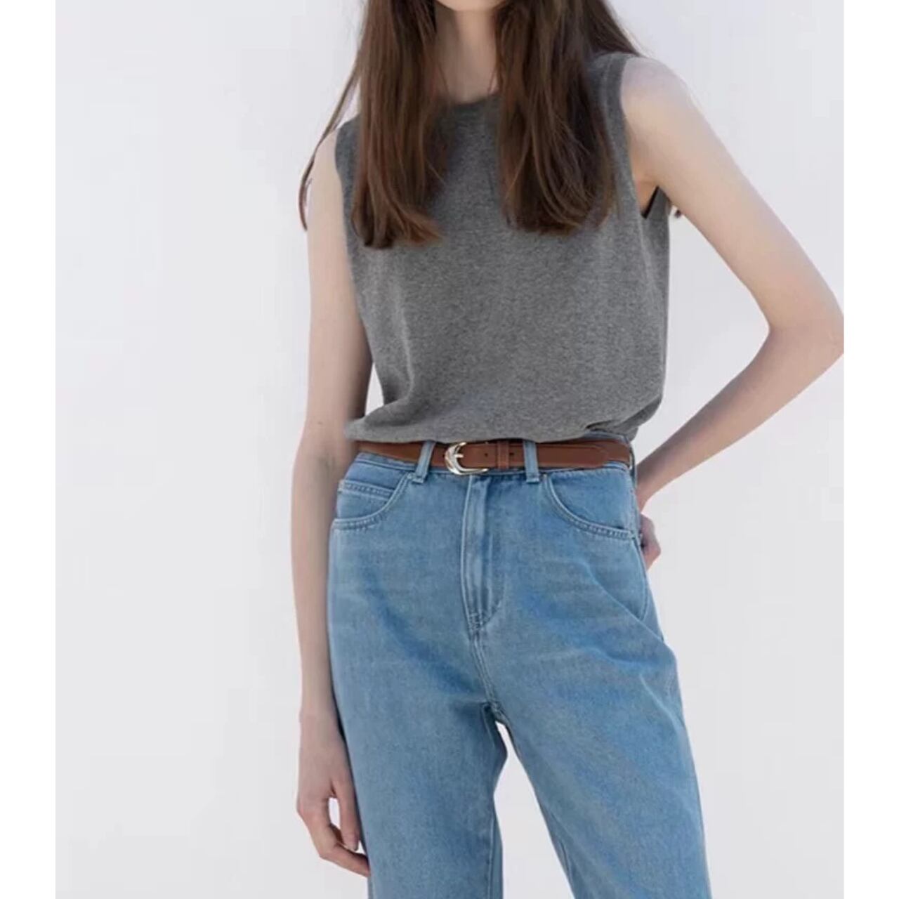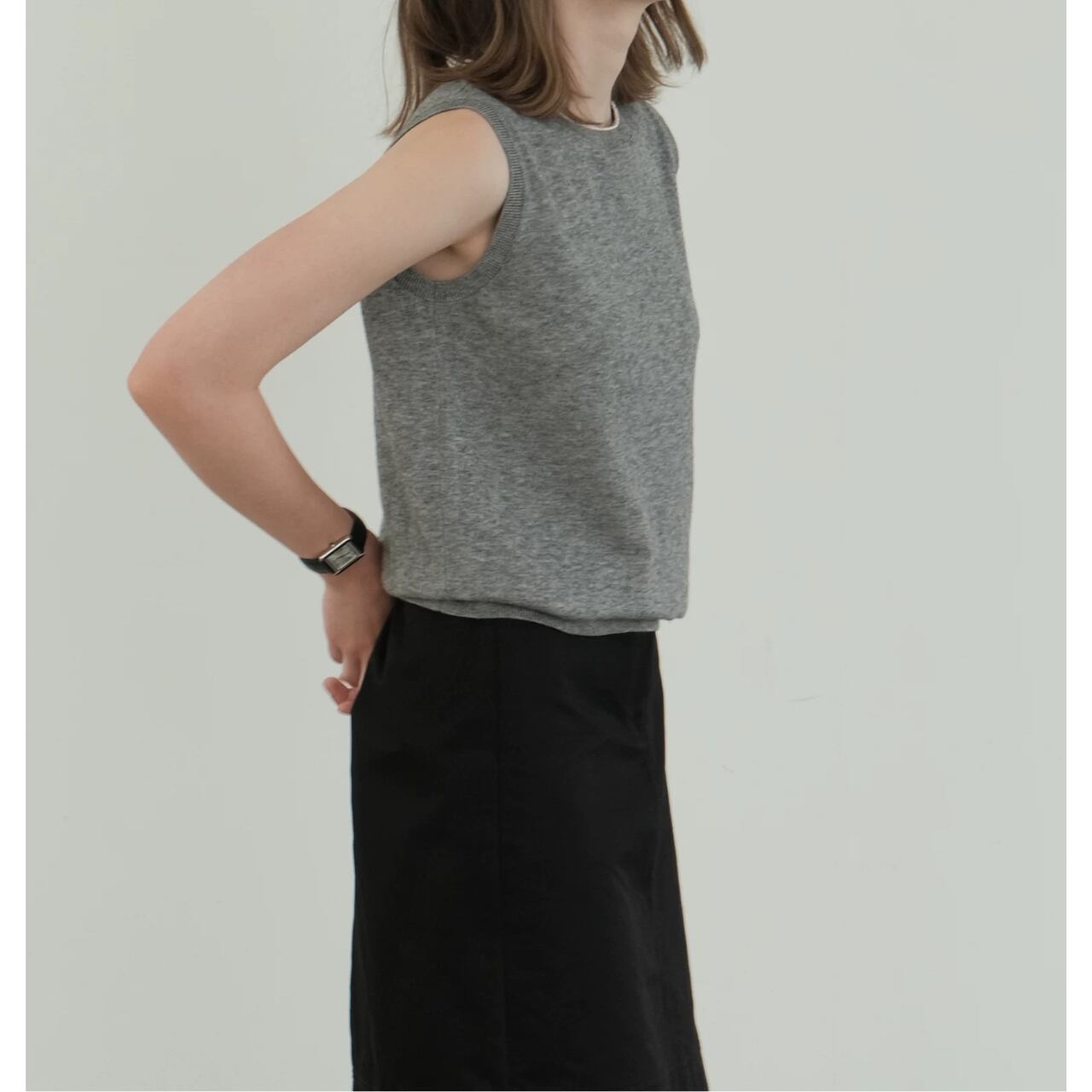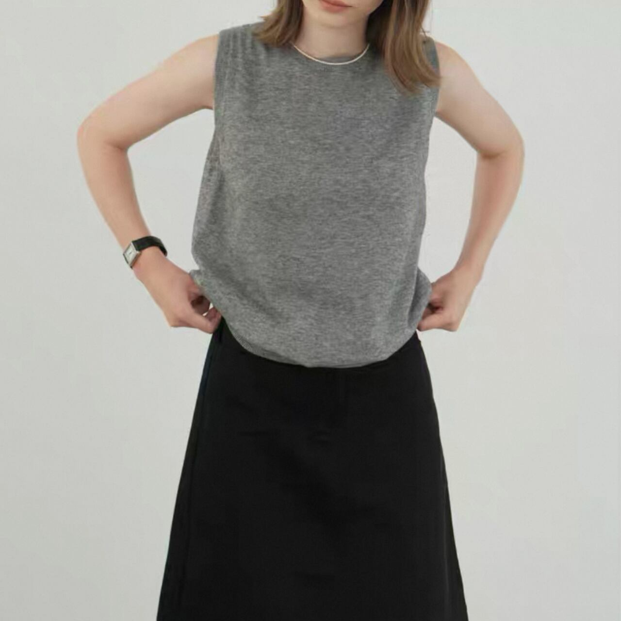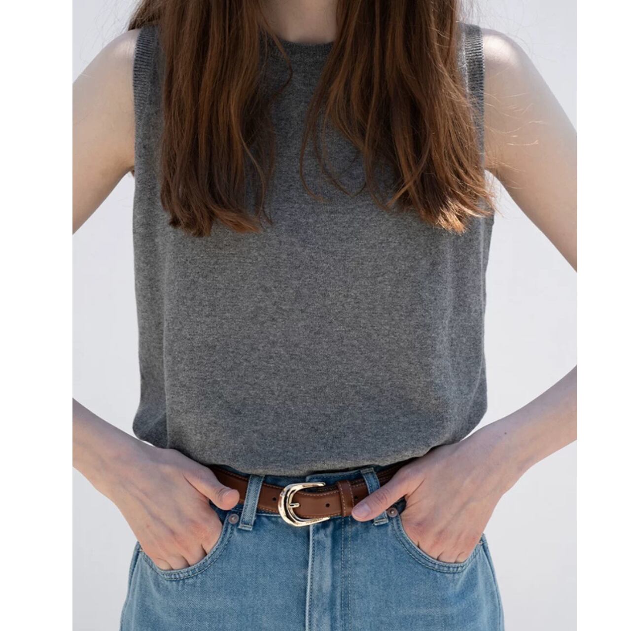round neck gray knit vest 00242