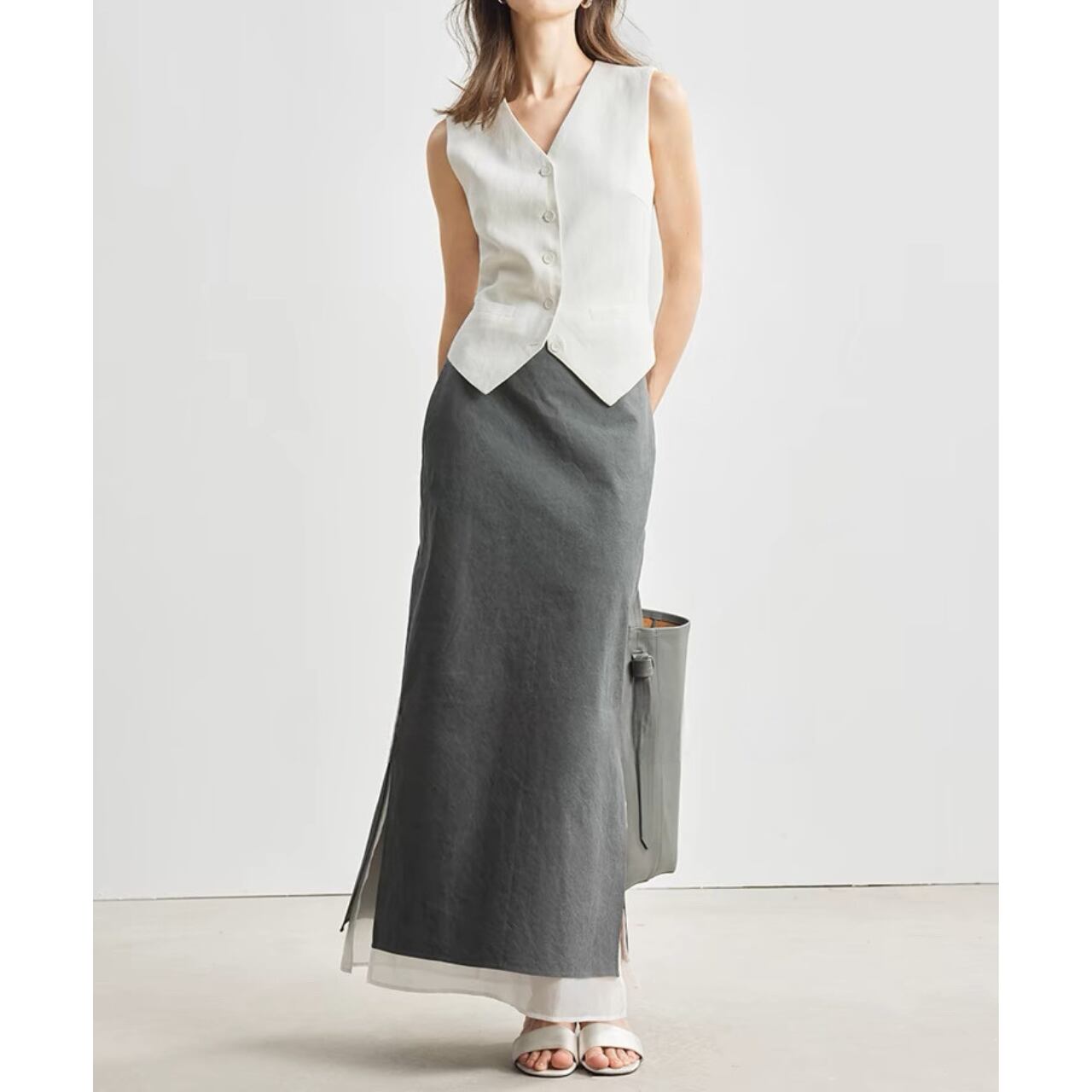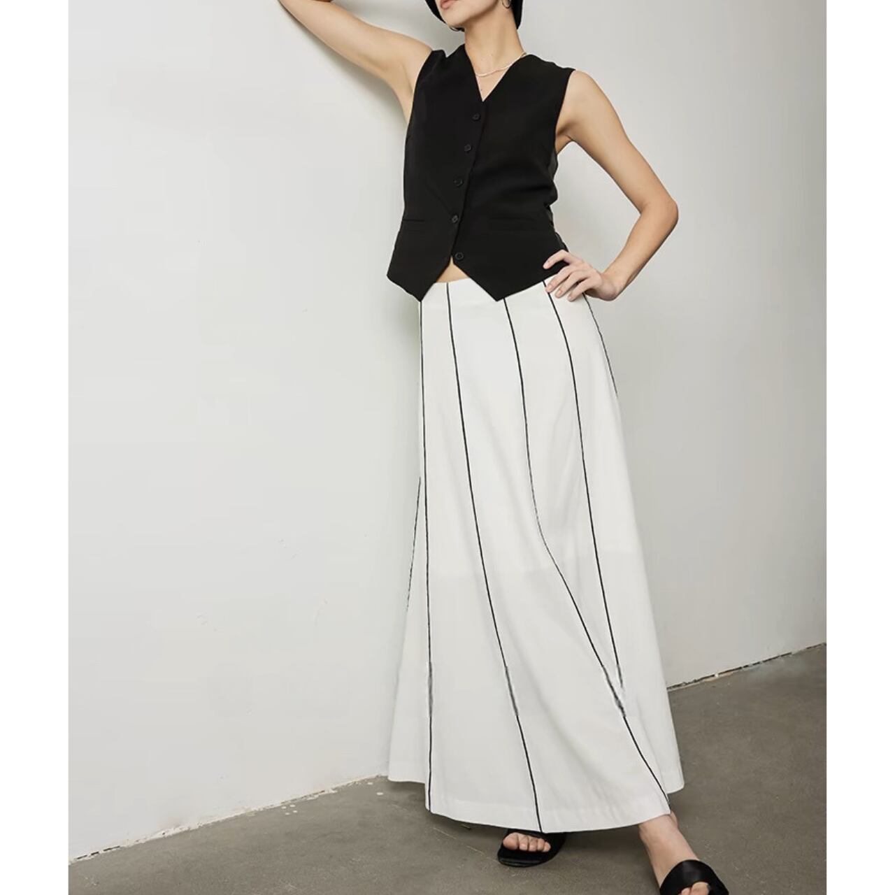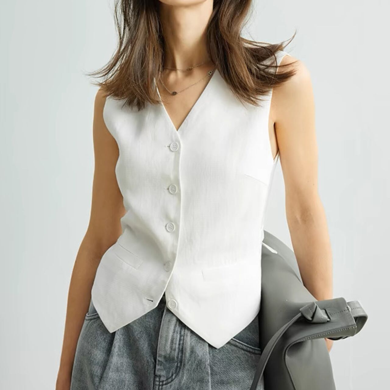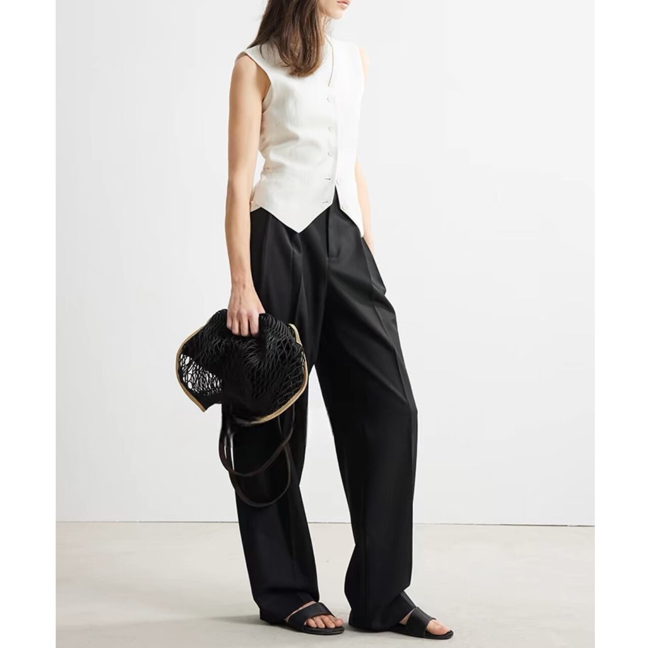 上品さとクールさを兼ね備えたクラシックジレ。
