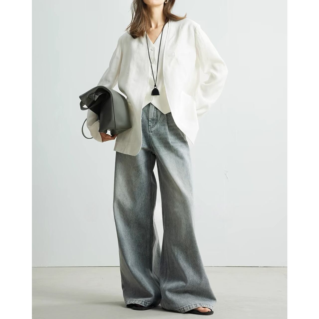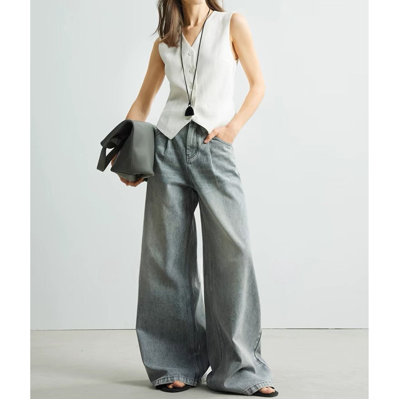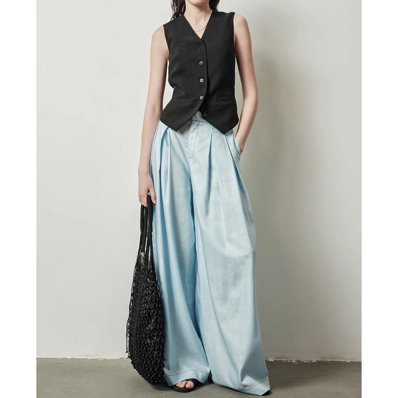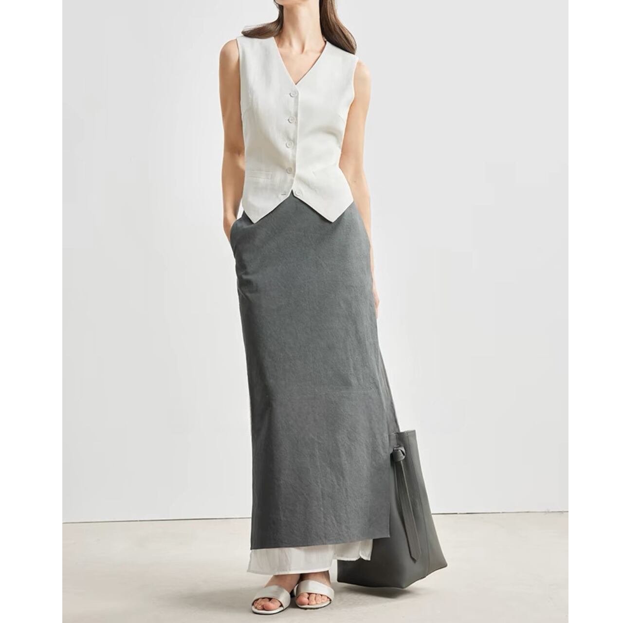 上品さとクールさを兼ね備えたクラシックジレ。