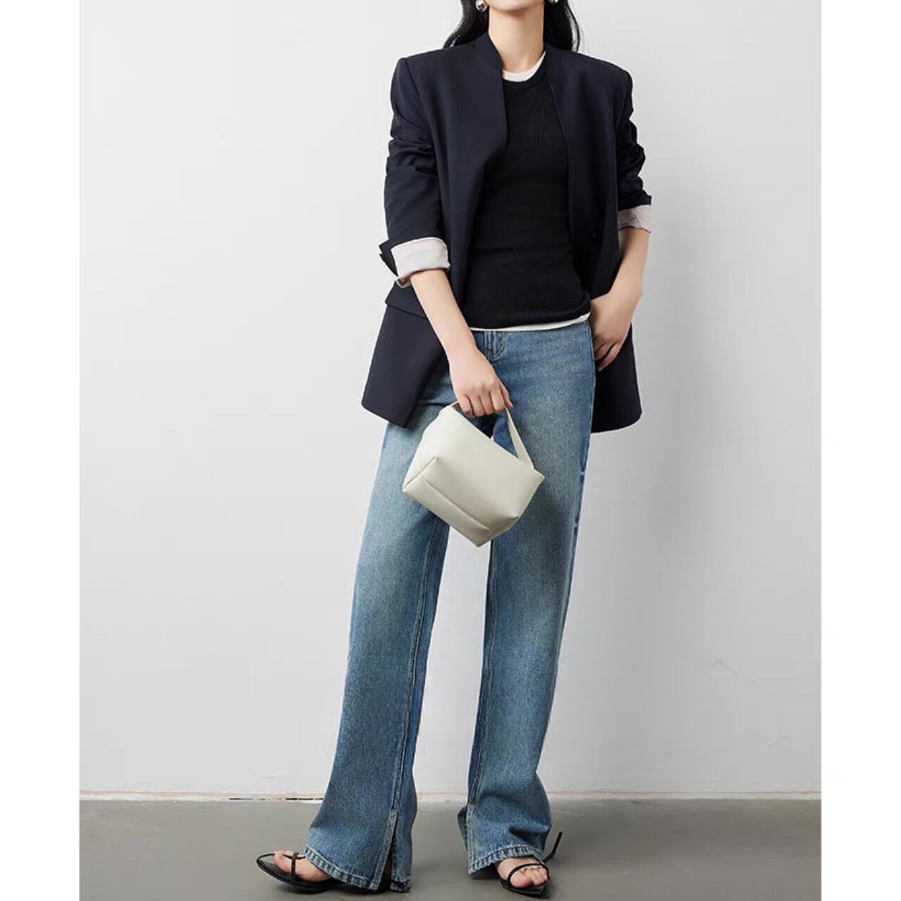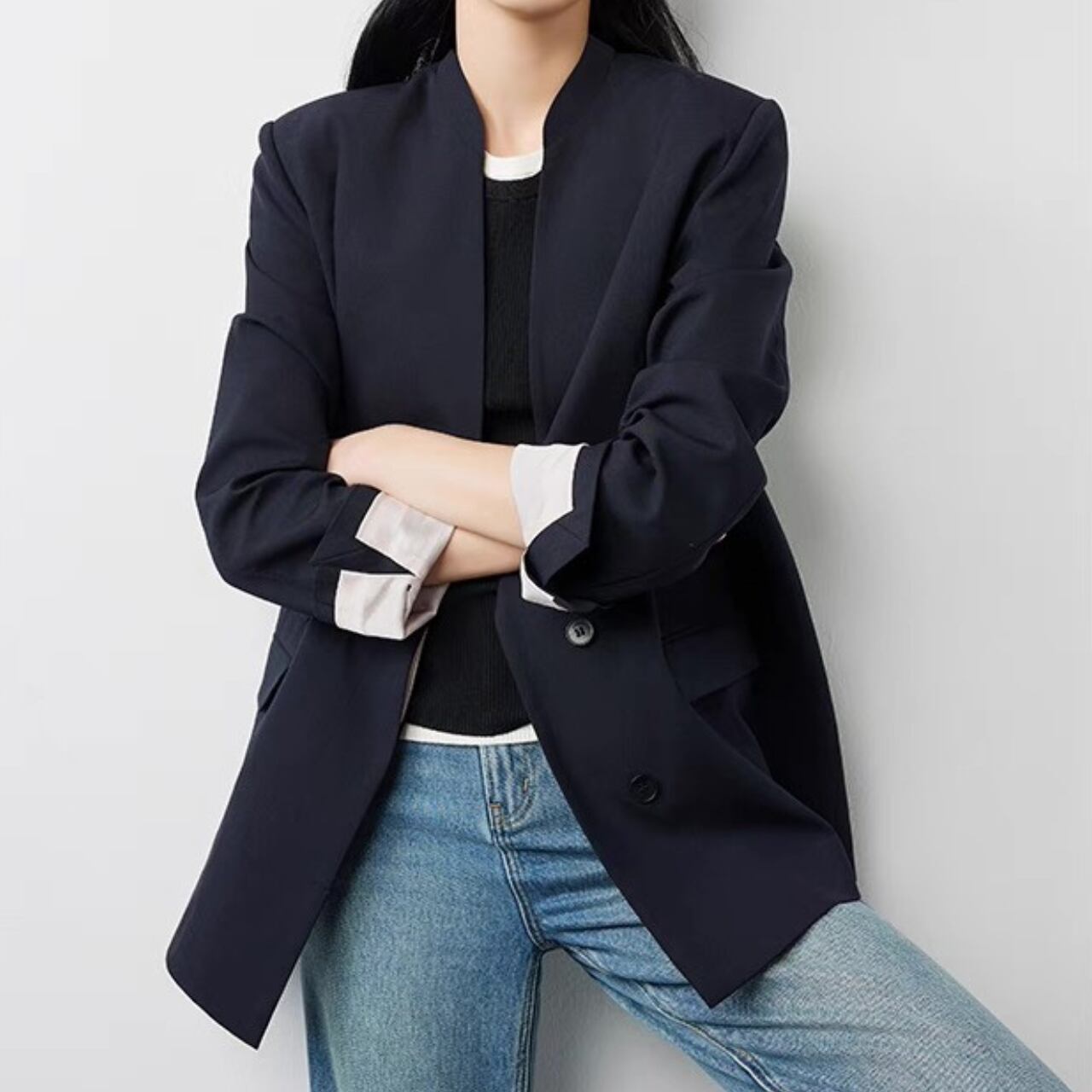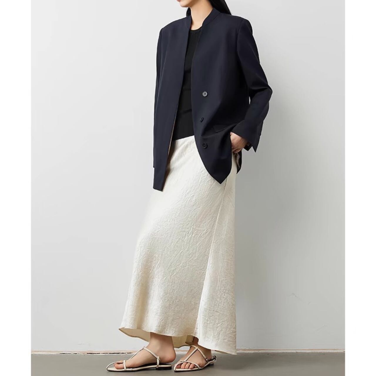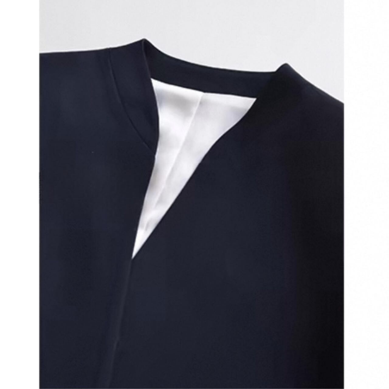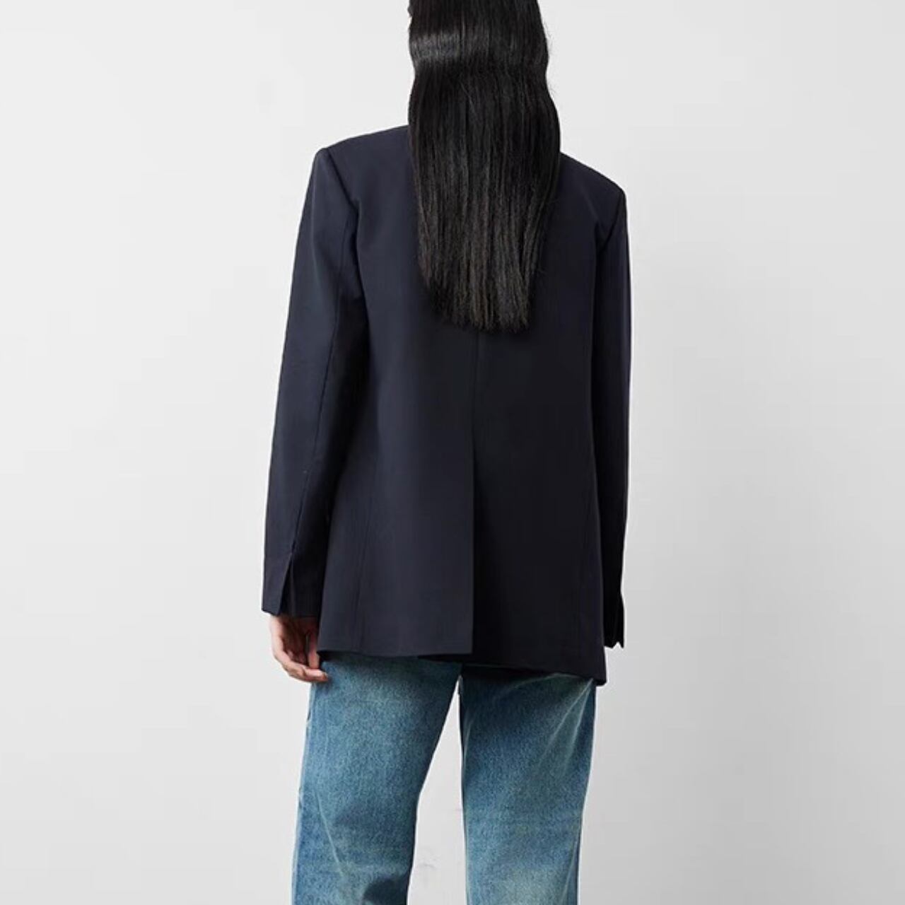 立体感のあるノーカラーデザインが、洗練されたムードを醸すジャケット。軽やかなウール混素材で、構築的ながらも優しい着心地。袖口から覗くコントラストの効いた裏地がアクセントに。シンプルな装いも格上げする、汎用性の高い一着。