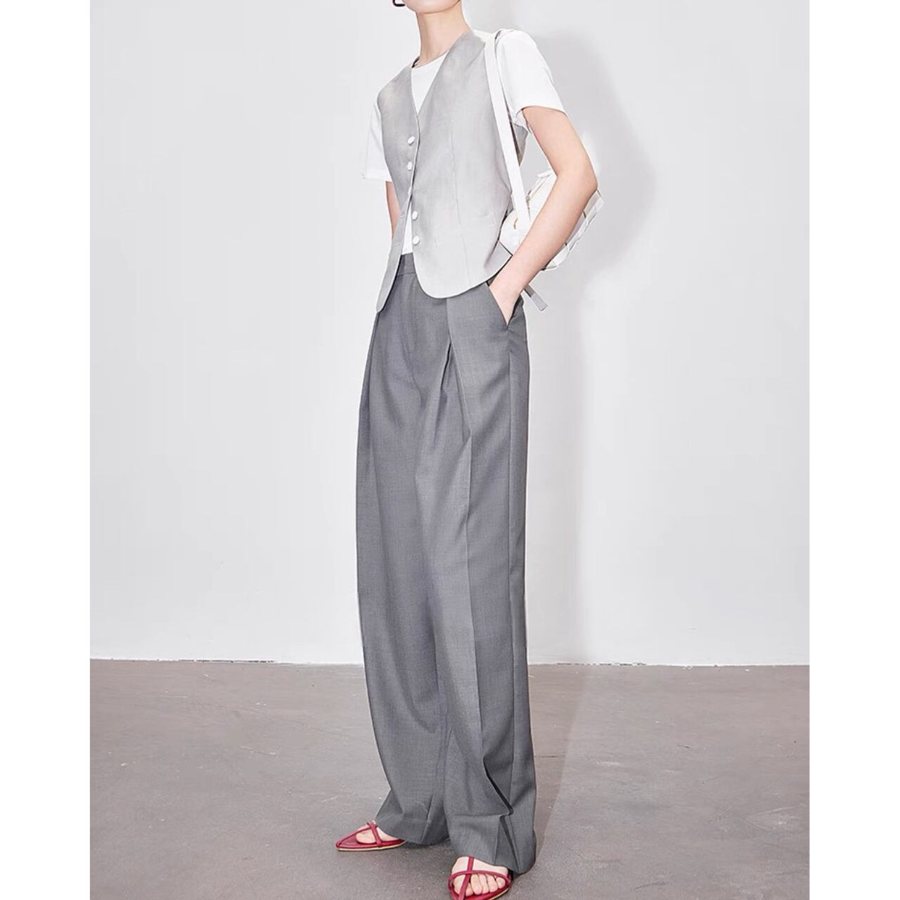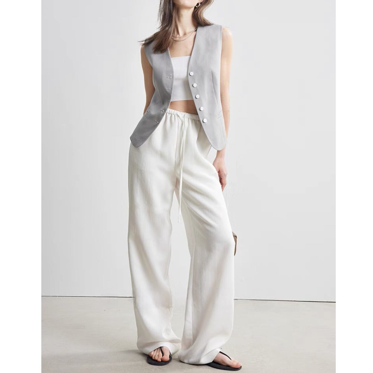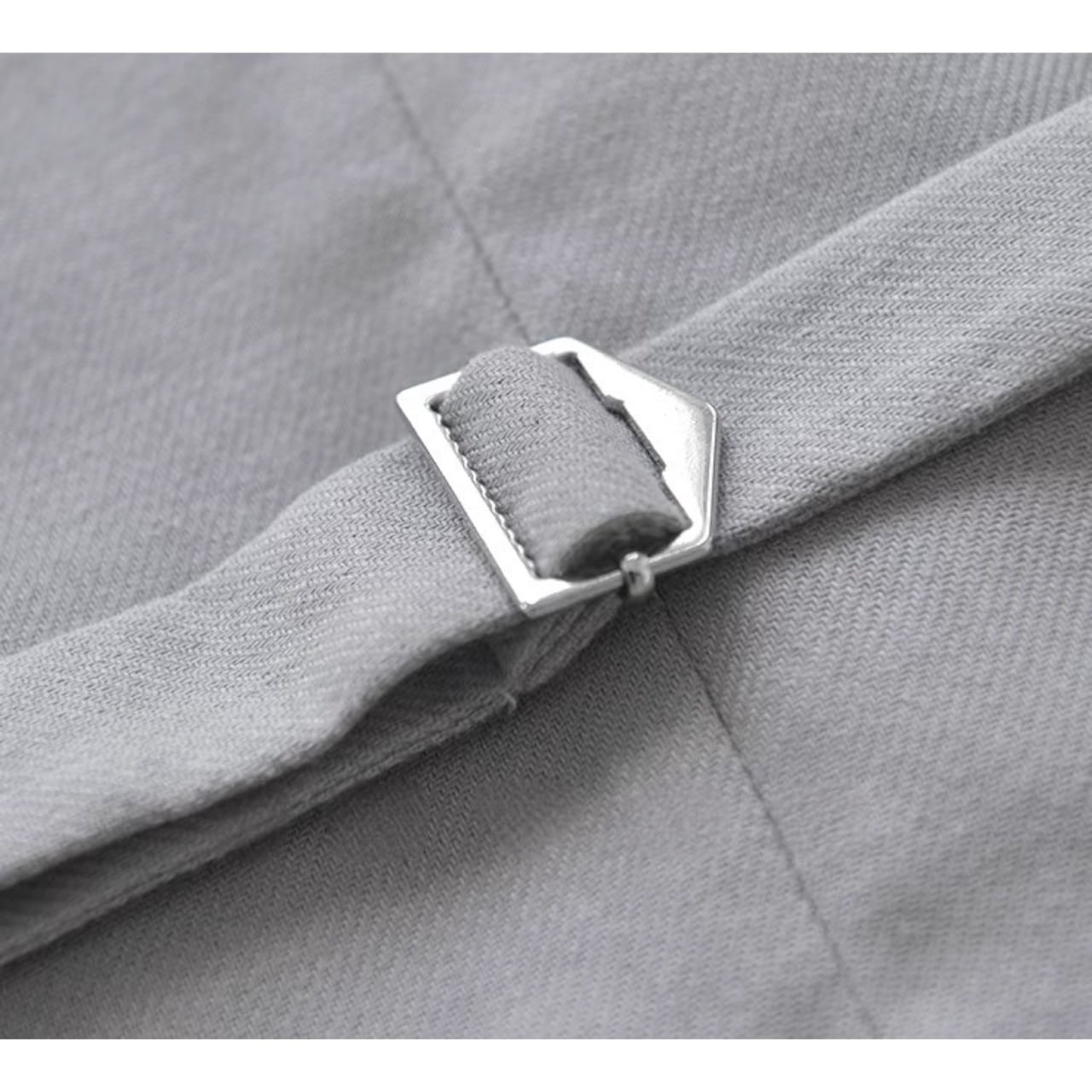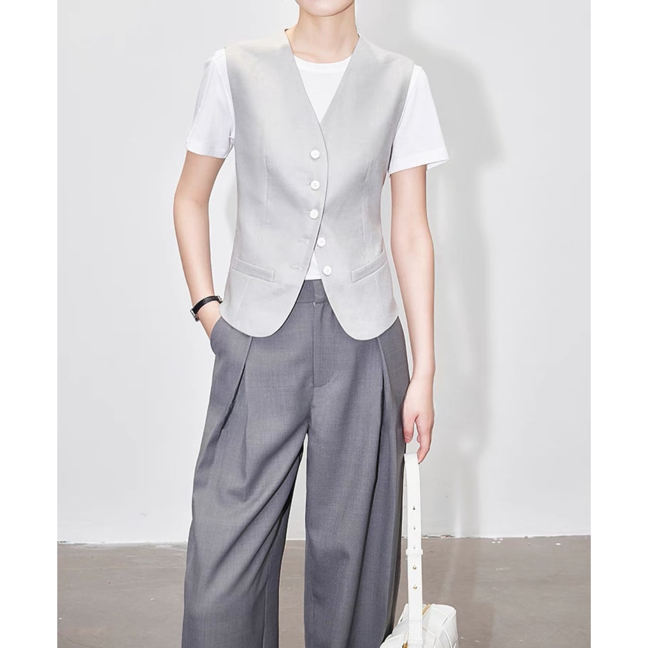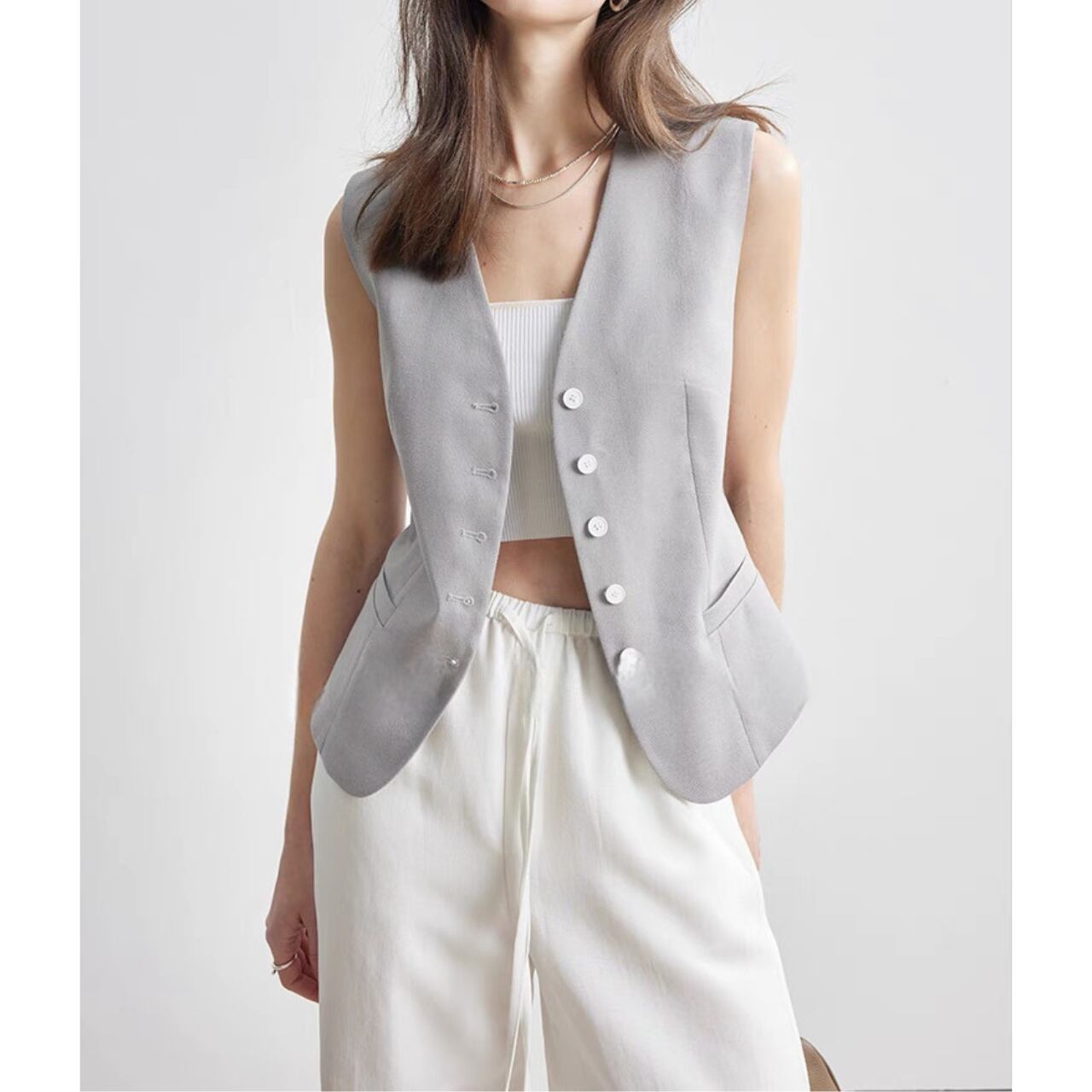 クラシカルな馬甲(マカ)デザインを、モダンに再構築したシンプルジレ。ウエストをキュッと引き締めるシルエットと背中のバックベルトで、横顔も美しく。程よいハリのある生地で、立体的フォルムが映える一着。一枚でもTシャツのレイヤードにも、品良く映える優秀アイテム。
