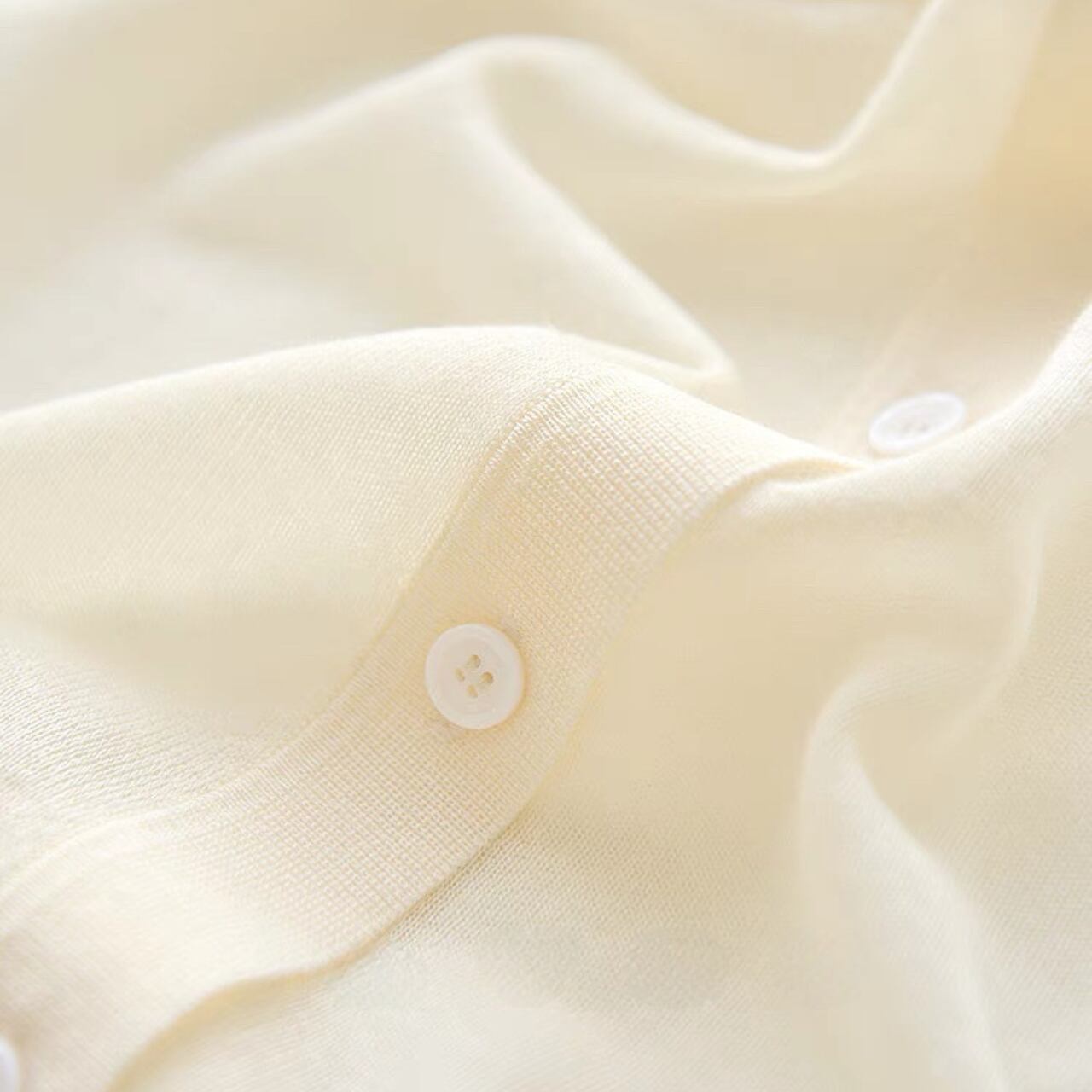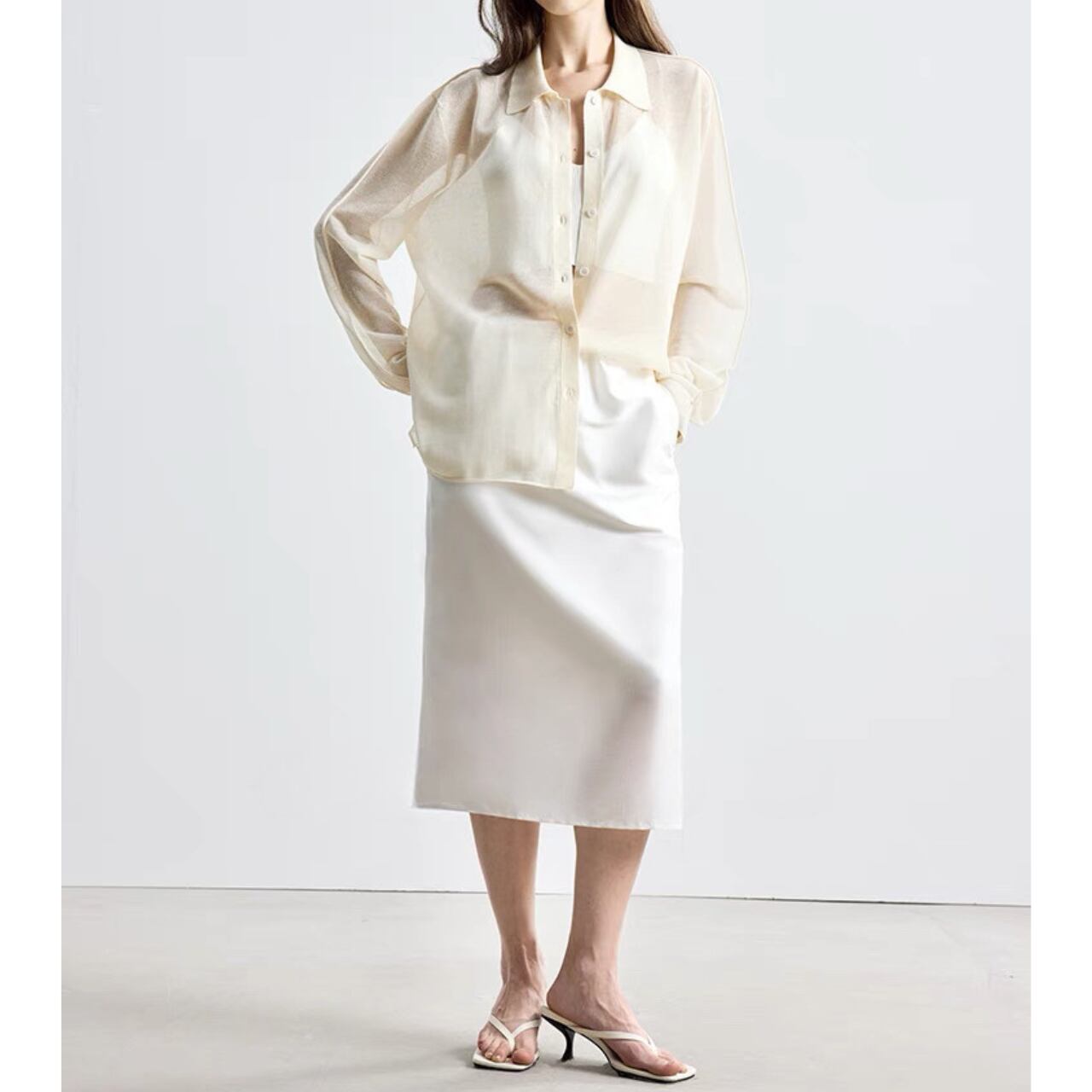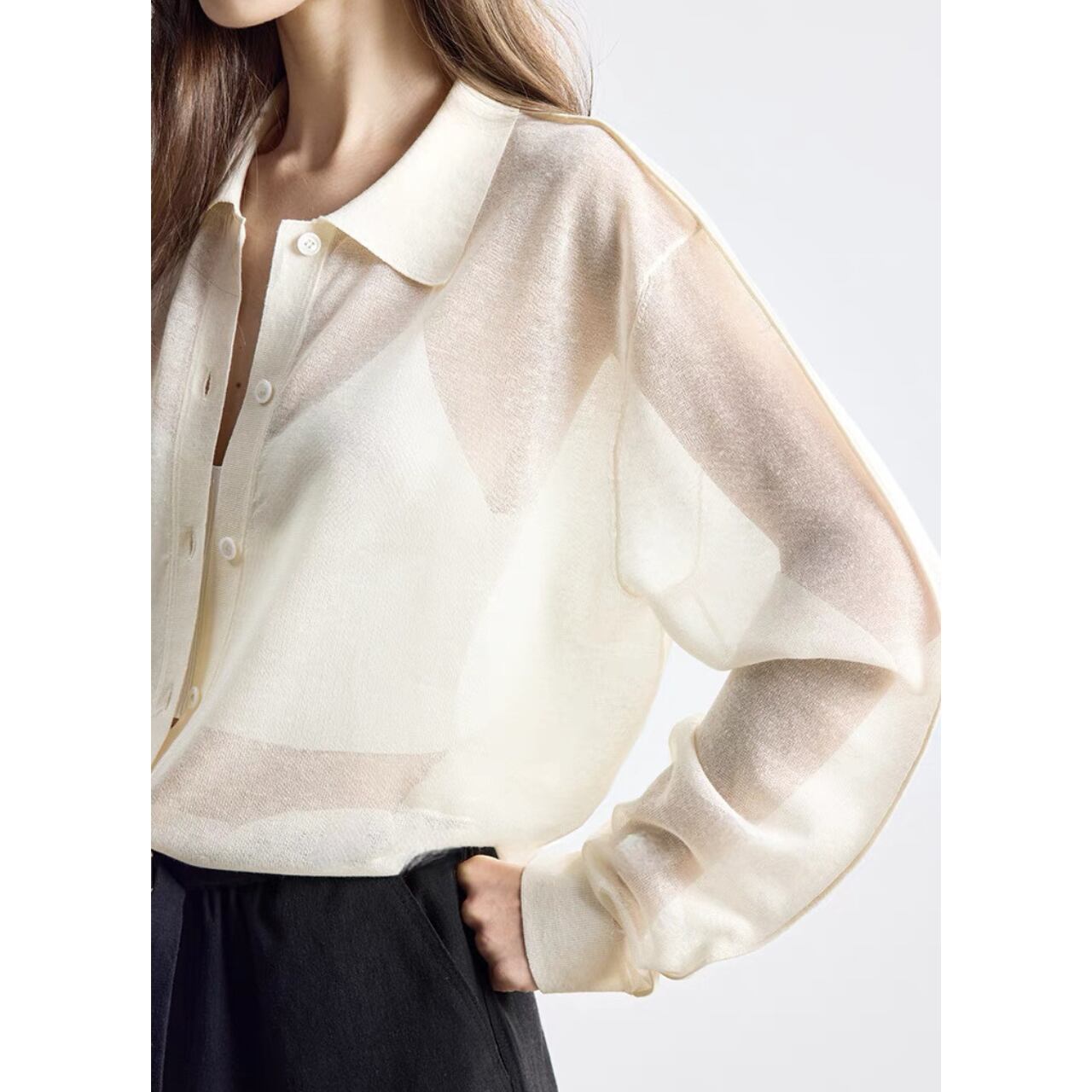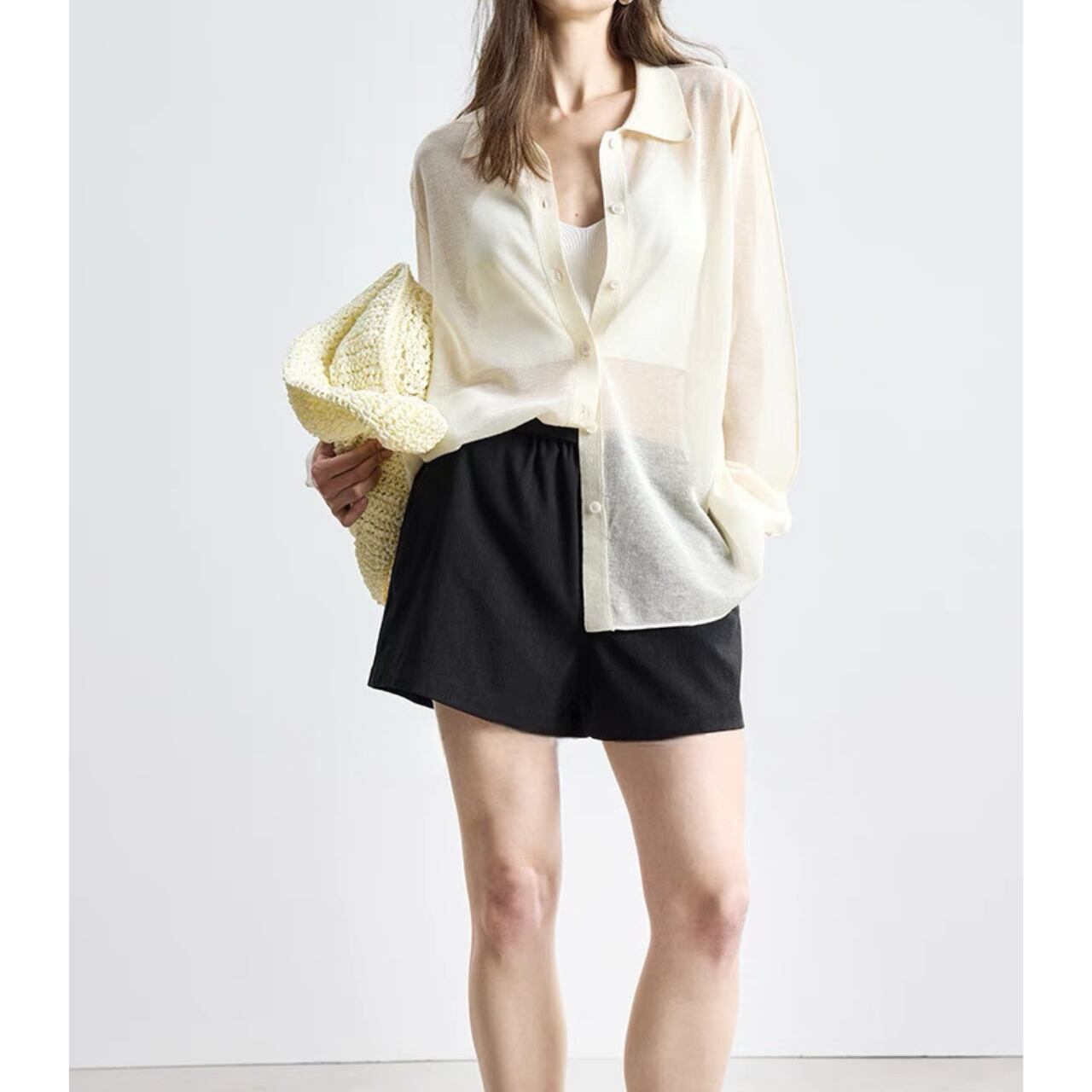 軽やかなで繊細な生地と程よいリラックスシルエットが、洗練された大人の雰囲気を引き立てる。カーディガンのような滑らかな着心地で、日除け&冷房対策にも最適な一品。