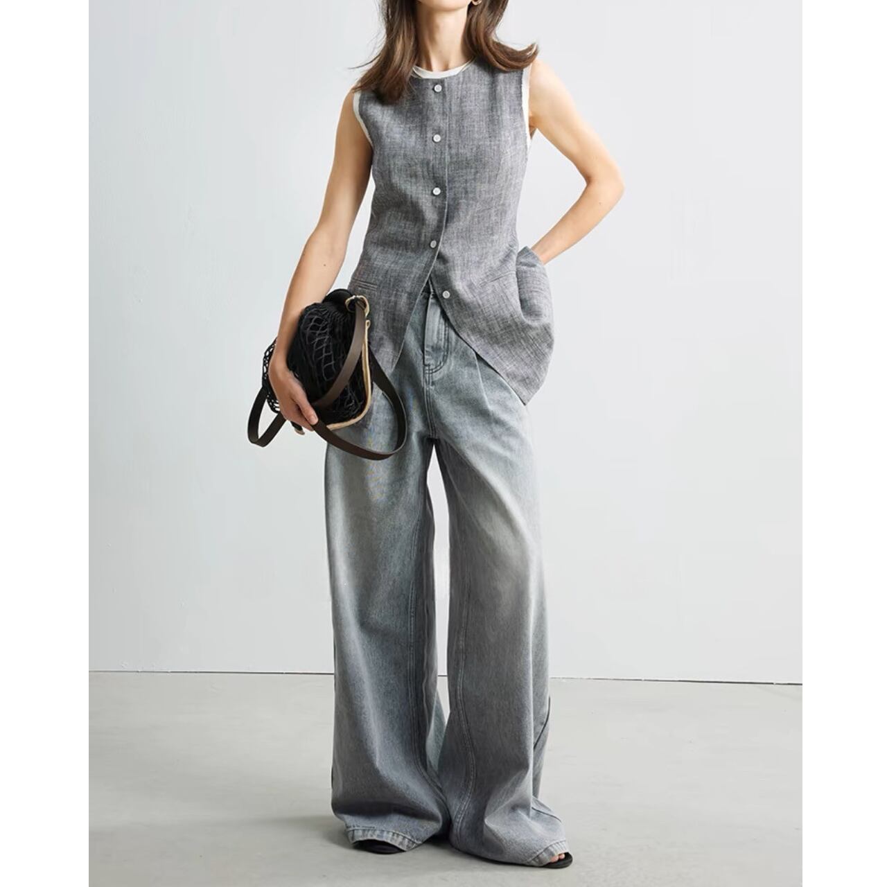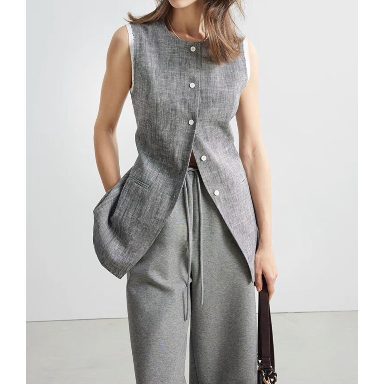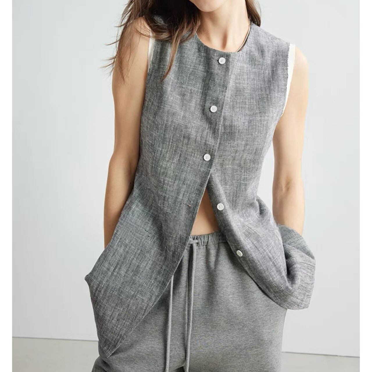 raw edge layered detail vest 00266