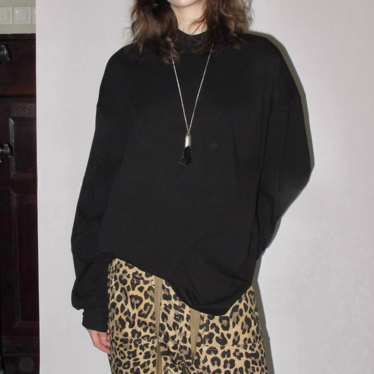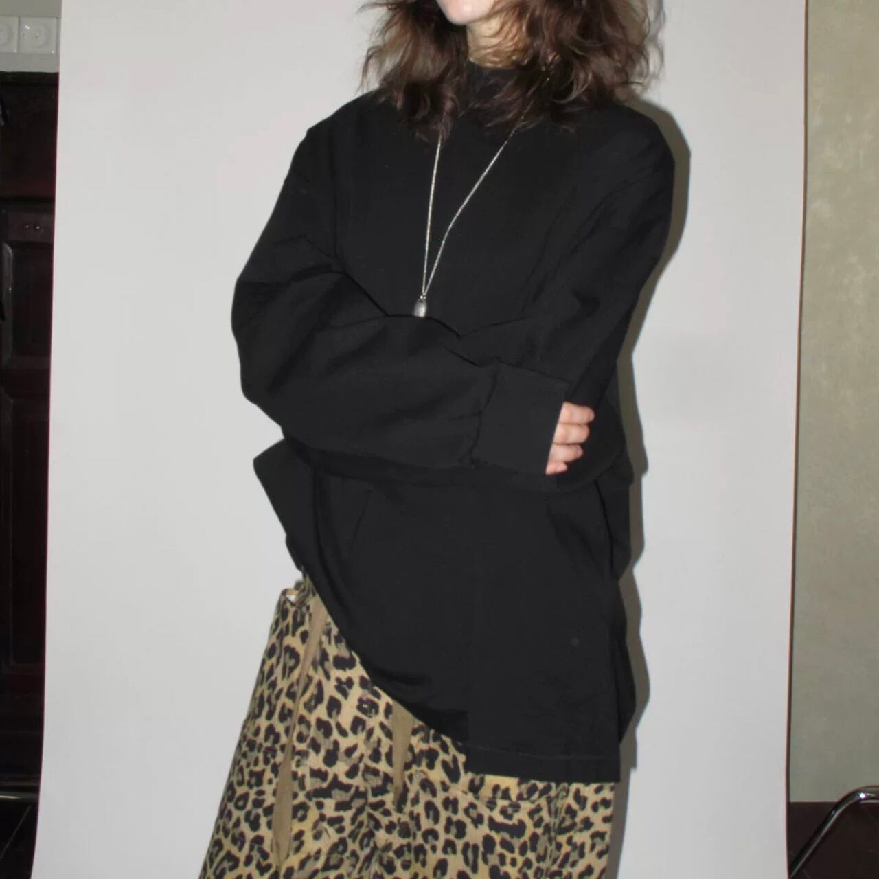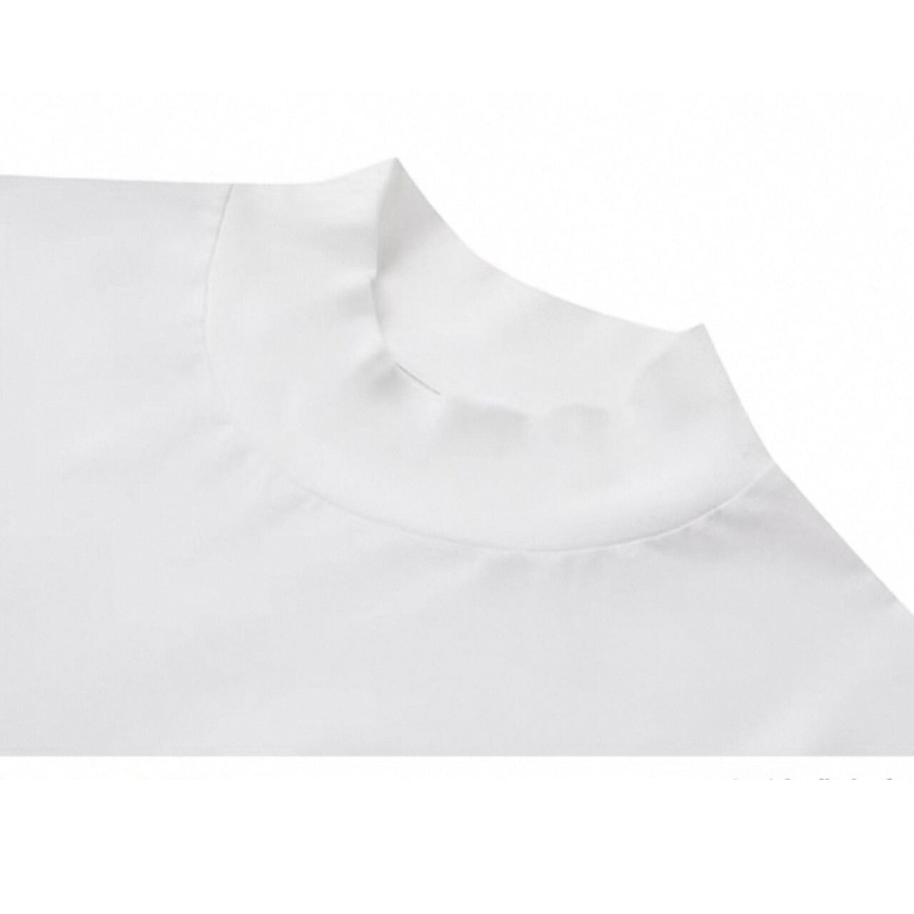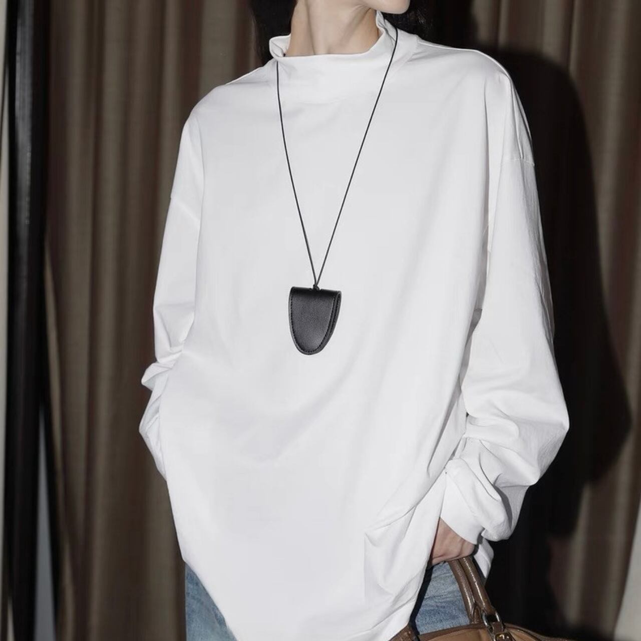 立ち上がりのある半モックネックと、ゆったり落ちるワイドスリーブが印象的なコットンT。程よいハリのあるコットン100%生地が、身体のラインを日拾わずに形を美しくキープ。計算された丈感と絶妙なゆとりが、抜け感とモード感を演出してくれる優秀な一品。