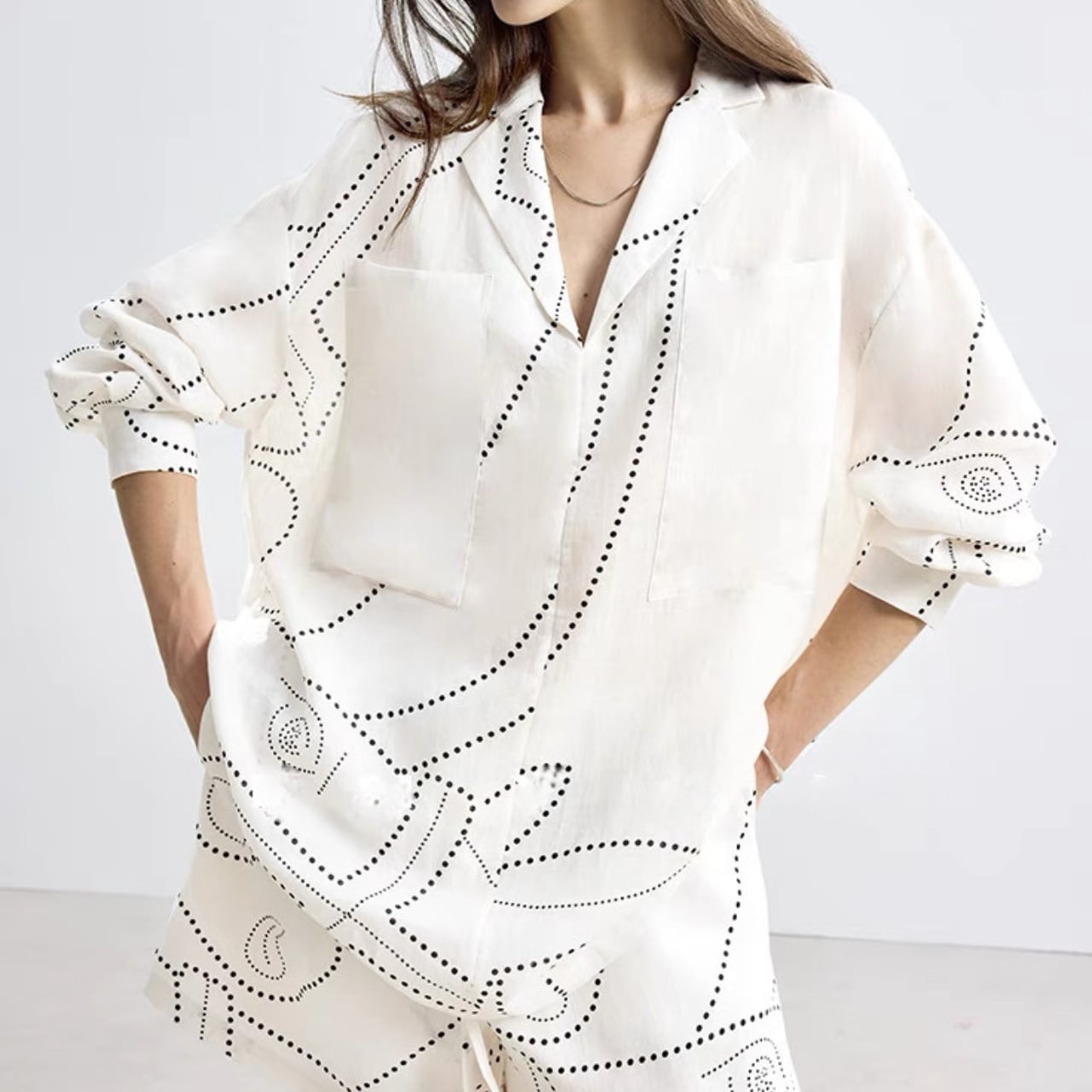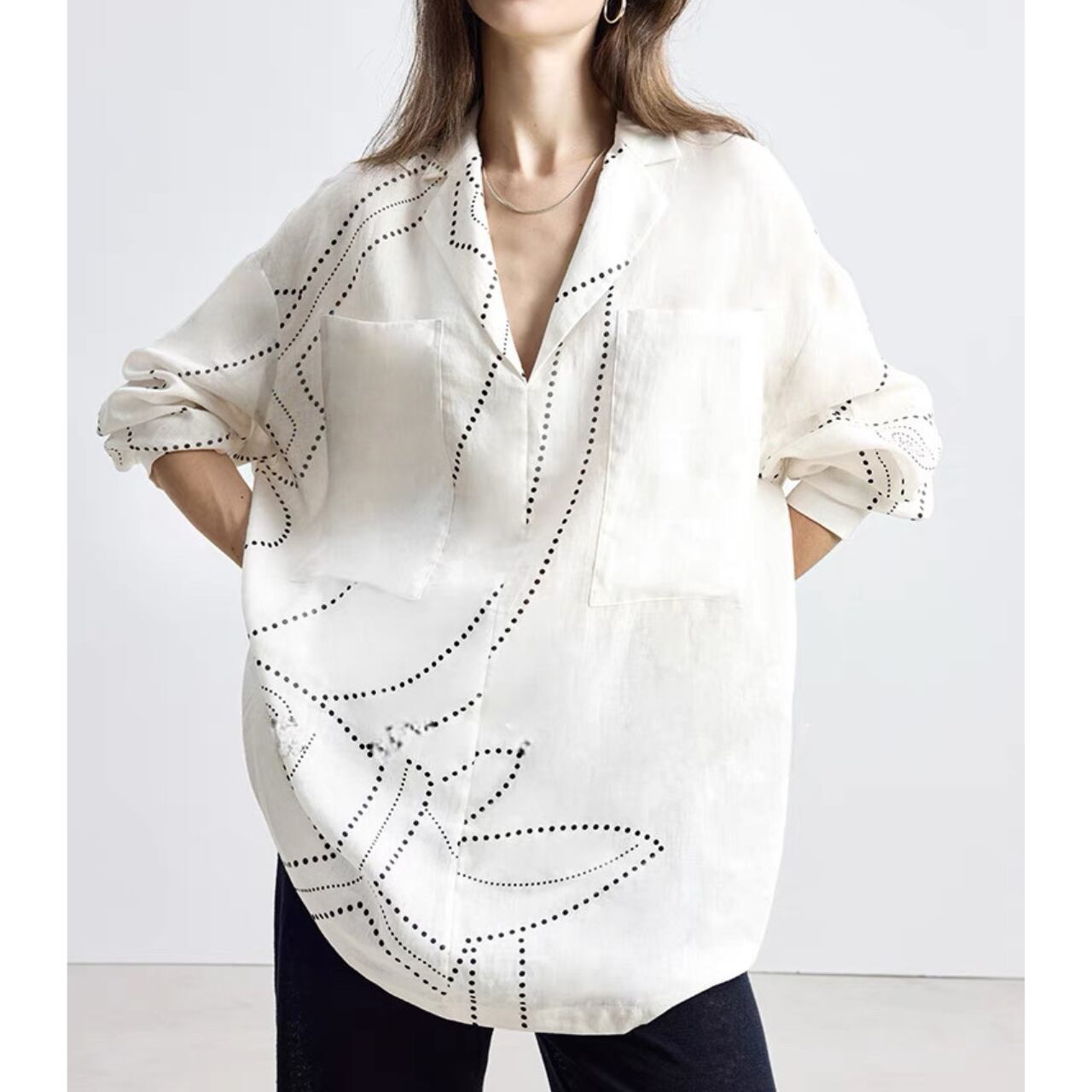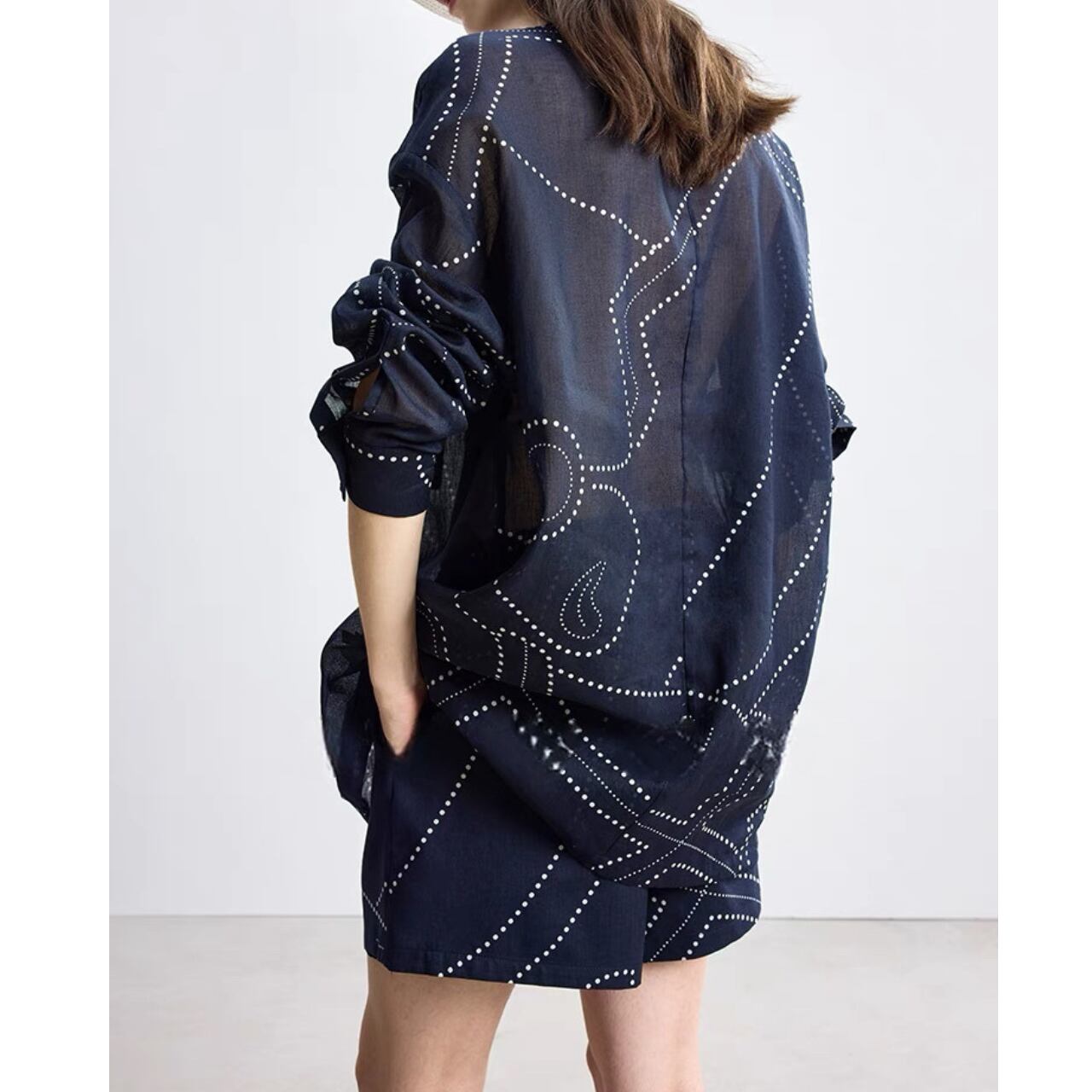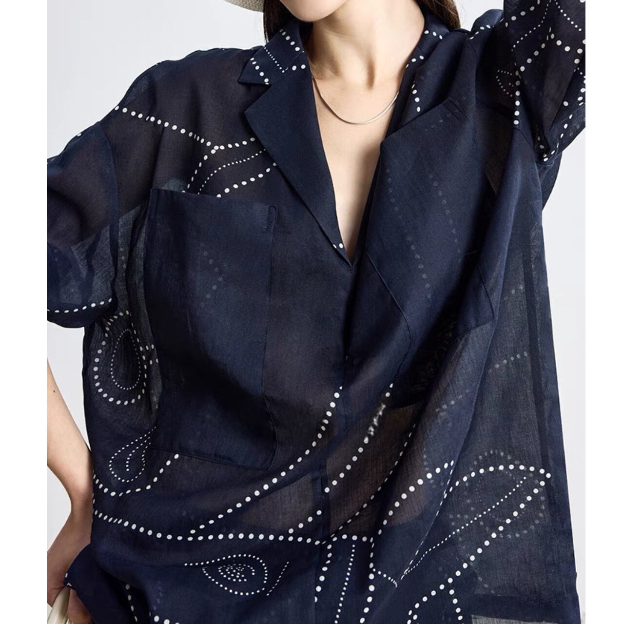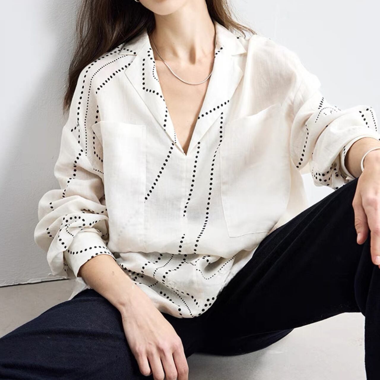ほんのり透け感のある柔らかくドレーピーな生地は、快適な着心地と上品さを両立させる。リラックス感がありながら骨感もあり、洗練された大人の余裕漂う一品。