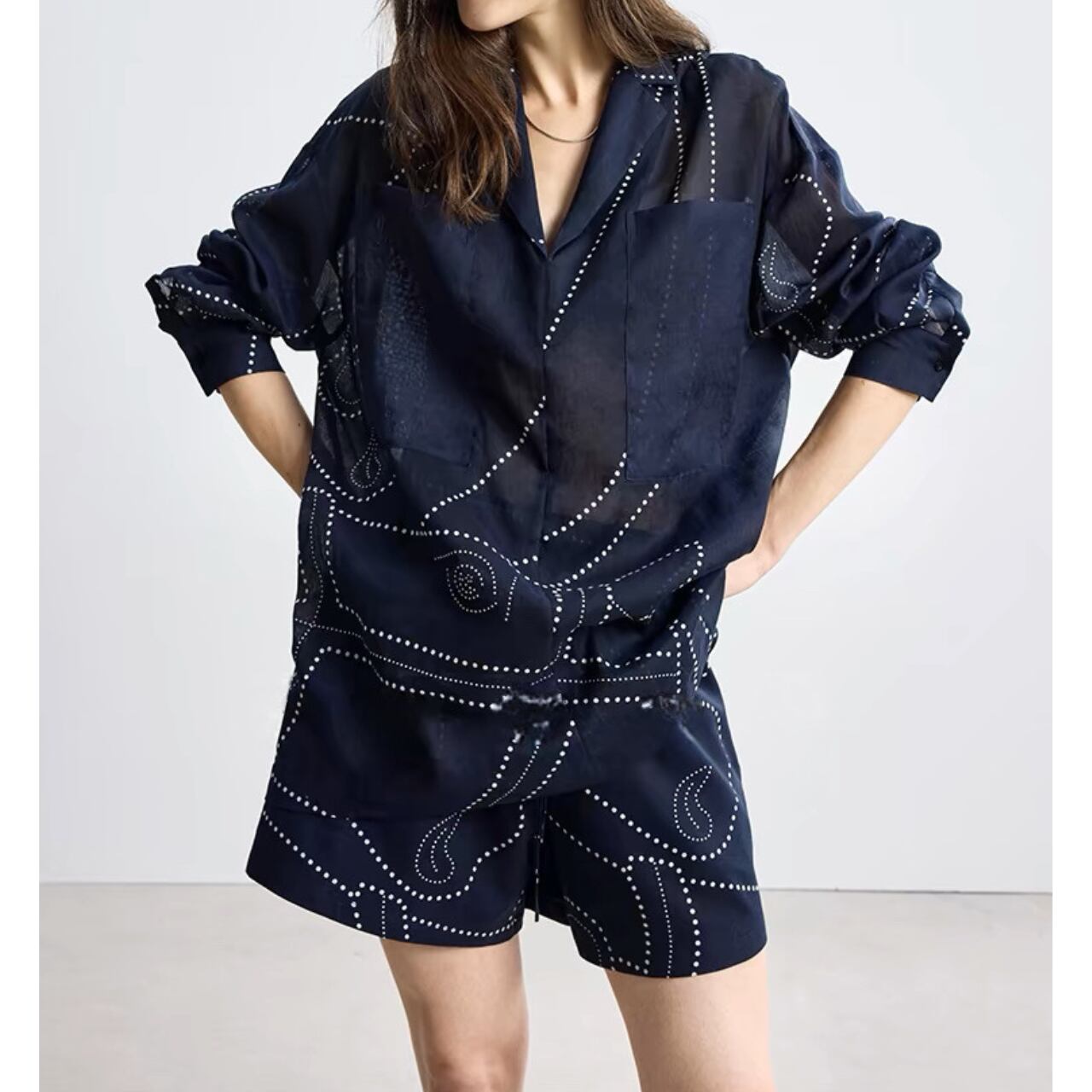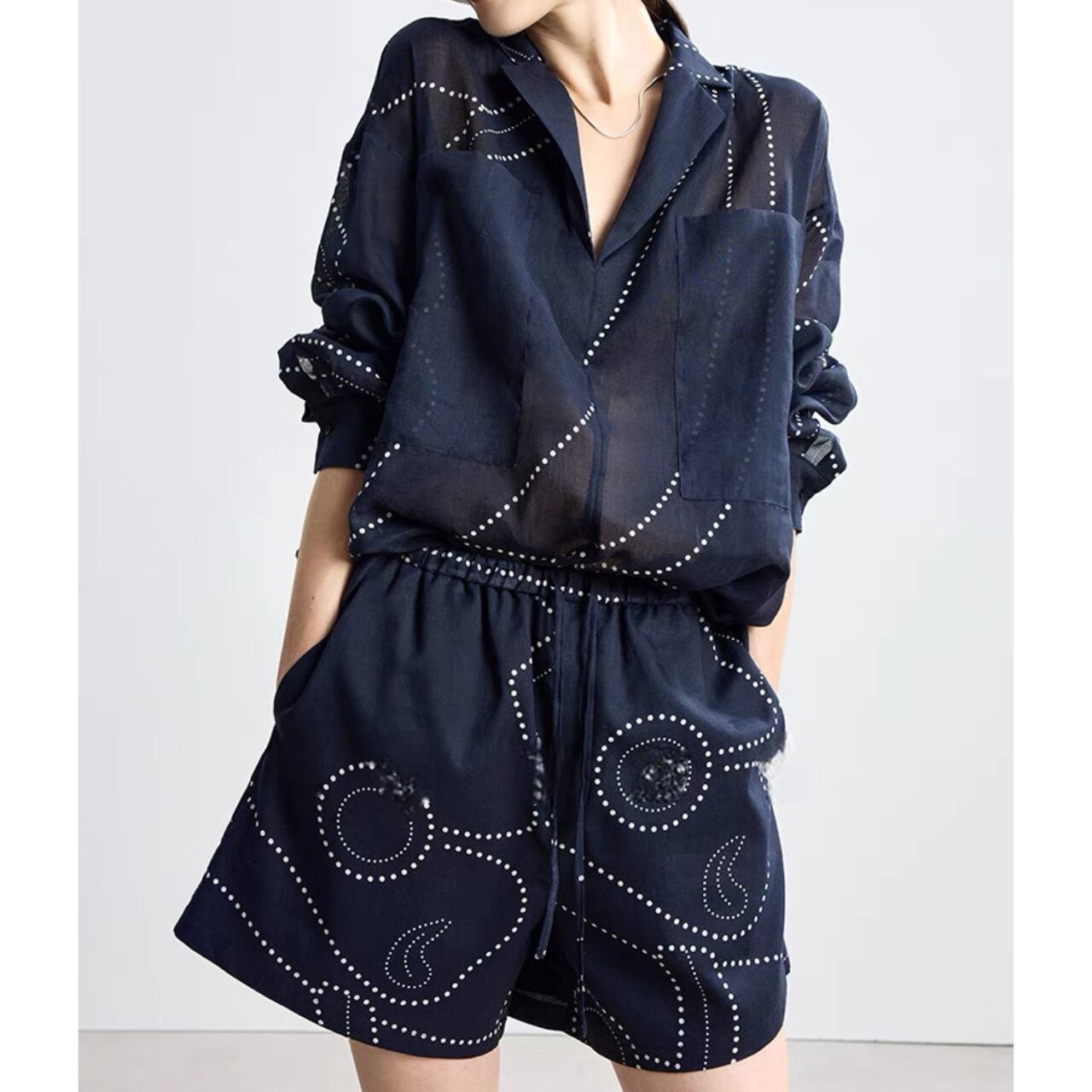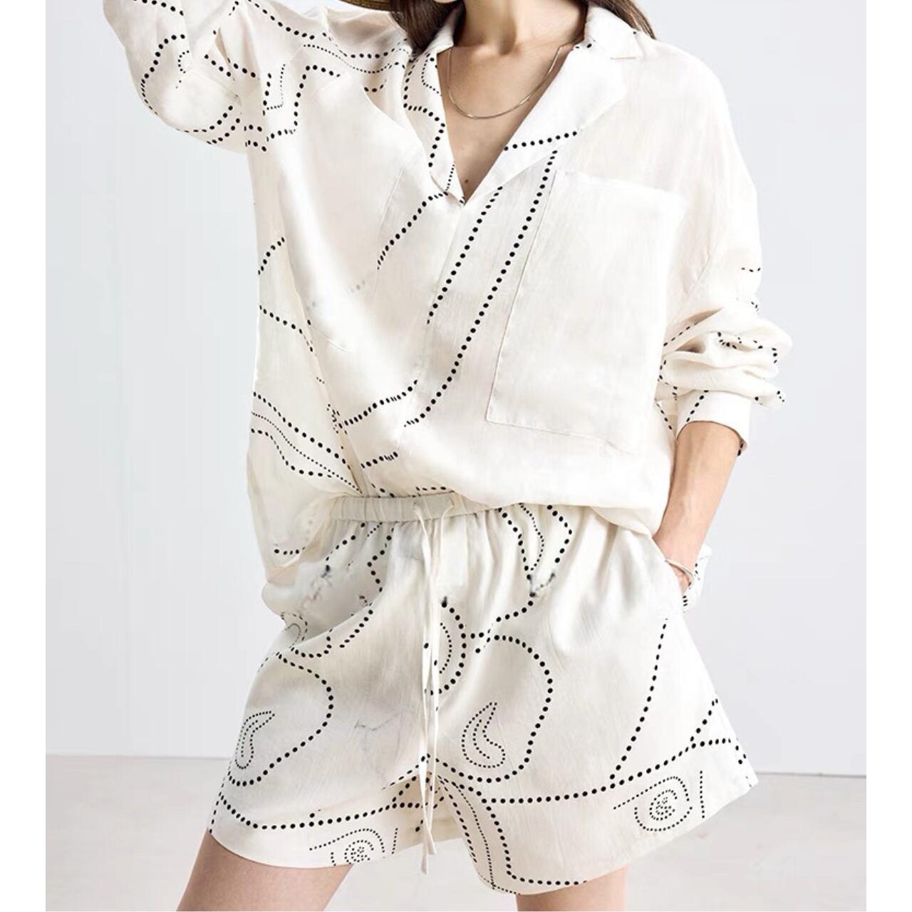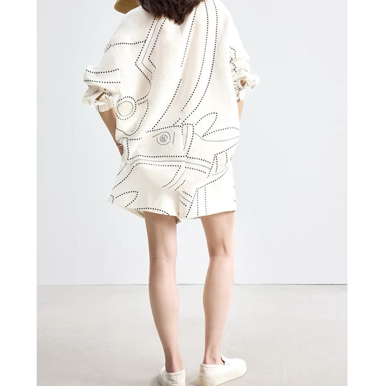 ドットラインのコントラストが映えるショートパンツ。