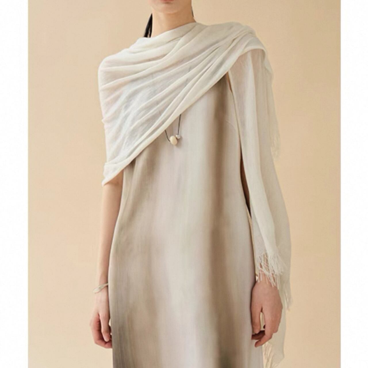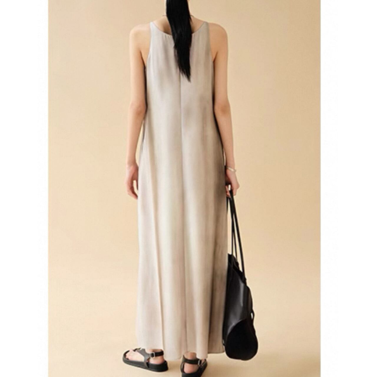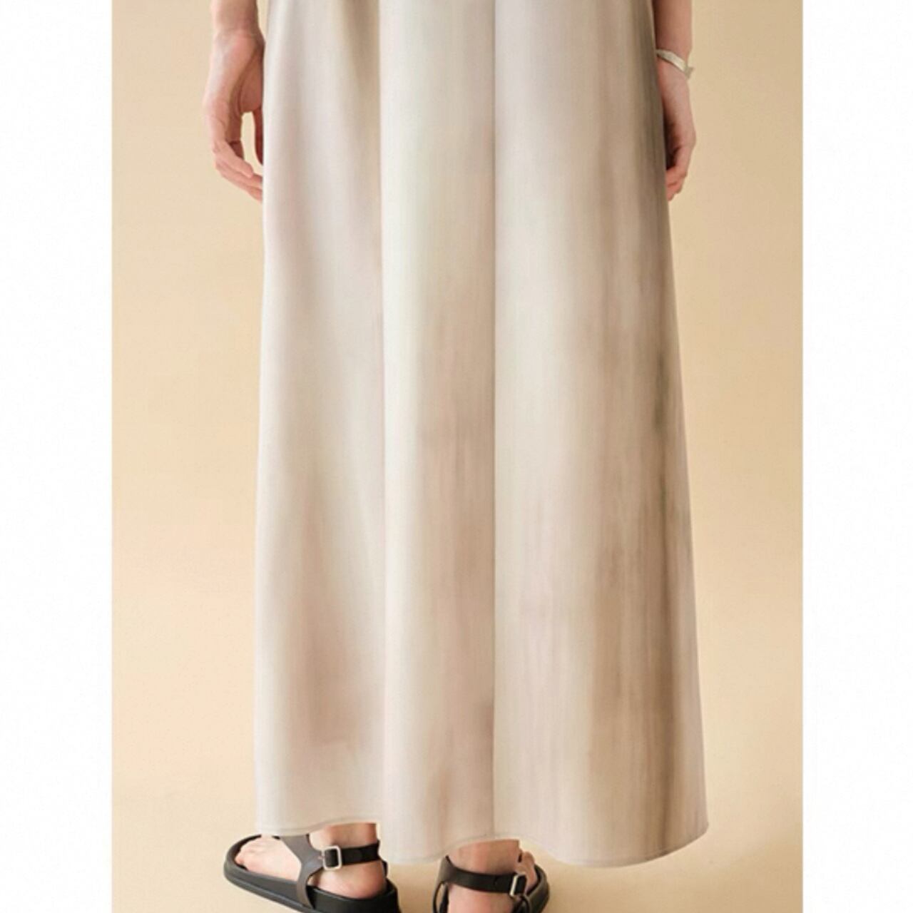 絵画のようなニュアンスグラデーションと、とろみのある落ち感が魅力のロングドレス。着るだけで自然に流れるようなドレープが生まれ、体のラインに寄り添いながら静かに美しさを引き立てる。たった一枚で印象を纏う、特別感を。
