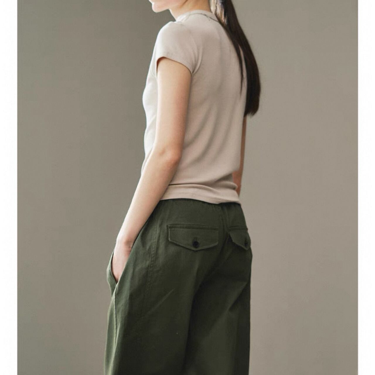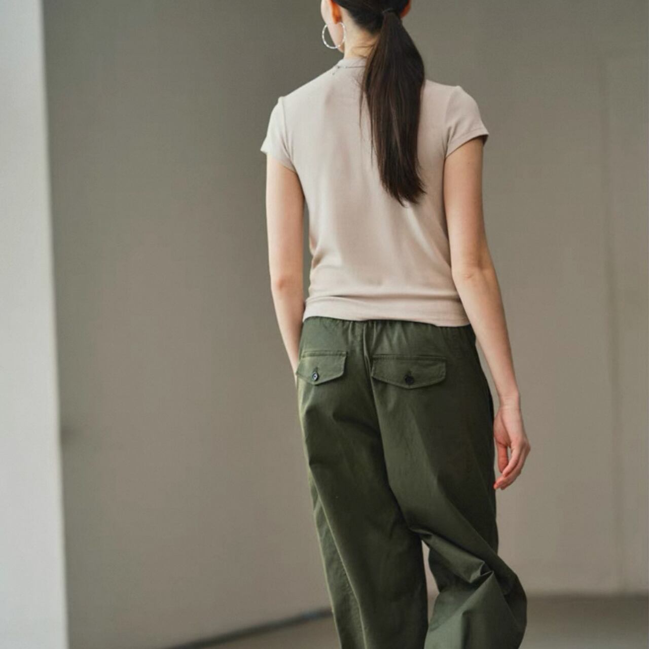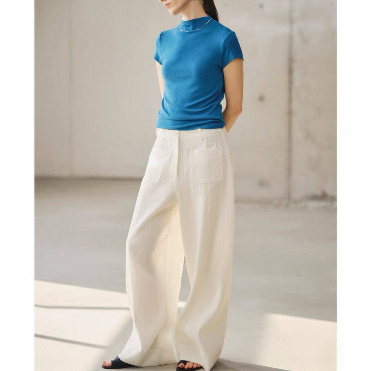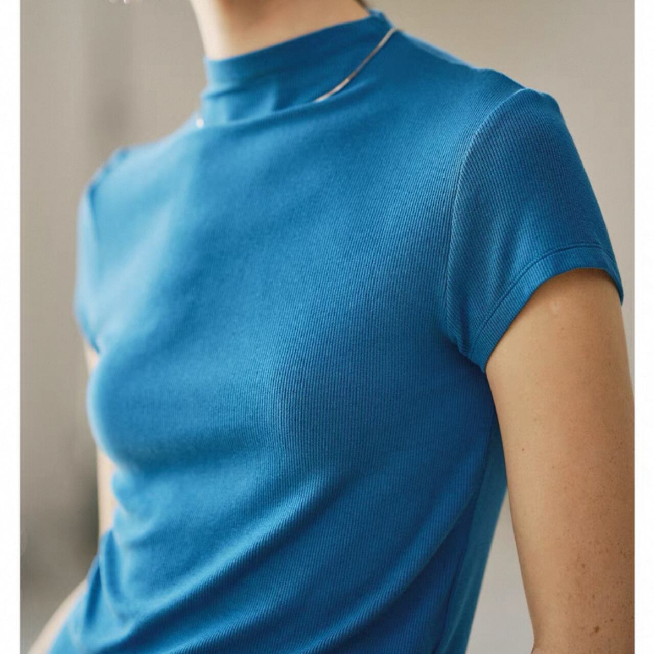 首元を細くすっきりと魅せるハーフハイネックとスリムフィットシルエットが、上半身を引き締めファッショナブルにきまる。なめらかで伸縮性に優れ、締めつけ感なく快適な着心地を叶える。