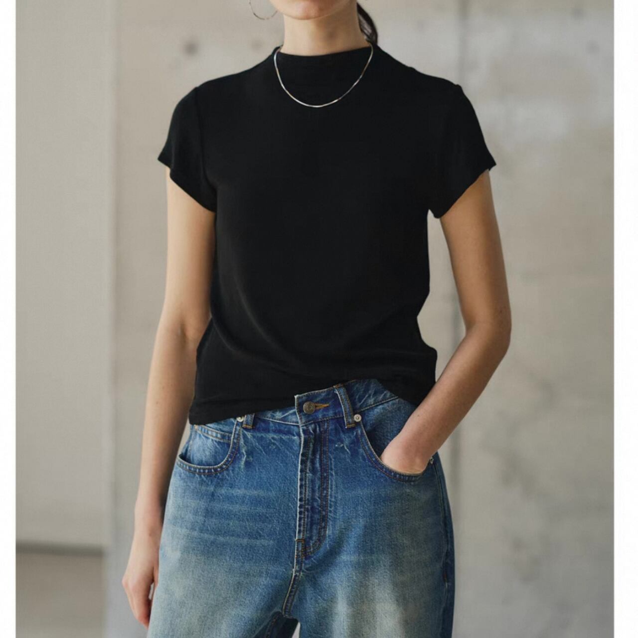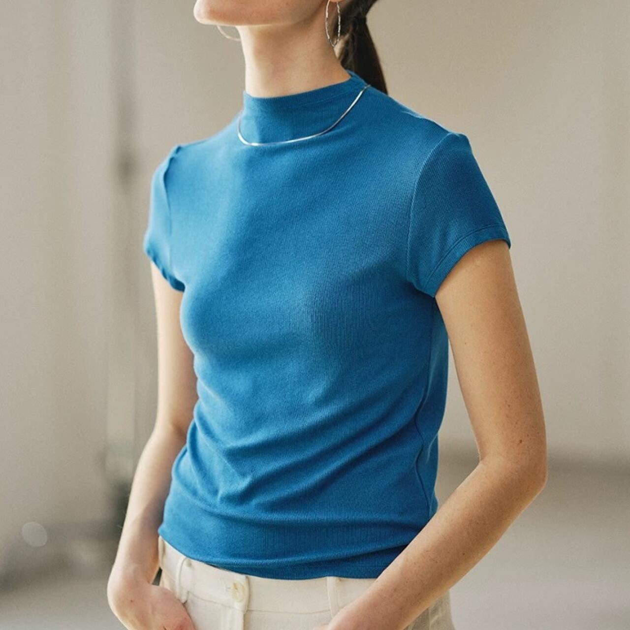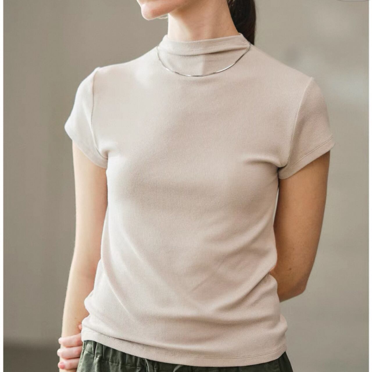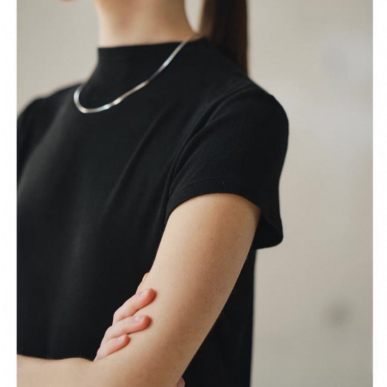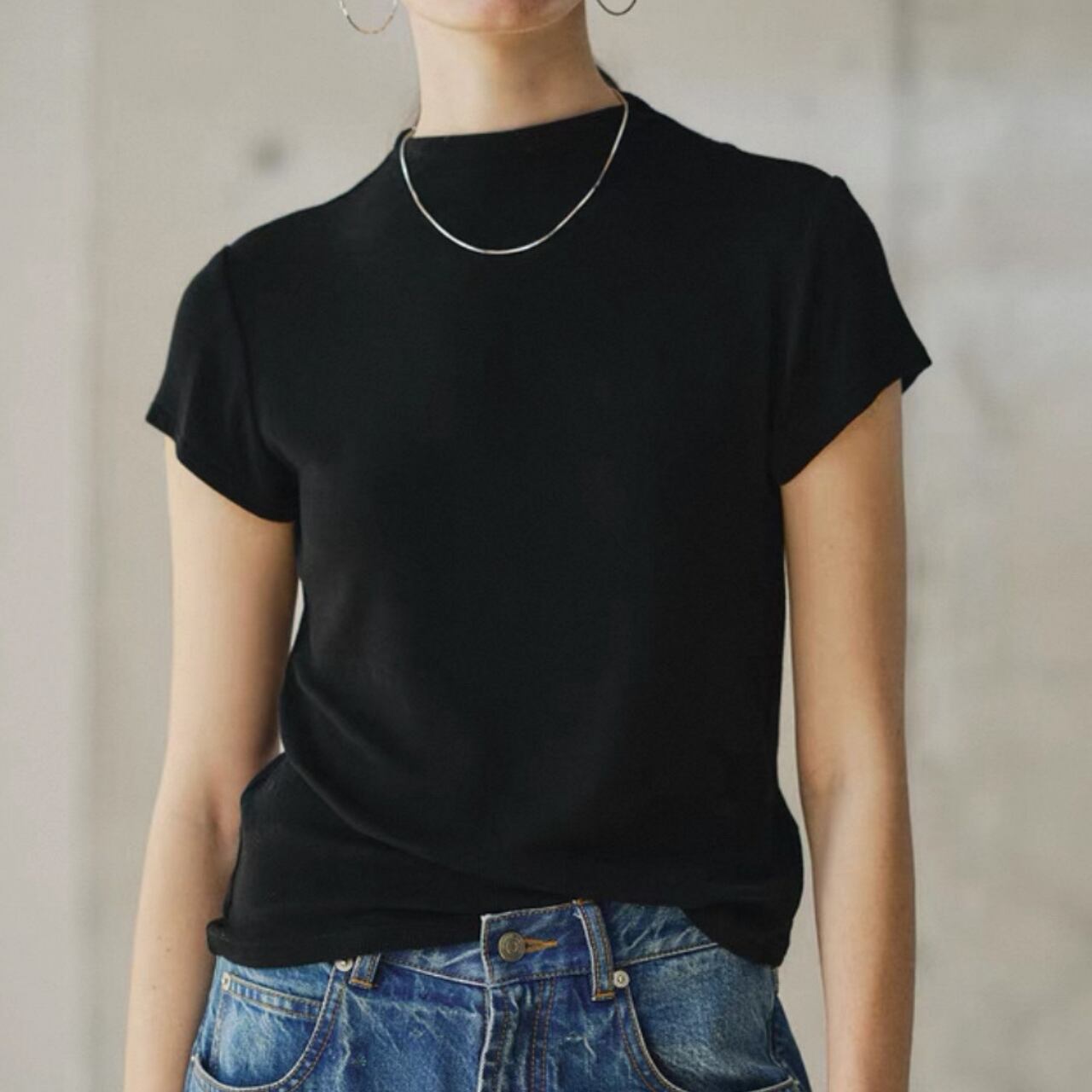 クールと上品さを兼ね備えたハーフハイネックTシャツ。