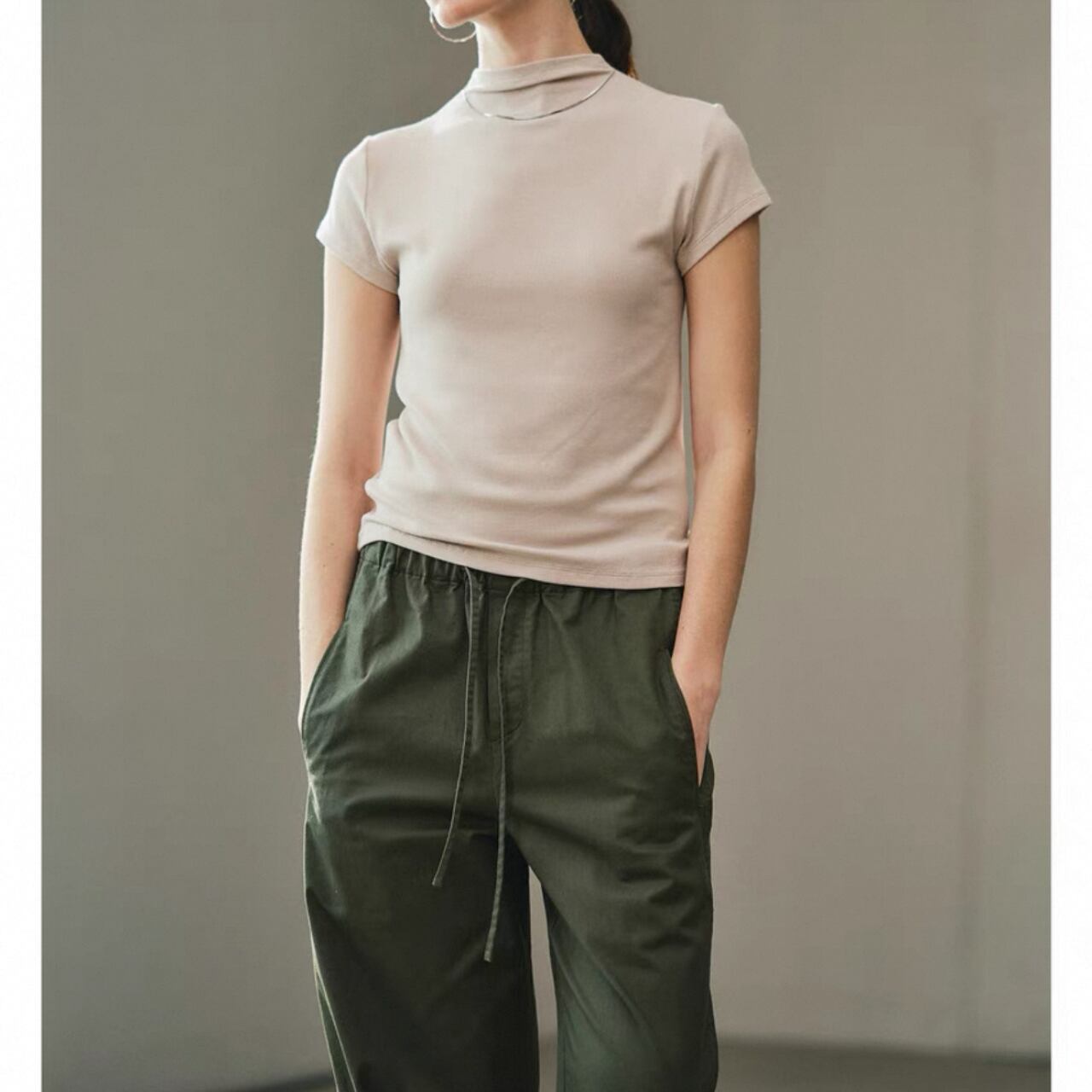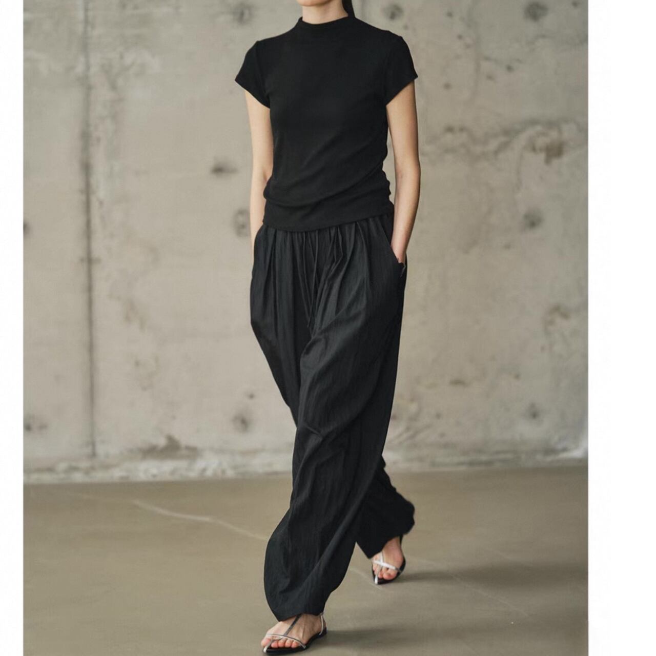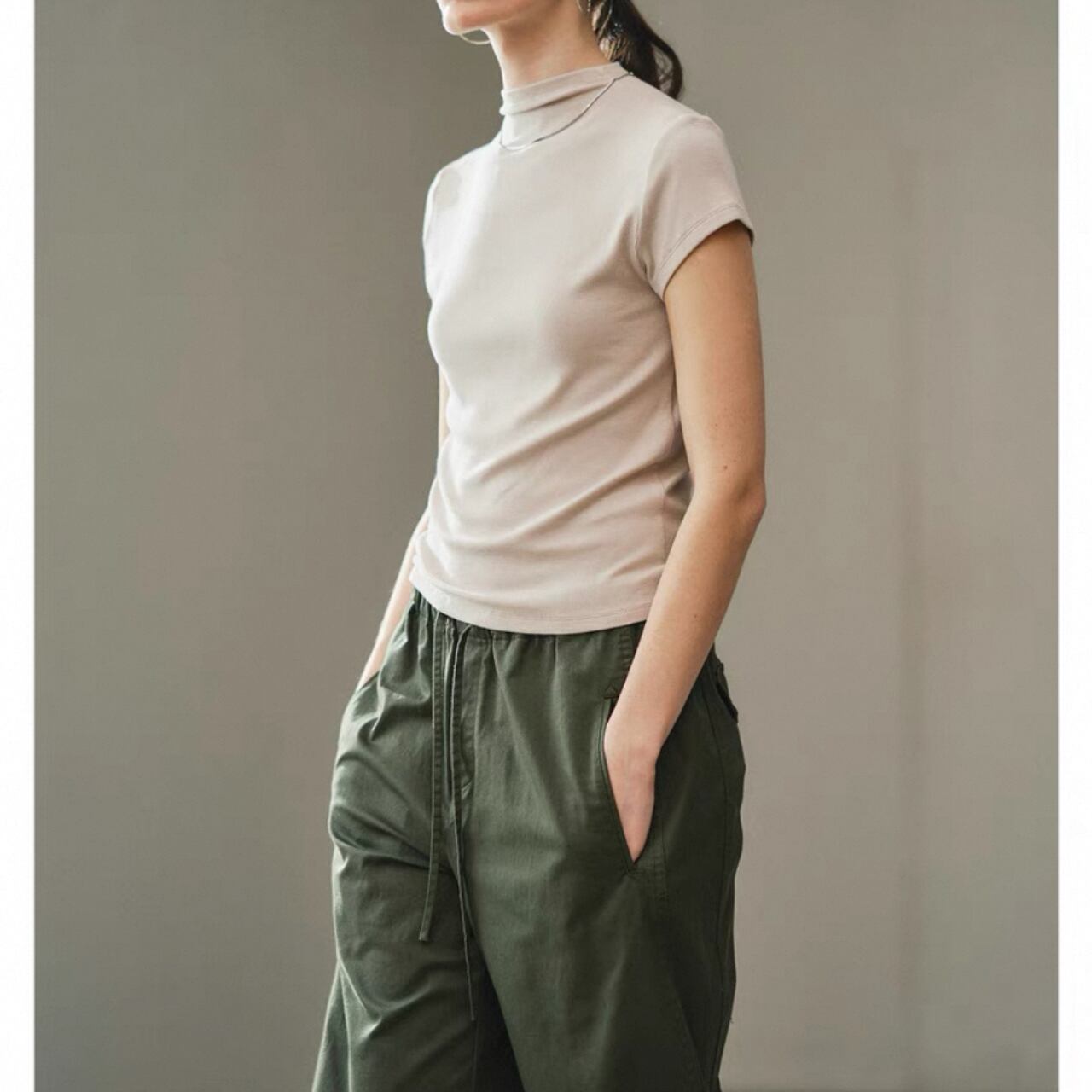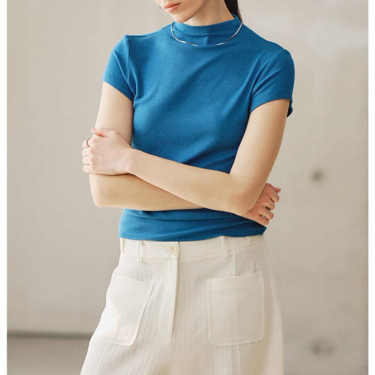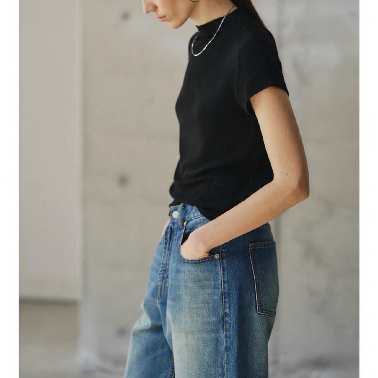 クールと上品さを兼ね備えたハーフハイネックTシャツ。