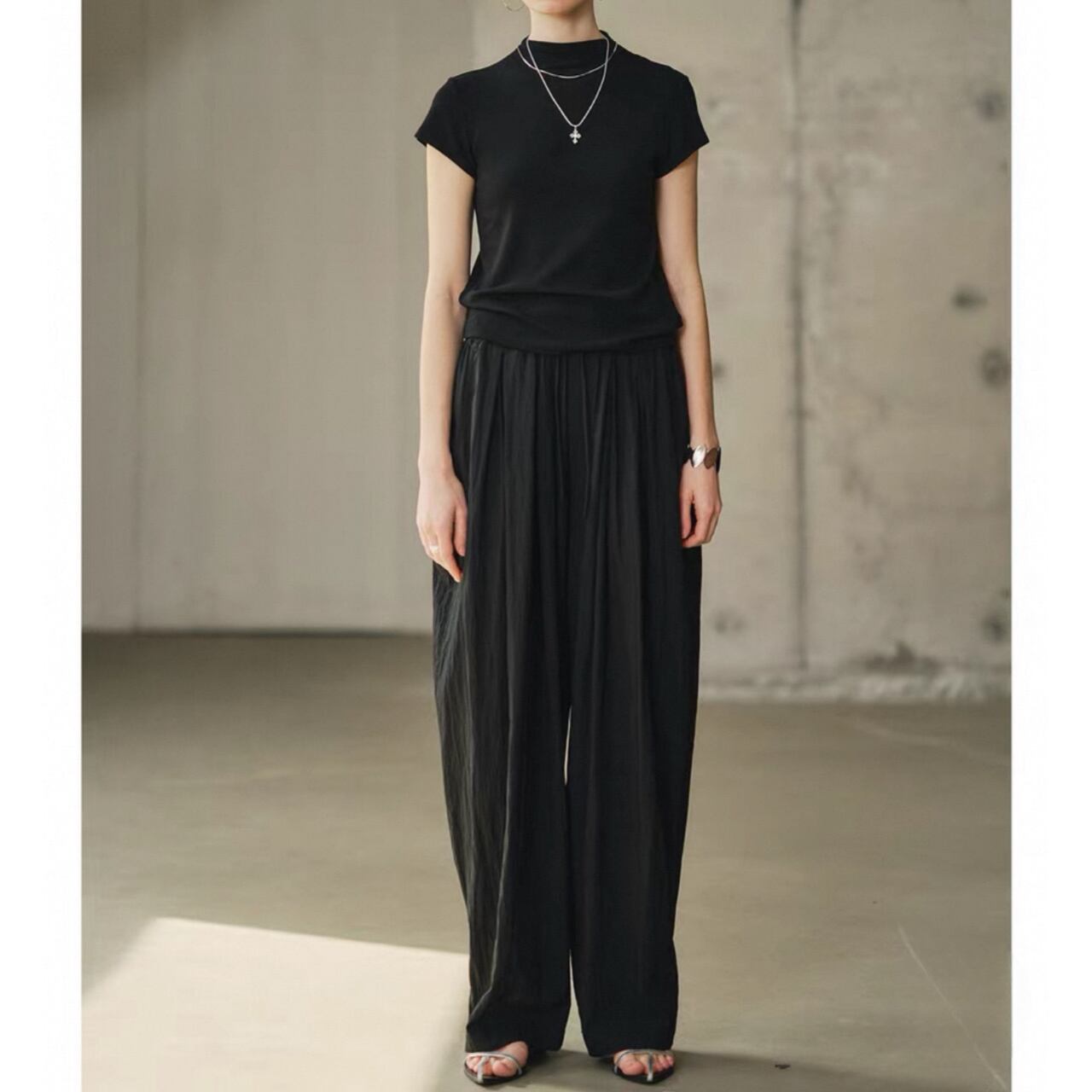 "風のように軽やかに揺れ動く"プリーツワイドパンツ。