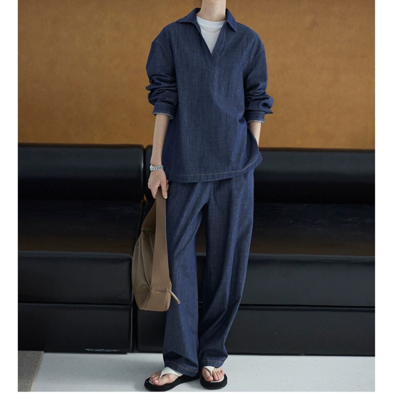 denim overlap pullover 00215