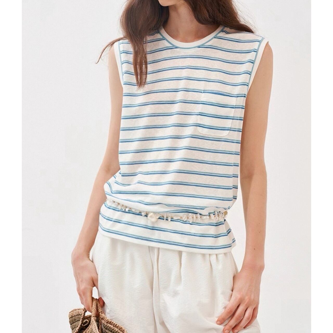 marine stripe sleeveless tee 00329