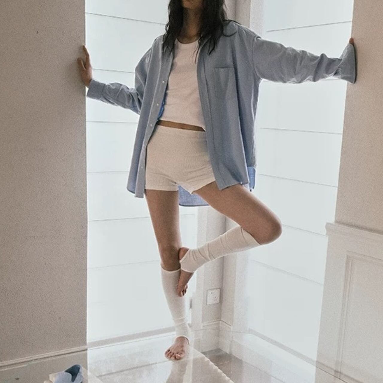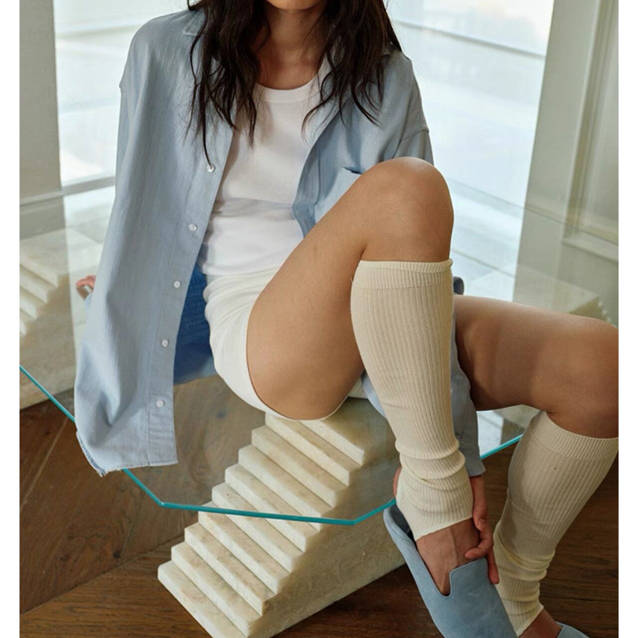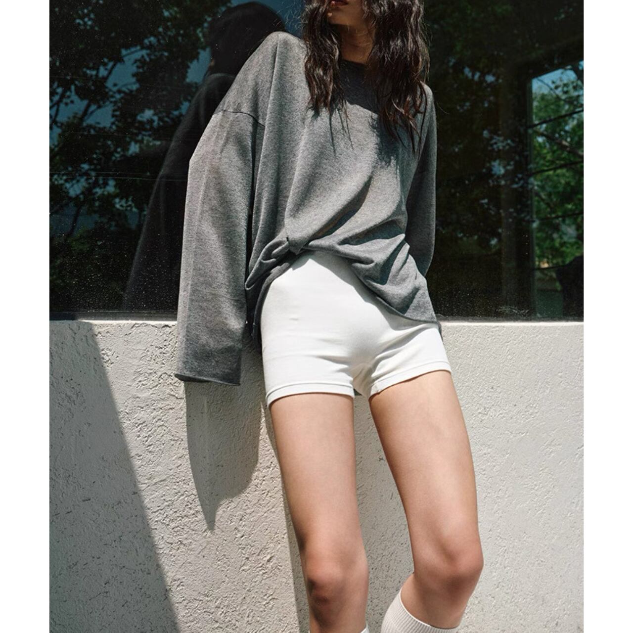 まるで、素肌にひとひら柔らかな余白をまとったような一枚。緻密なリブ編みがラインを拾いすぎず、体に優しくフィットする。モダール混のしっとりとした質感は、汗ばむ季節もさらりと心地よく。ショート丈でも媚びないバランスで、大人の肌見せにちょうどいい。
