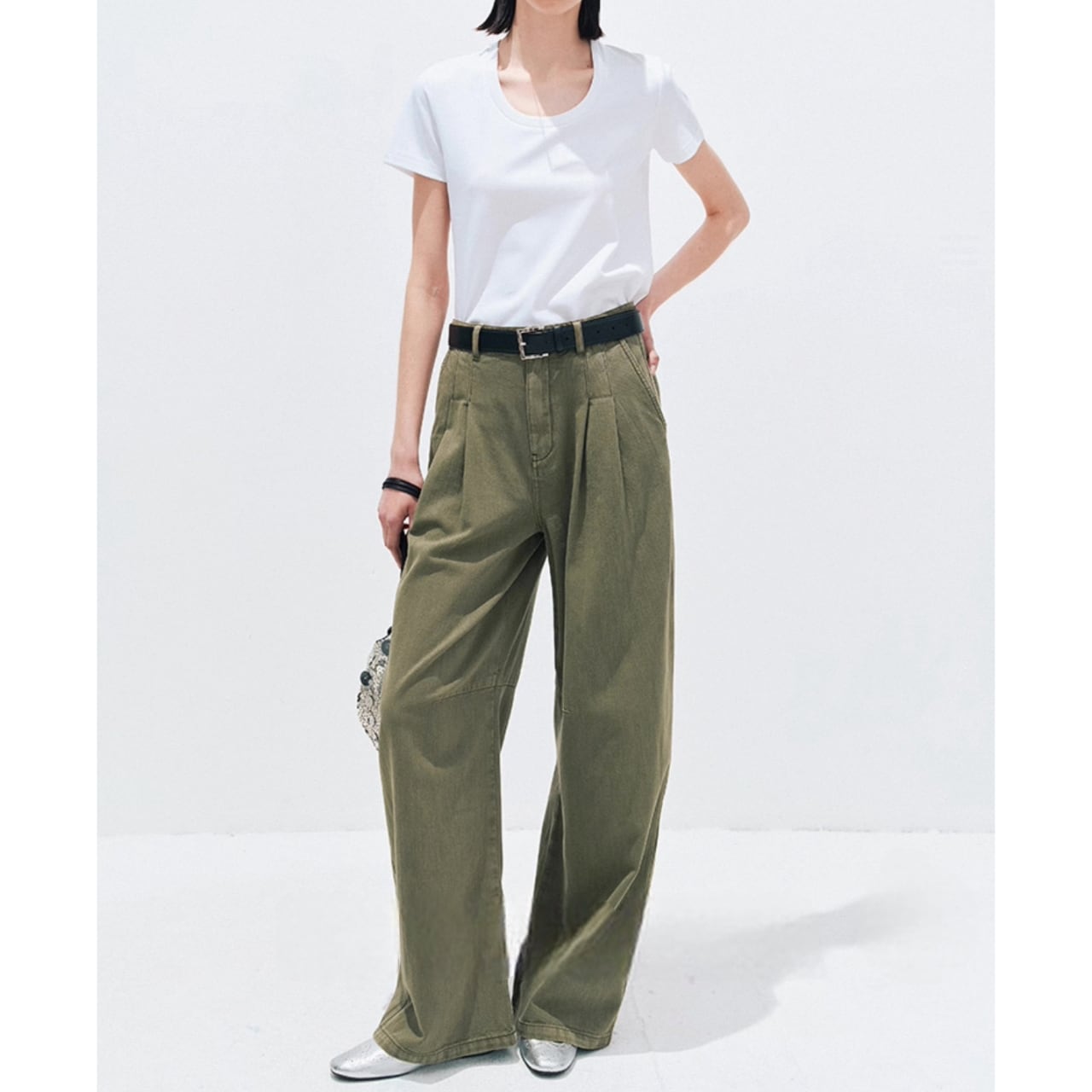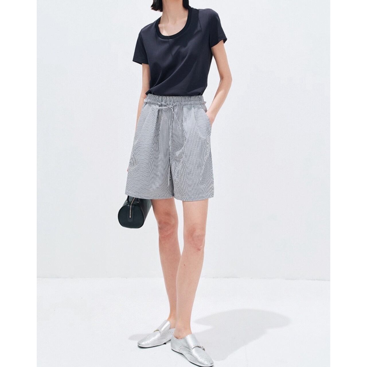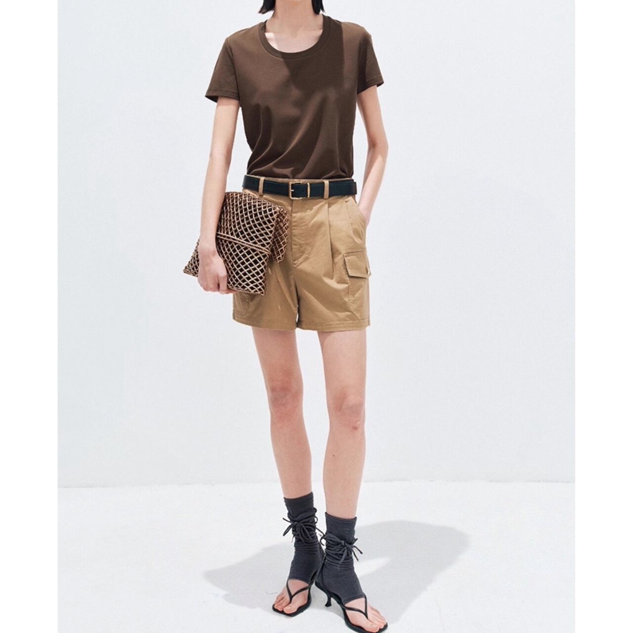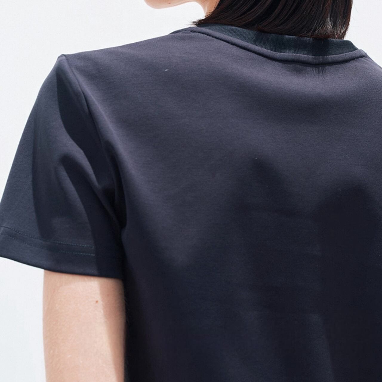世界三大綿のひとつ、ピマコットンにモダールをブレンドした上質な生地は、柔らかさの中にほんのり艶を宿し、肌にそっと溶け込むような着心地を実現する。計算されたUネックラインがデコルテを美しく引き立て、カジュアルなのにどこか女らしい余韻を残す、大人のためのTシャツ。
