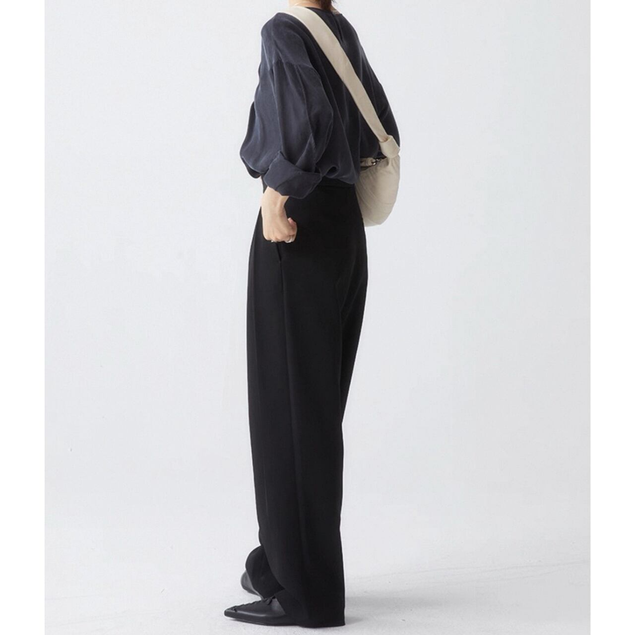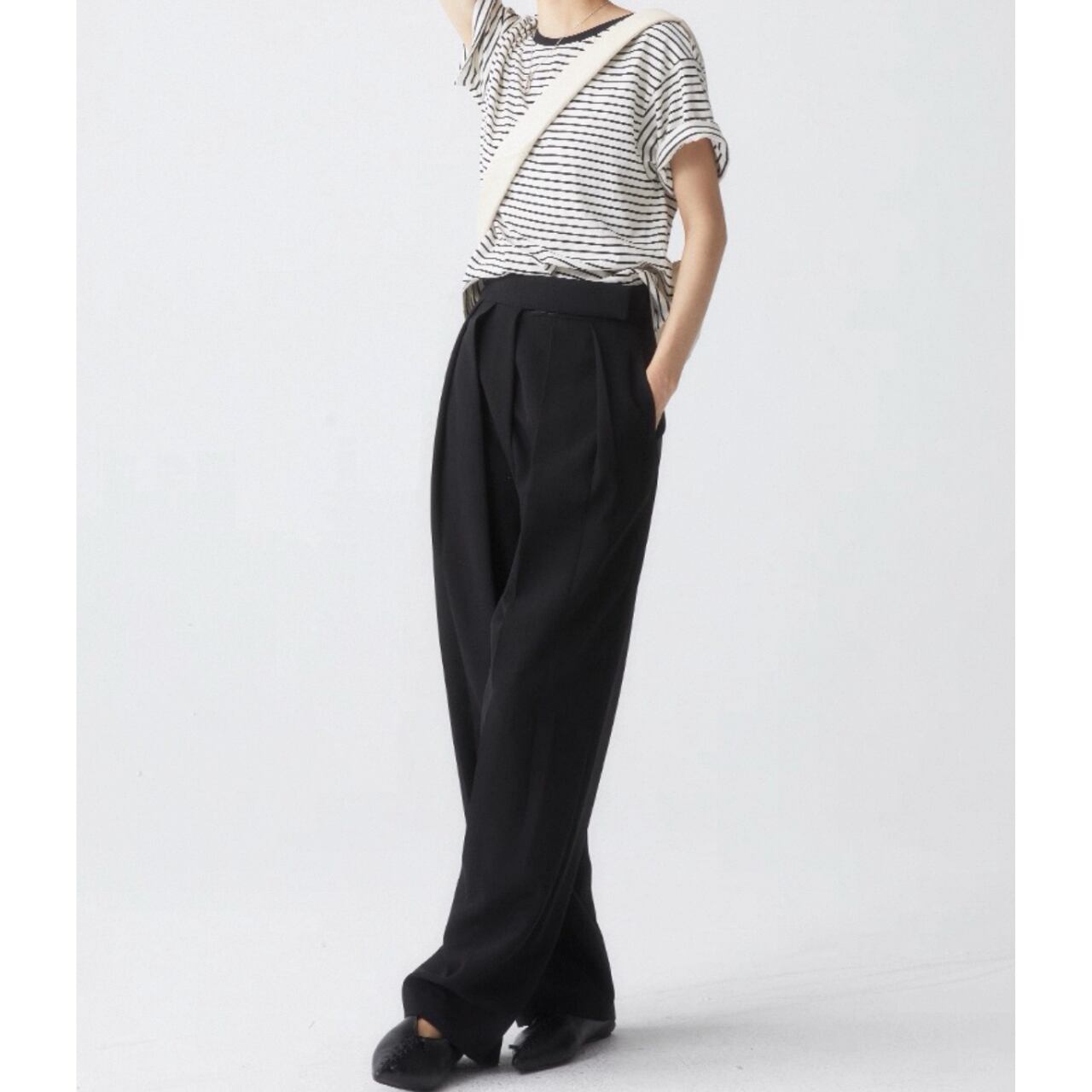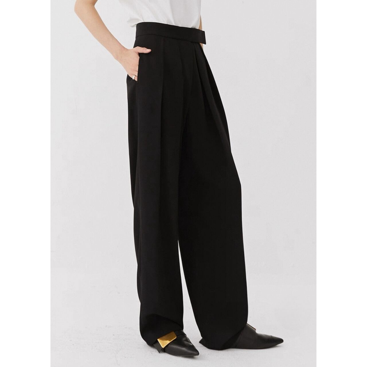 深めタックとワイドシルエットがレッグラインを整え、スタイルアップを叶える一本。ほんのり艶のあるマットな質感と落ち感を備えた素材は、通気性がよくさらっと快適な着心地を実現する。都会の日常に寄り添う上質パンツ。