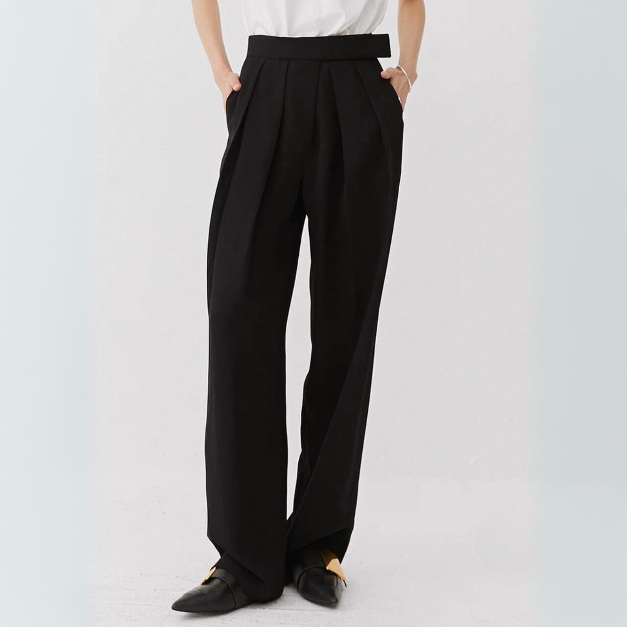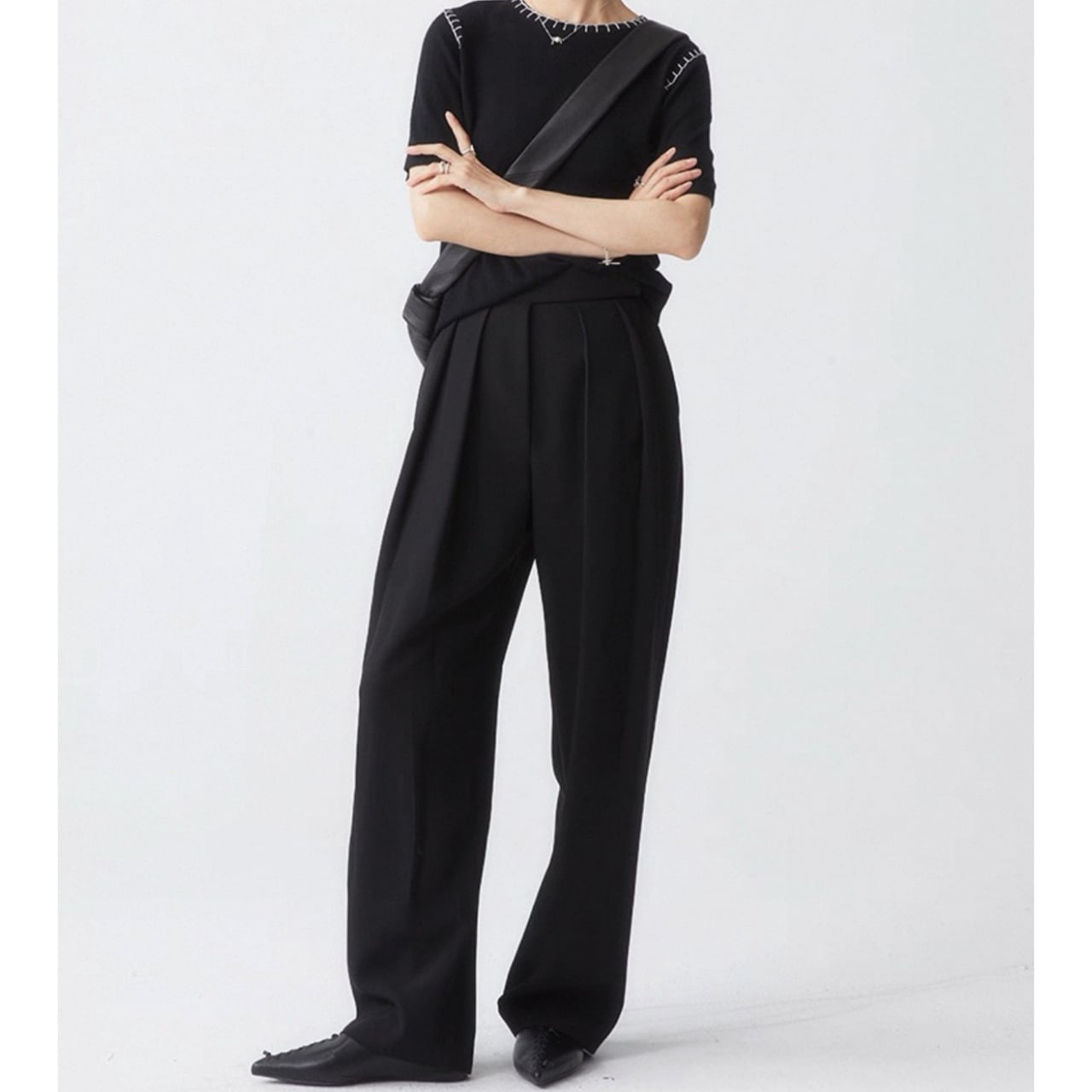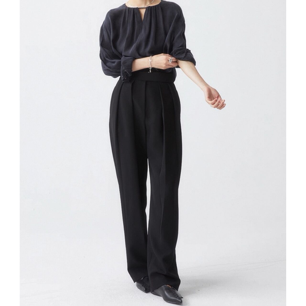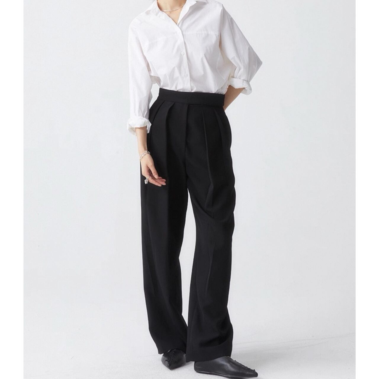 深めタックとワイドシルエットがレッグラインを整え、スタイルアップを叶える一本。ほんのり艶のあるマットな質感と落ち感を備えた素材は、通気性がよくさらっと快適な着心地を実現する。都会の日常に寄り添う上質パンツ。