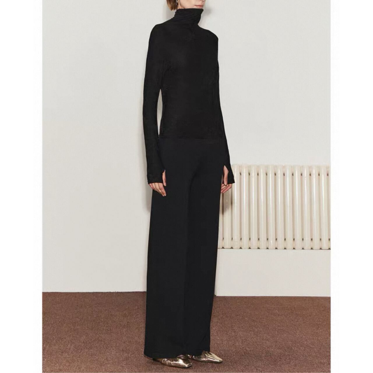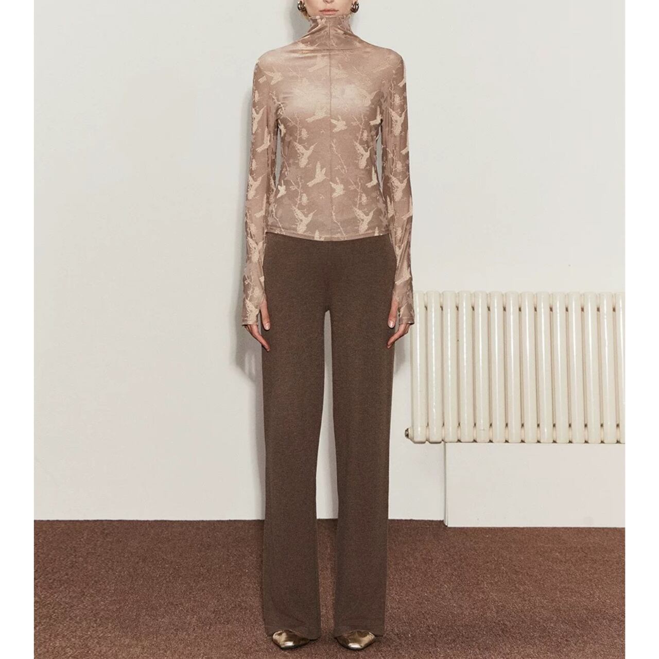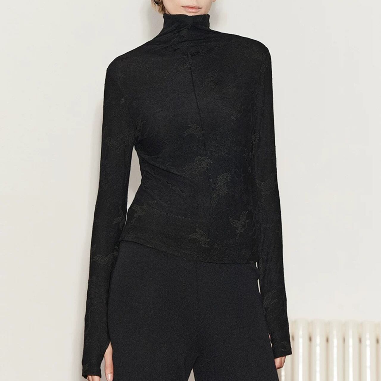 jacquard sheer turtleneck top 00353