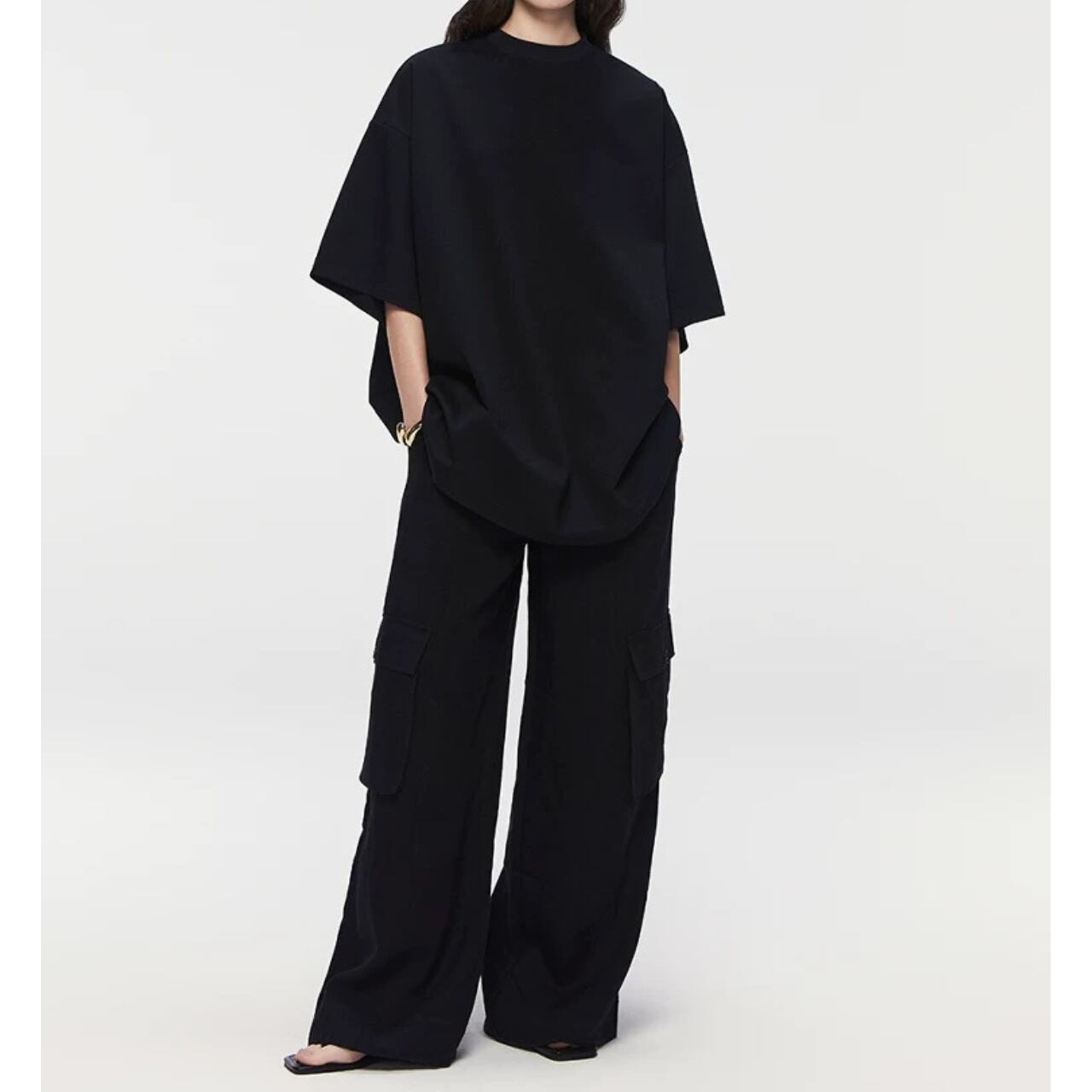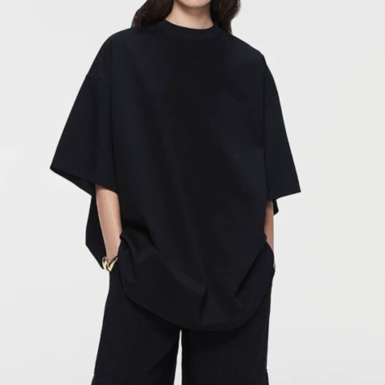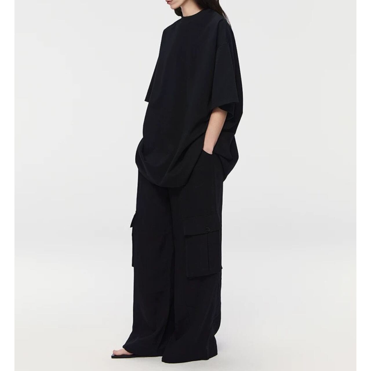削ぎ落とされたディテールに、大胆なボリューム感を掛け合わせた一枚。滑らかでほのかに光を帯びた上質素材は、夏に嬉しい清涼タッチも併せ持つ。野暮ったさを感じさせない直線的な構築が、余白の中にモードと洗練を宿す。