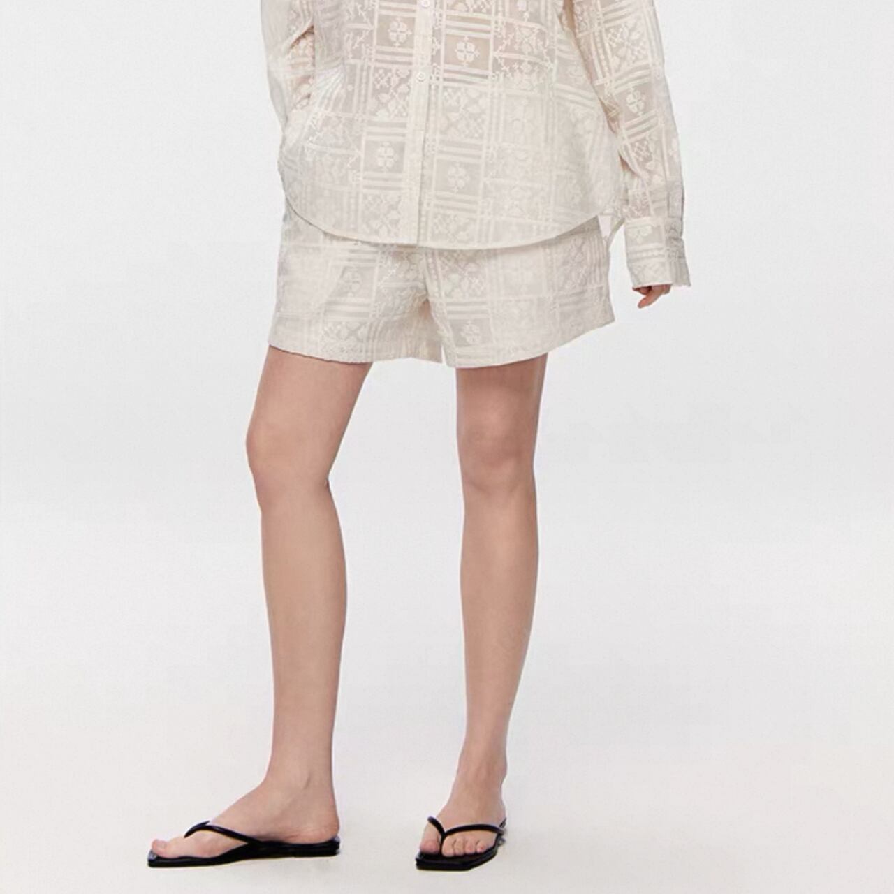 sheer embroidery shorts 00358