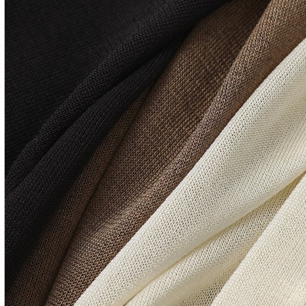 とろみのあるビスコース×シルク混素材が、肌にさらりと馴染みながら自然な光沢を纏わせてくれる。計算されたネックラインと肩まわりの程よい抜けが、媚びない色気を引き出す。気取らないモードな洒落感が差をつける一枚。
