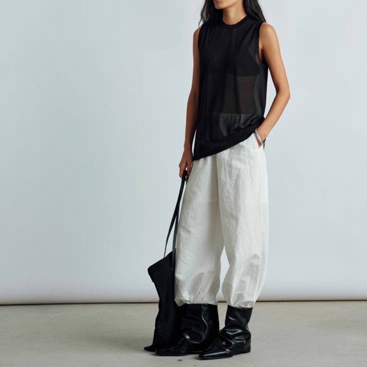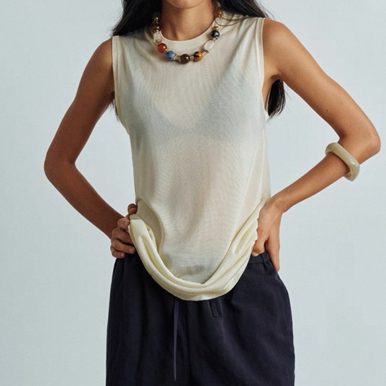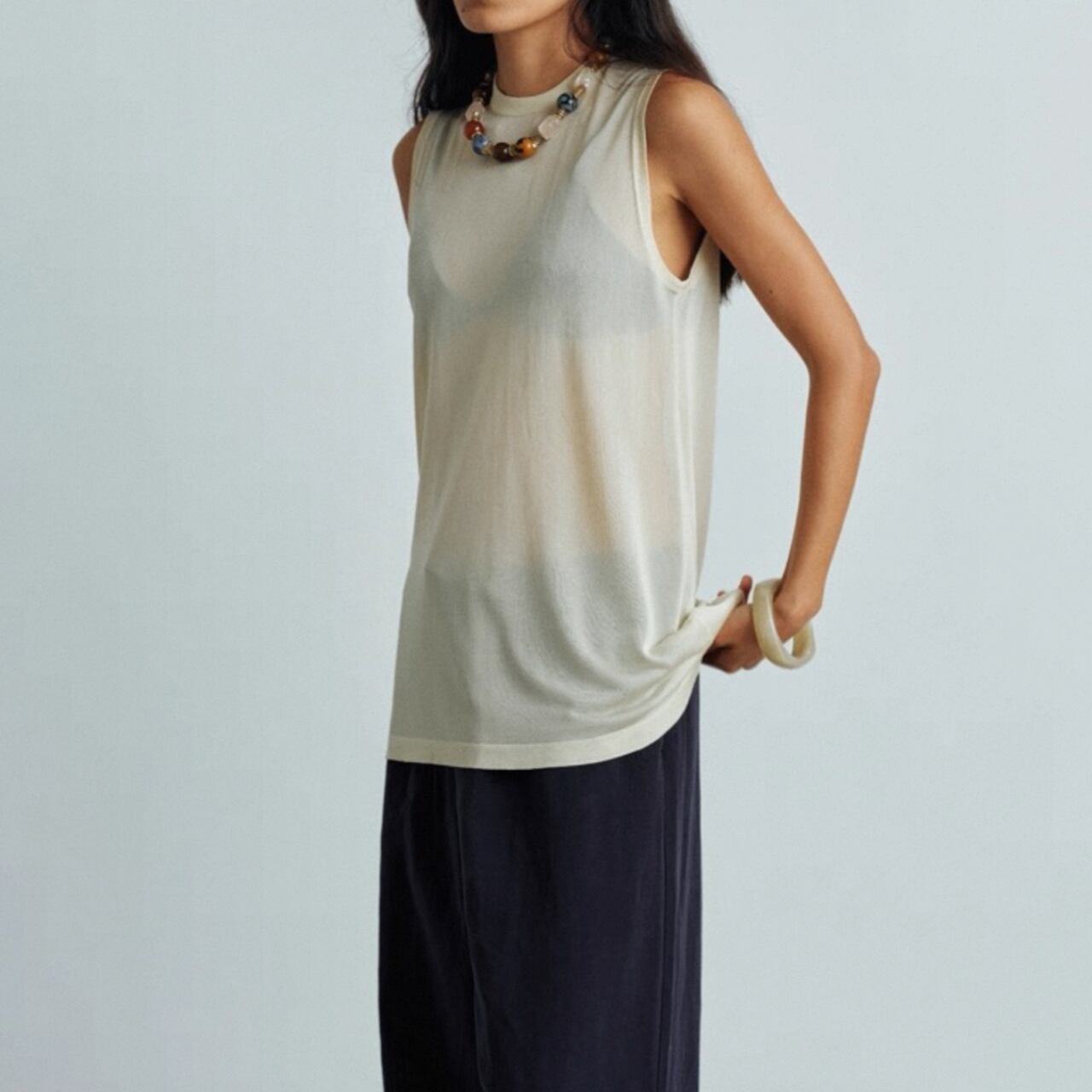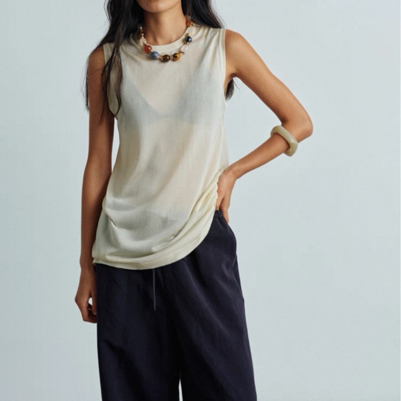 繊細な抜け感と軽やかさを備えたノースリーブトップ。