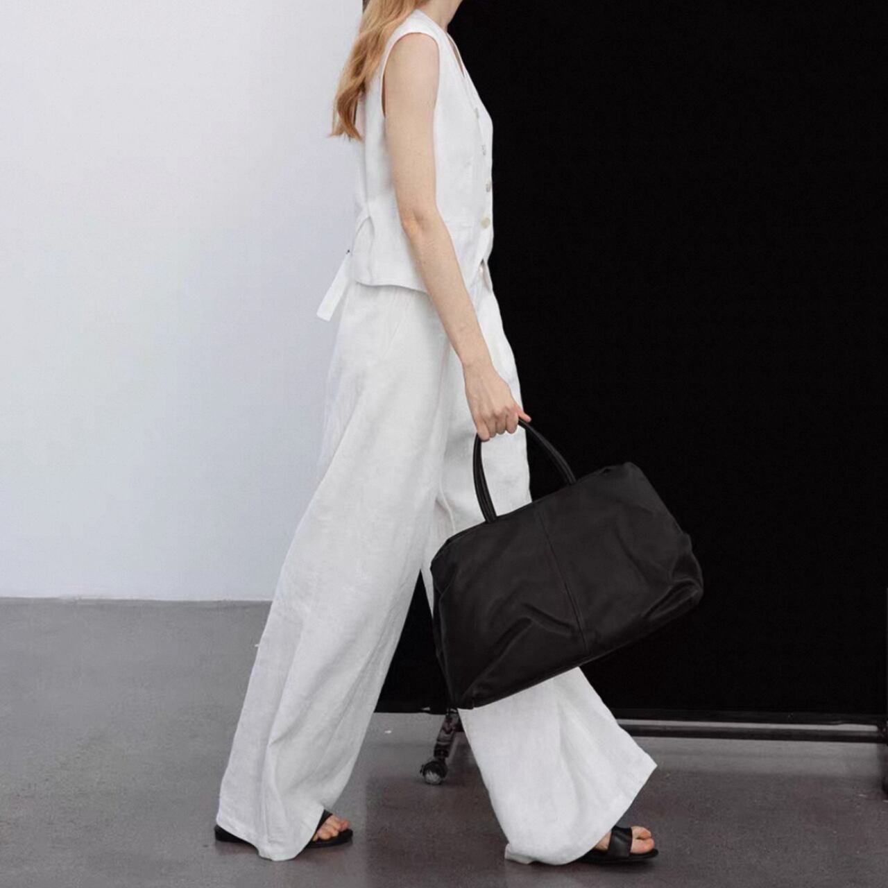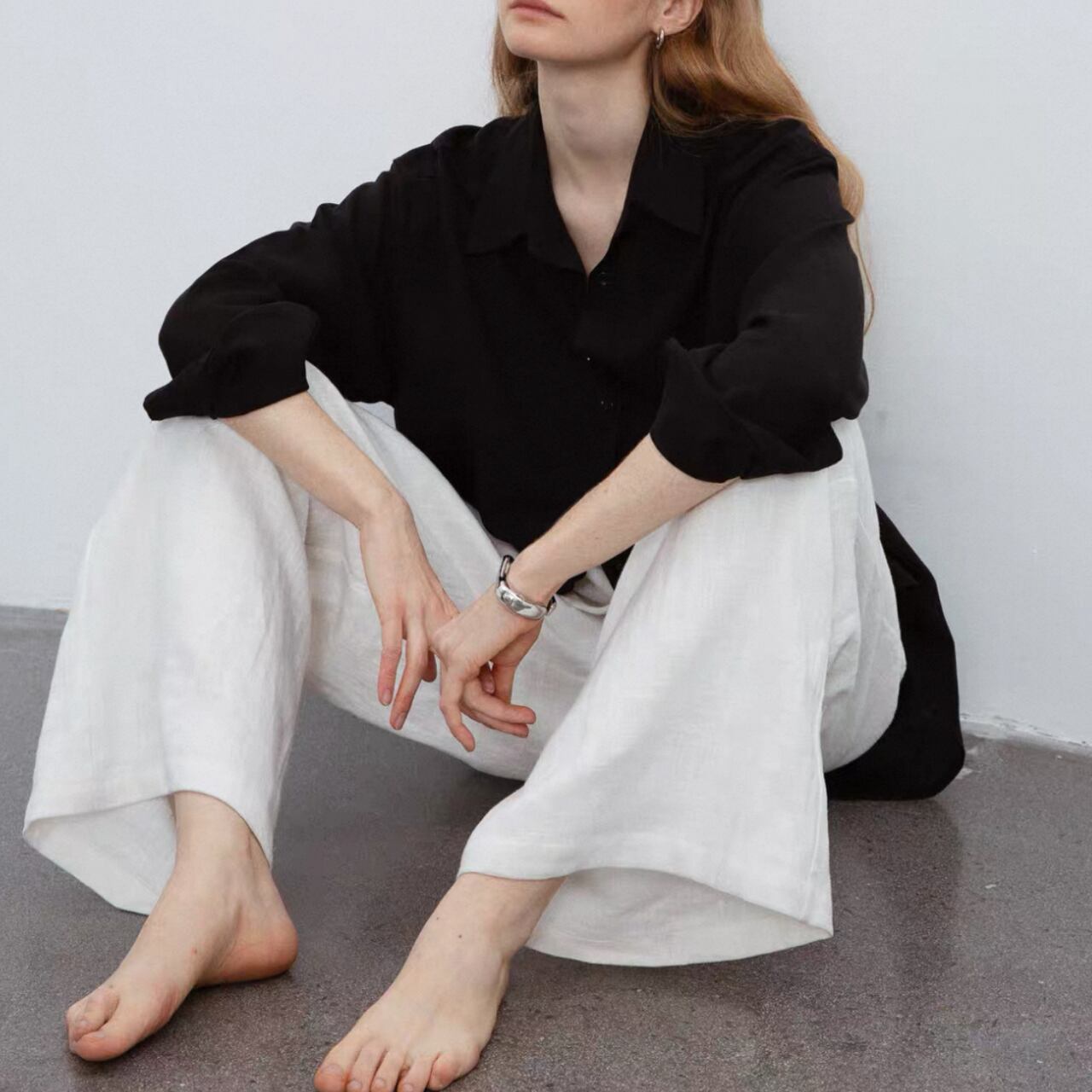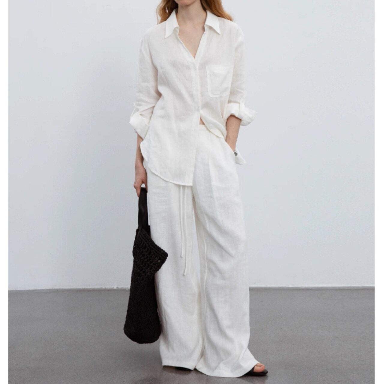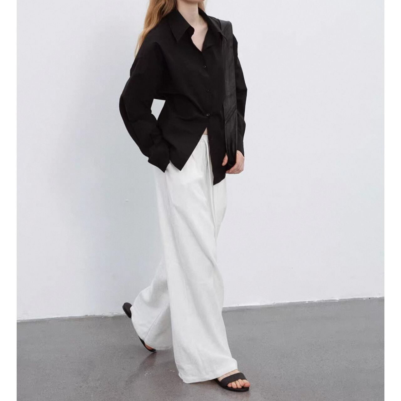 ナチュラルなラミー混素材を使用した、軽やかな着心地のワイドパンツ。脚にまとわりつかず、風を含んで揺れるバランスが心地いい。ウエストは総ゴム+ドローストリング仕様で、ノンストレスな履き心地を実現。タンクやシャツを合わせて、ナチュラルモードな装いを。