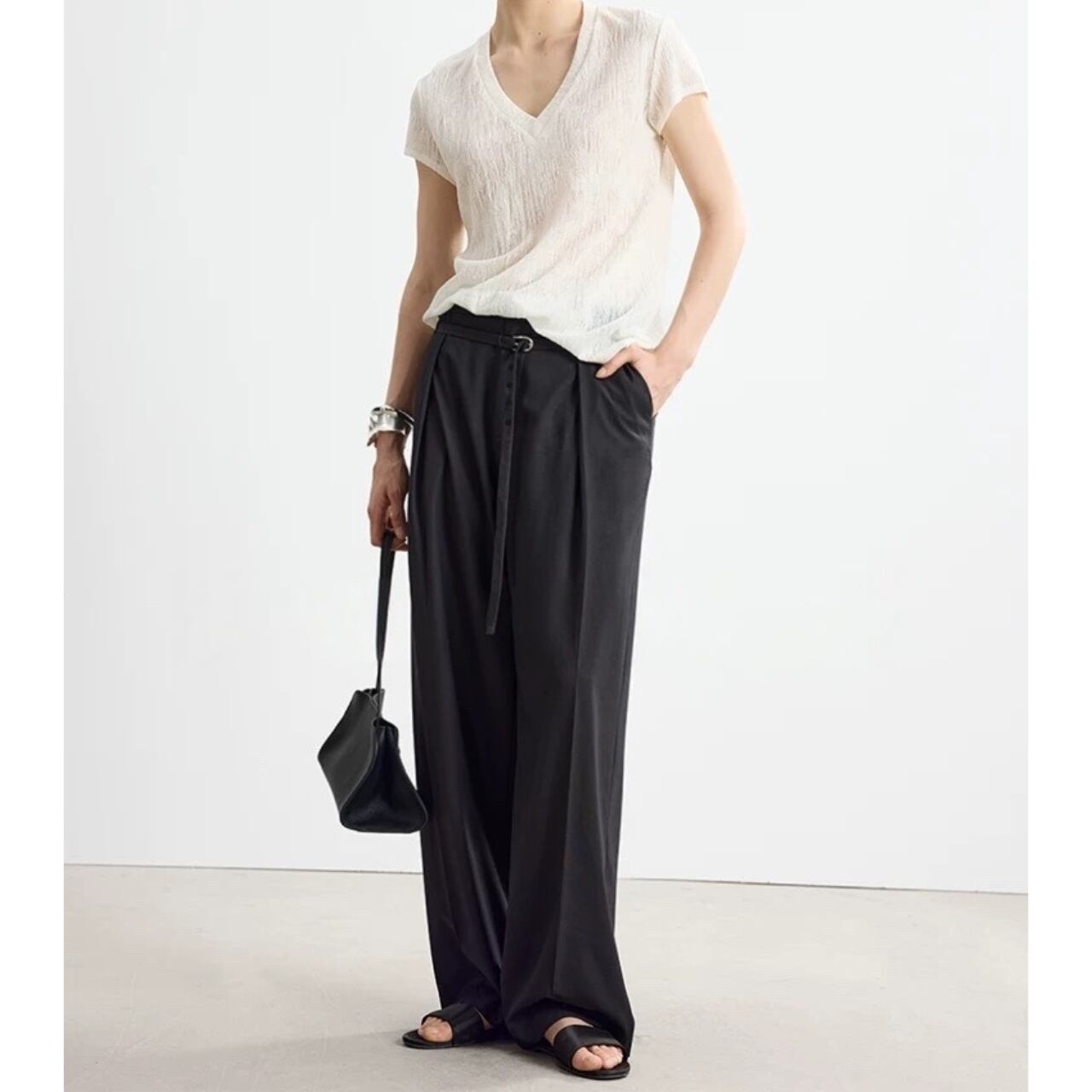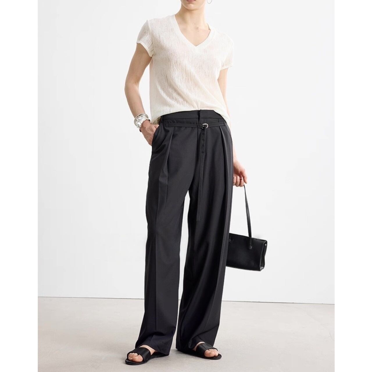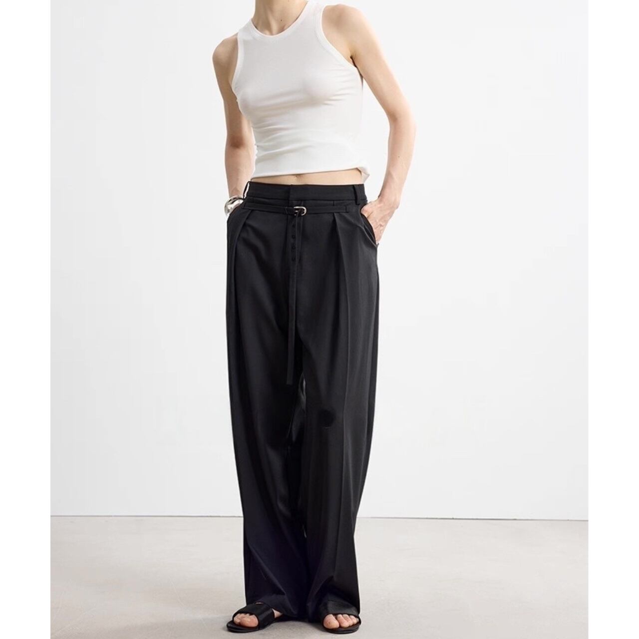 動くたび空気を纏う、ドレープが美しいモードな一本。接触冷感+竹繊維ブレンドの機能素材を使用し、暑い日でも肌離れよく快適な着心地を叶える。センターラインを効かせた立体的なワイドシルエットを、同素材のベルトが上品に引き締める。上質さと快適さを両立した優秀パンツ。