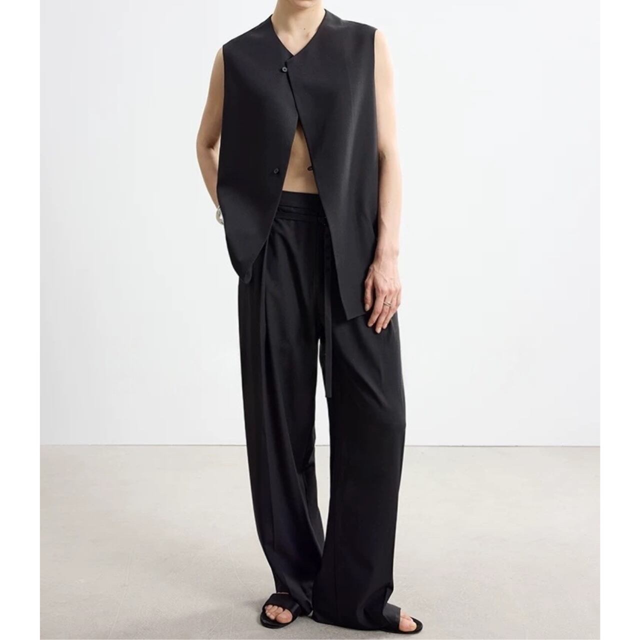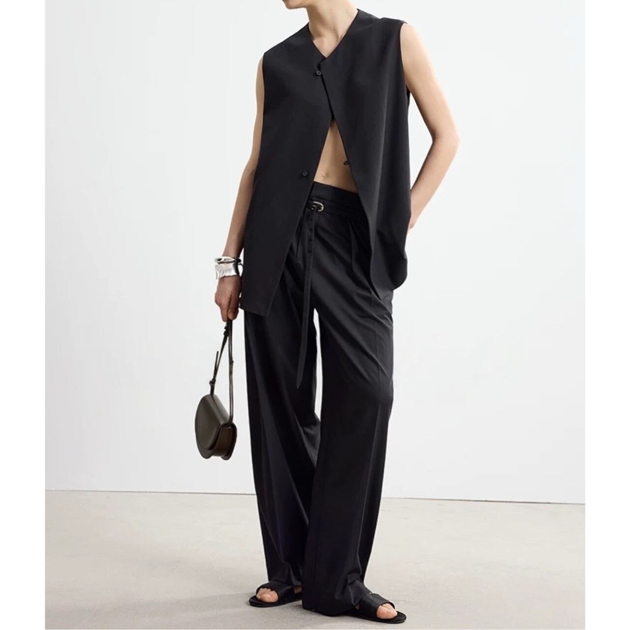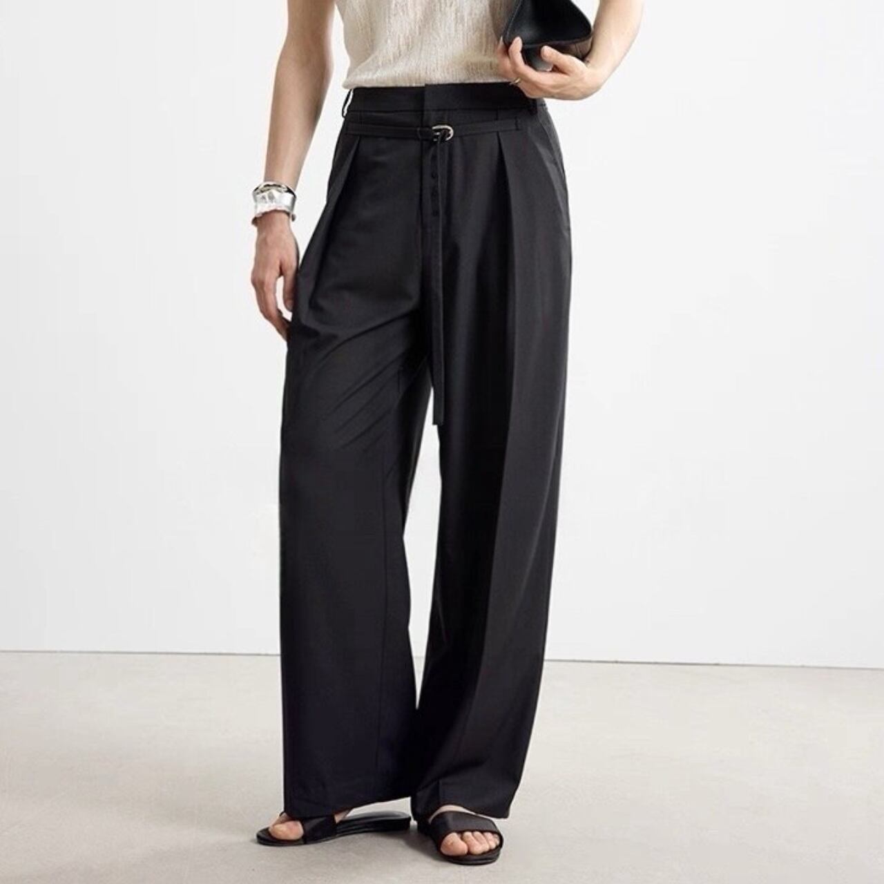動くたび空気を纏う、ドレープが美しいモードな一本。接触冷感+竹繊維ブレンドの機能素材を使用し、暑い日でも肌離れよく快適な着心地を叶える。センターラインを効かせた立体的なワイドシルエットを、同素材のベルトが上品に引き締める。上質さと快適さを両立した優秀パンツ。