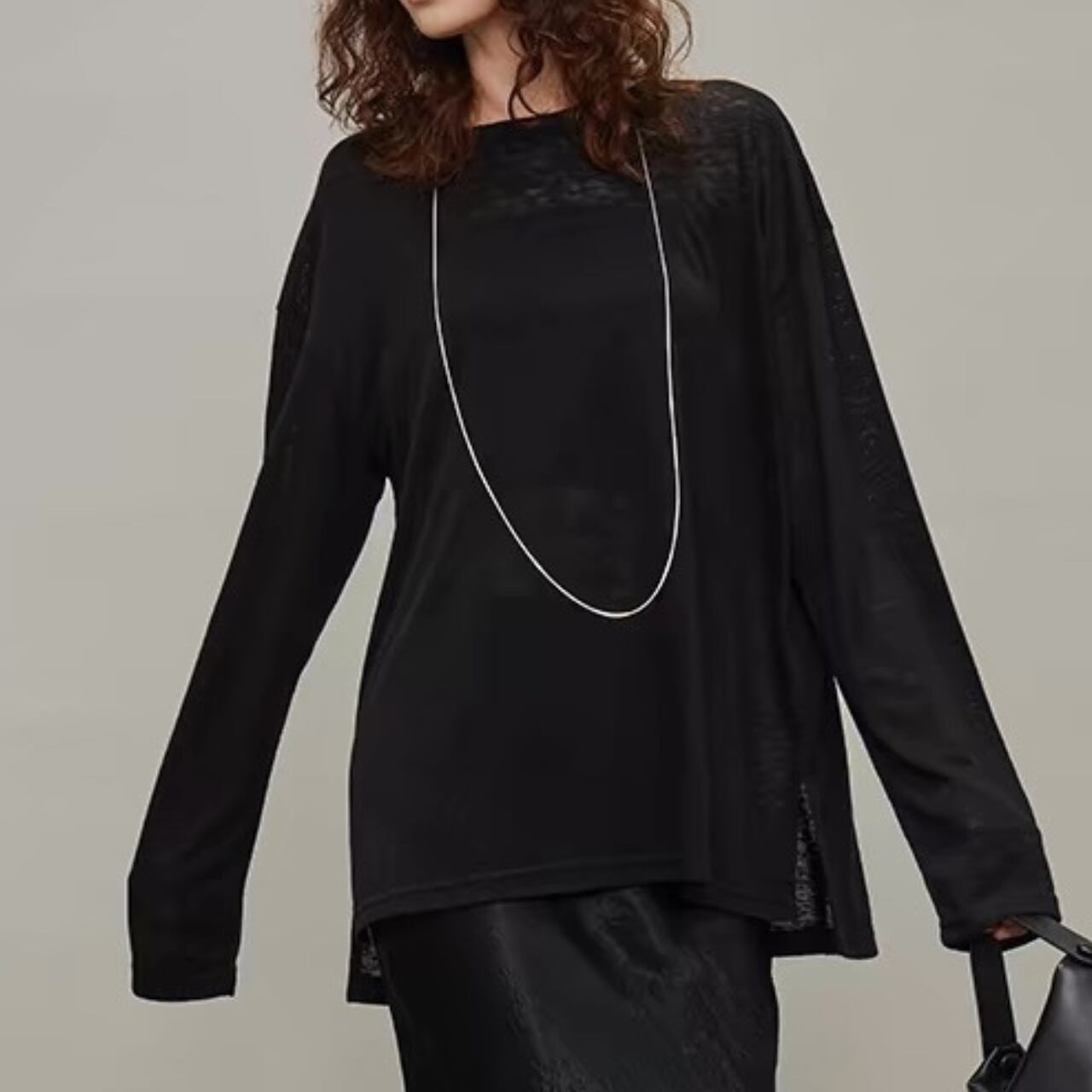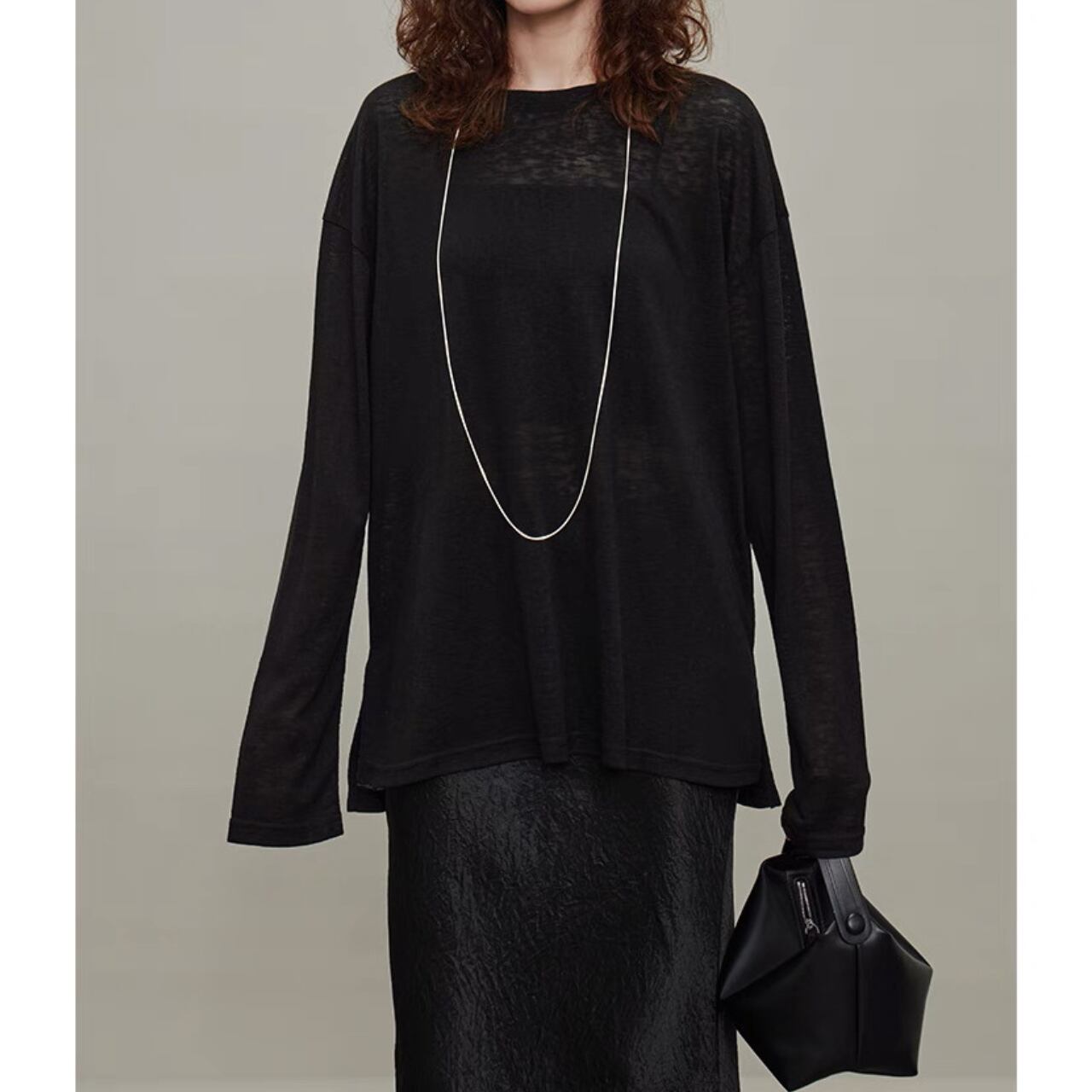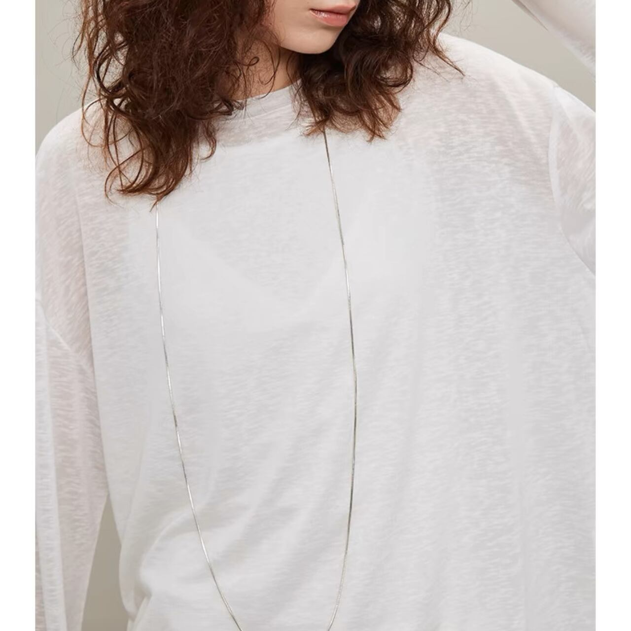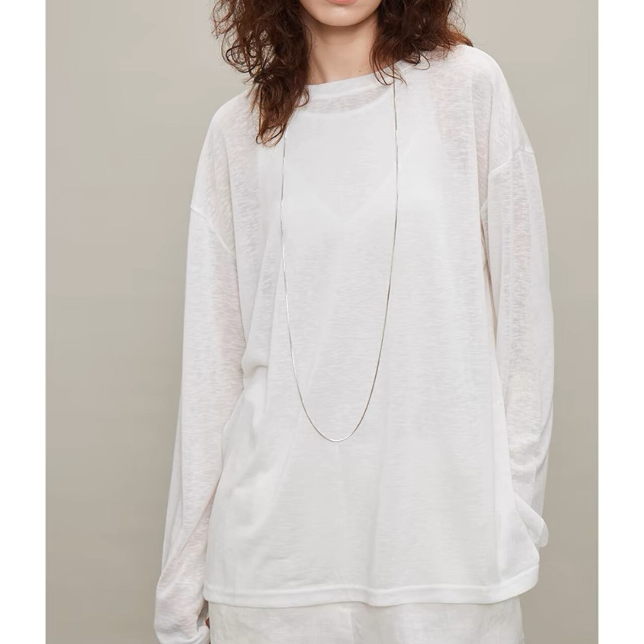 纏うだけで空気までやわらぐ、シアーロングスリーブT。しなやかでなめらかなタッチと、程よいハリと落ち感をあわせ持ち、一枚でもレイヤードでも映えるシルエットに。袖口のたるみやサイドスリットが、ゆるやかなニュアンスを添える。とろけるような着心地と気取らないモード感を両立した、"感覚で選びたくなる"ベーシック。