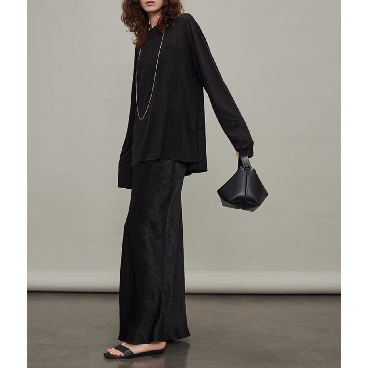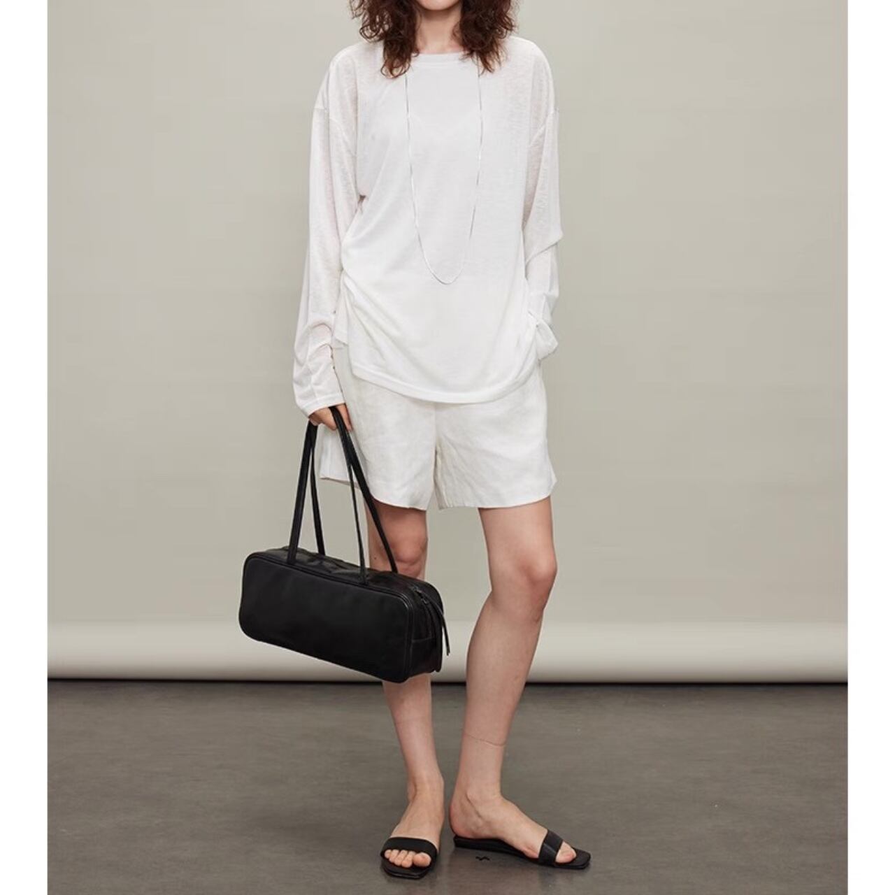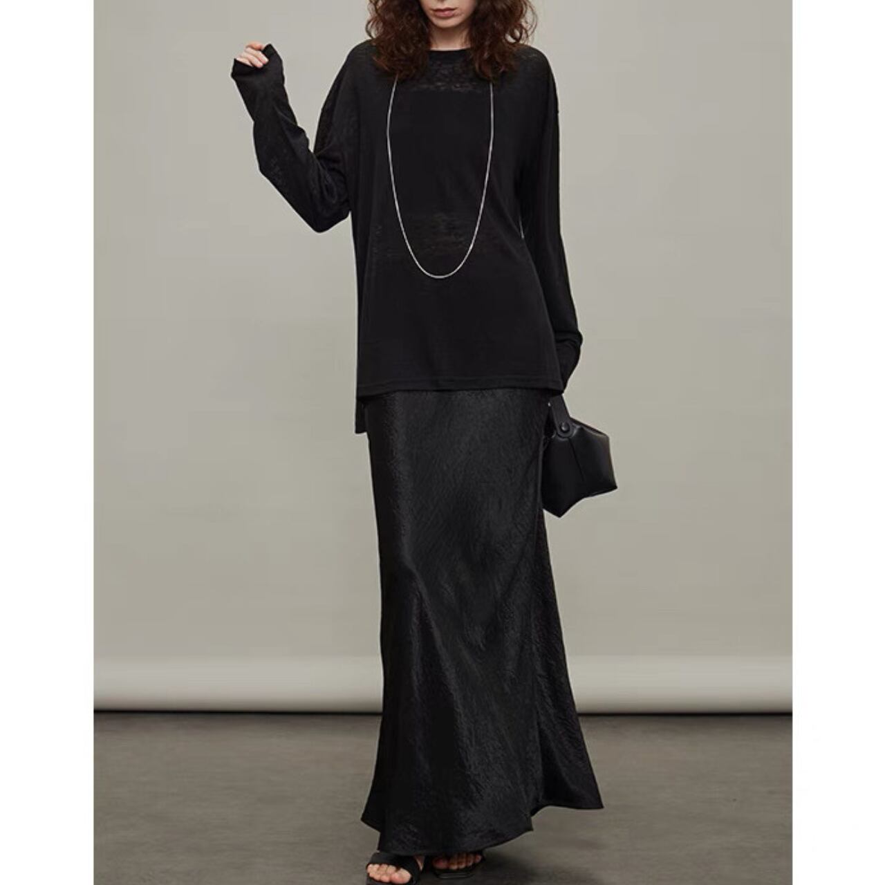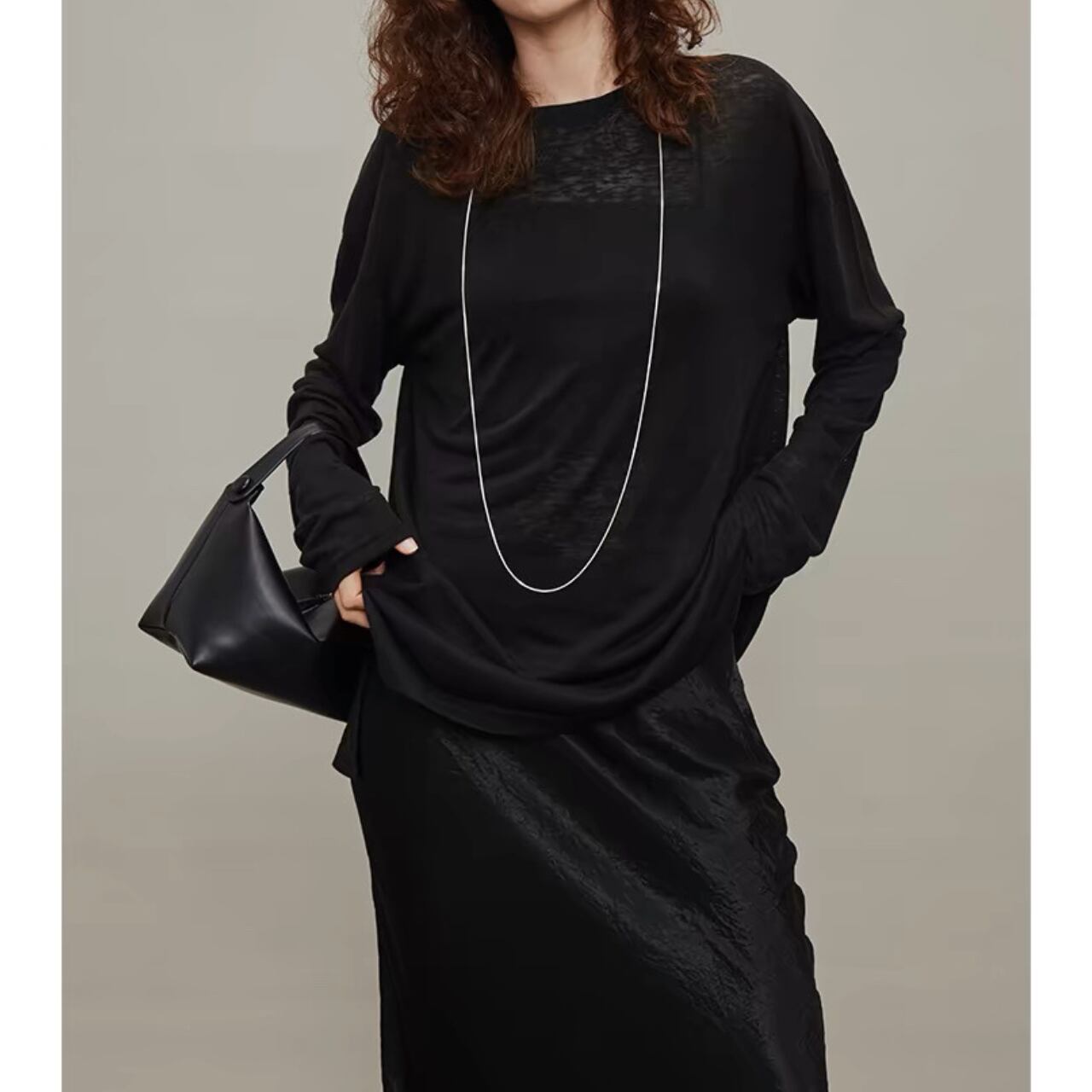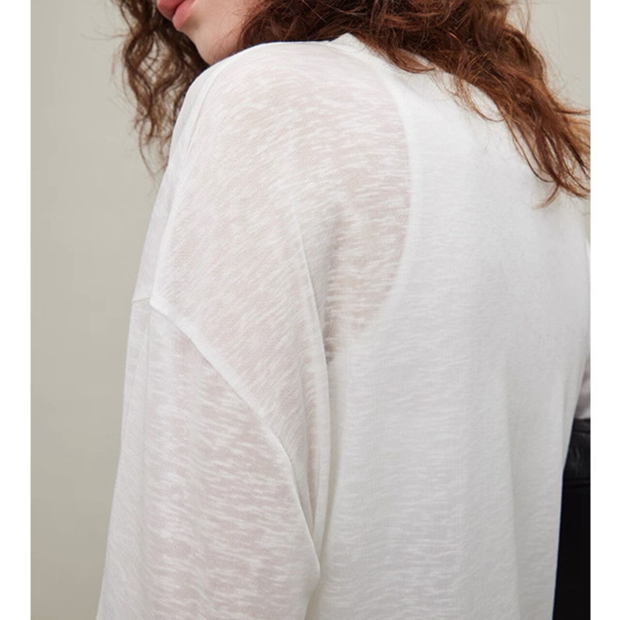 纏うだけで空気までやわらぐ、シアーロングスリーブT。しなやかでなめらかなタッチと、程よいハリと落ち感をあわせ持ち、一枚でもレイヤードでも映えるシルエットに。袖口のたるみやサイドスリットが、ゆるやかなニュアンスを添える。とろけるような着心地と気取らないモード感を両立した、"感覚で選びたくなる"ベーシック。
