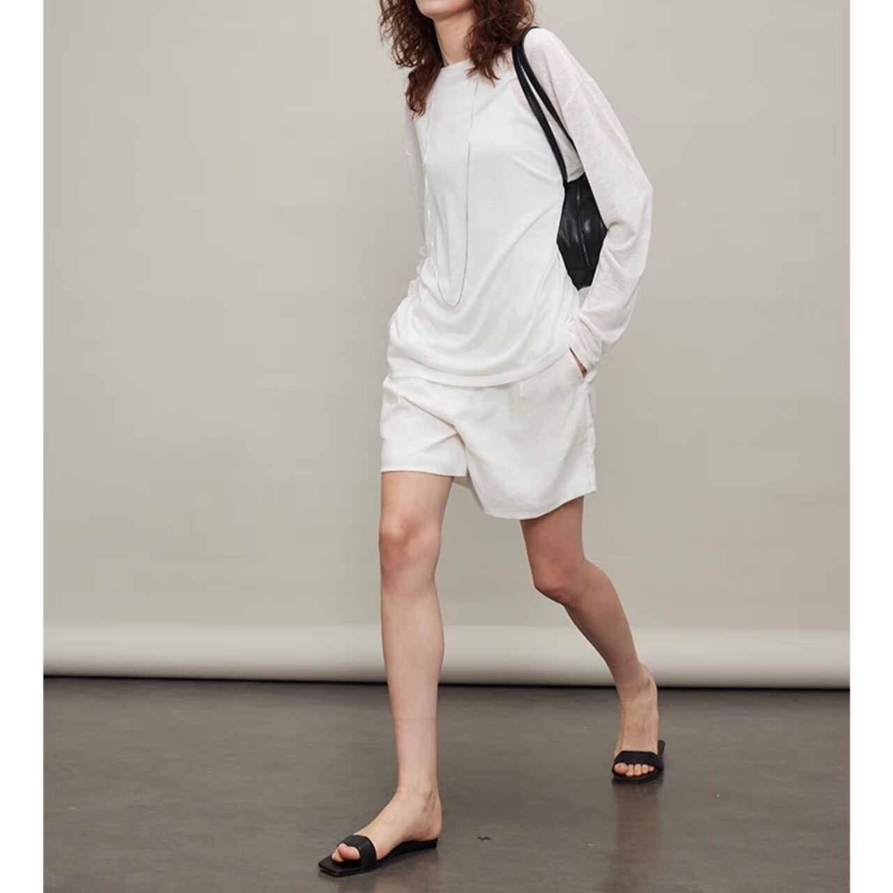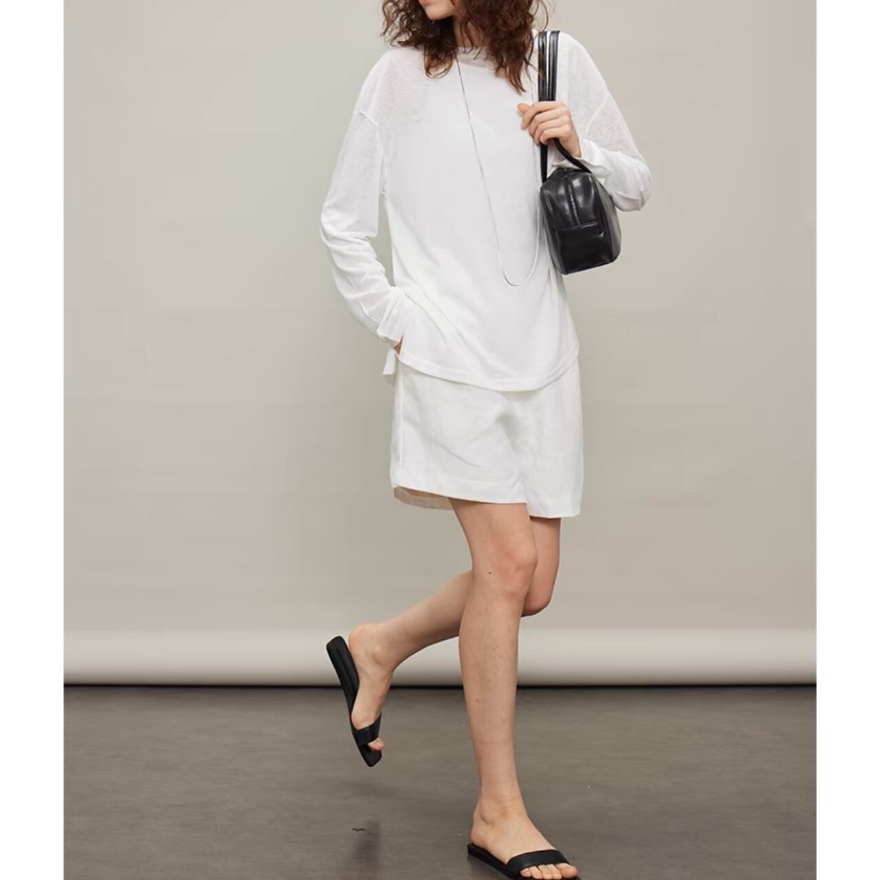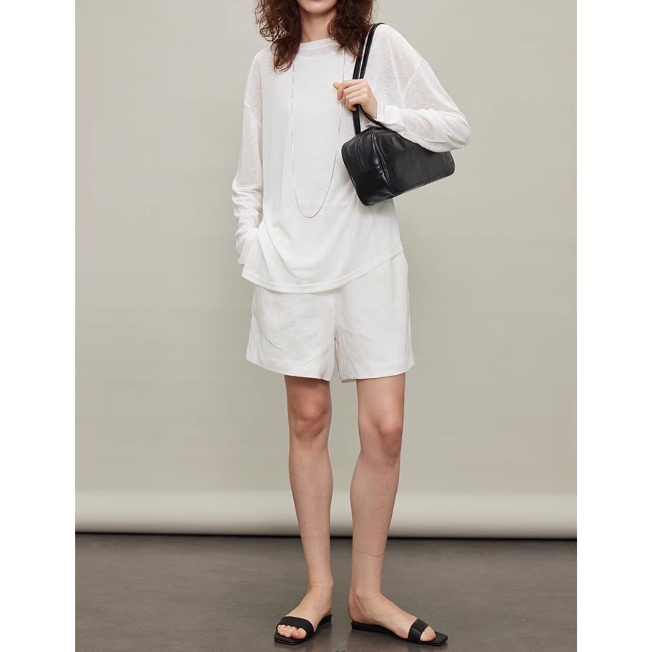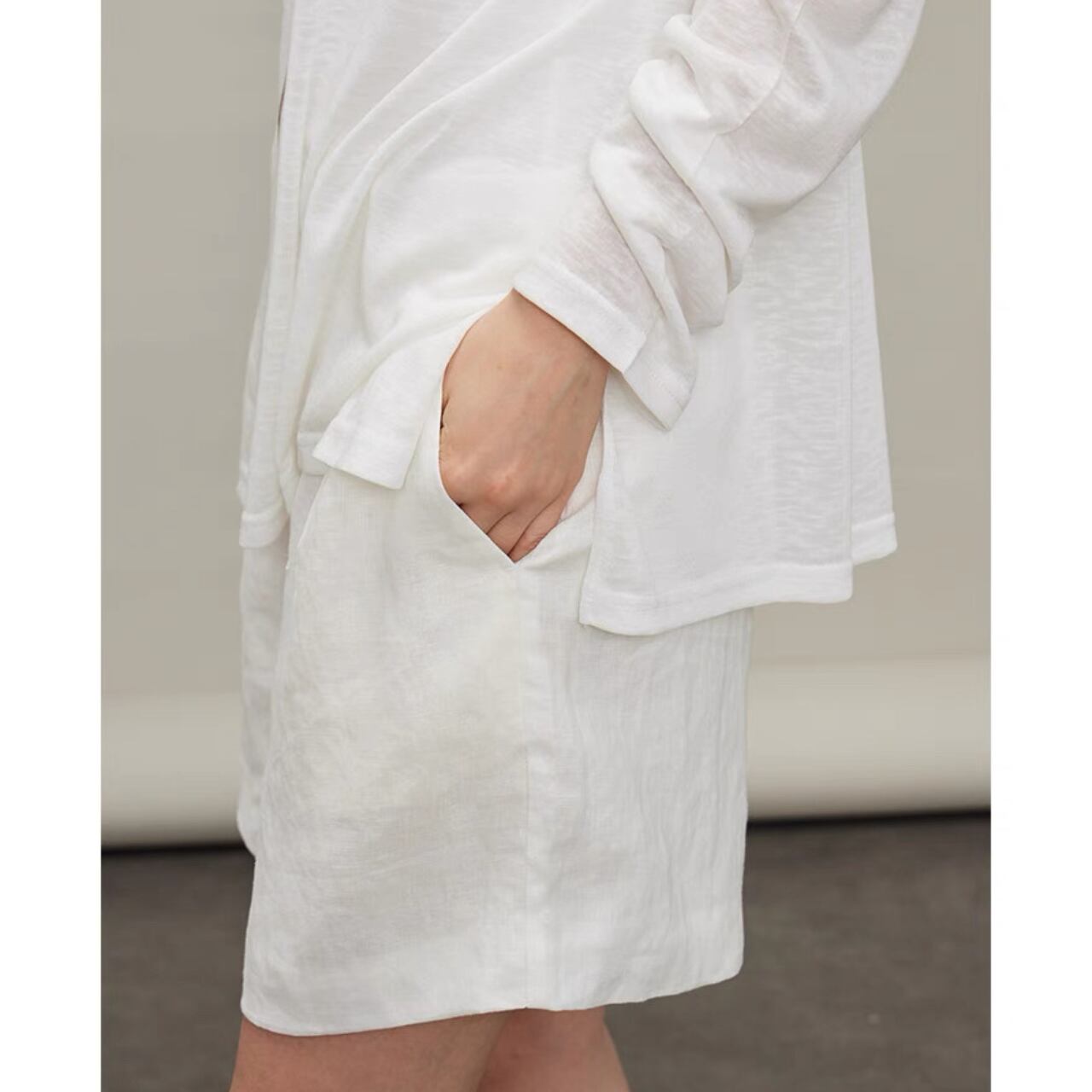 纏うだけで空気までやわらぐ、シアーロングスリーブT。しなやかでなめらかなタッチと、程よいハリと落ち感をあわせ持ち、一枚でもレイヤードでも映えるシルエットに。袖口のたるみやサイドスリットが、ゆるやかなニュアンスを添える。とろけるような着心地と気取らないモード感を両立した、"感覚で選びたくなる"ベーシック。