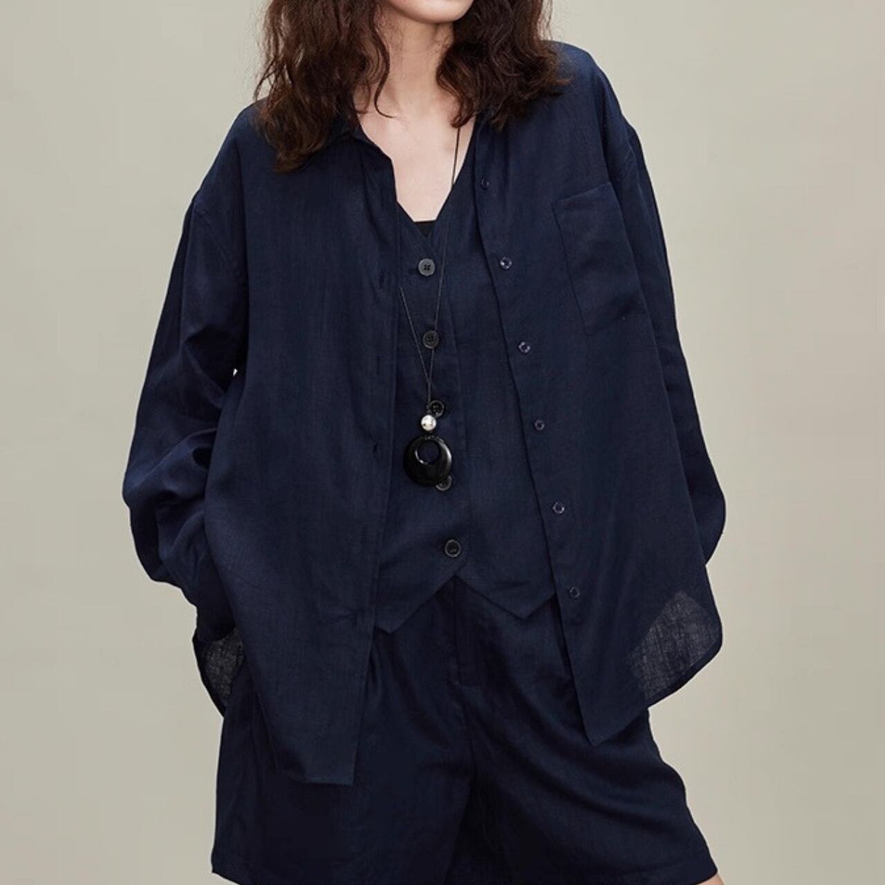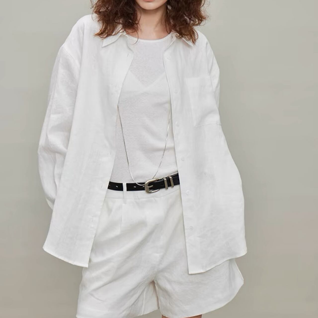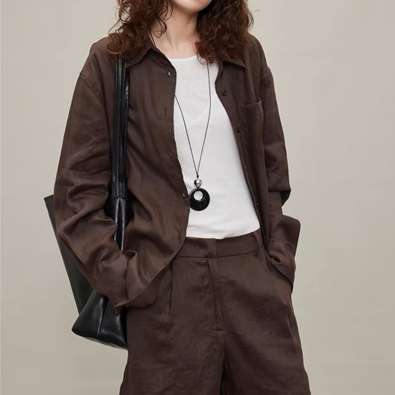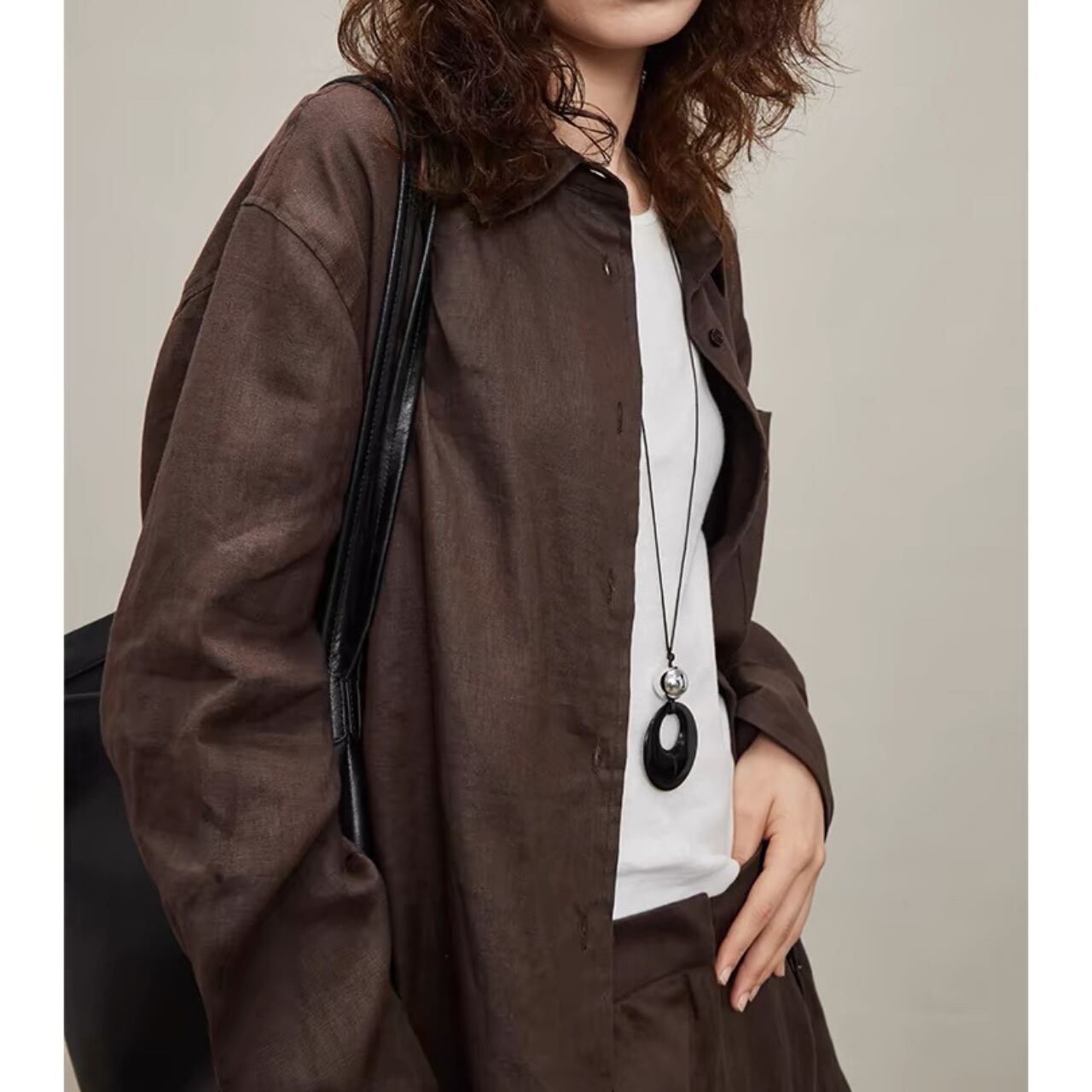 上品な光沢としなやかなハリを備えた高品質リネンと、肩の力を抜いたシルエットが、大人の余裕を漂わせる。程よいゆとりと直線的なラインが羽織っても一枚でも絵になる存在感。軽やかな着心地と落ち着いた発色で、ロングシーズン活躍する万能アイテム。セットアップで合わせればワンランク上の洗練スタイルに。(※パンツは下記リンクから)