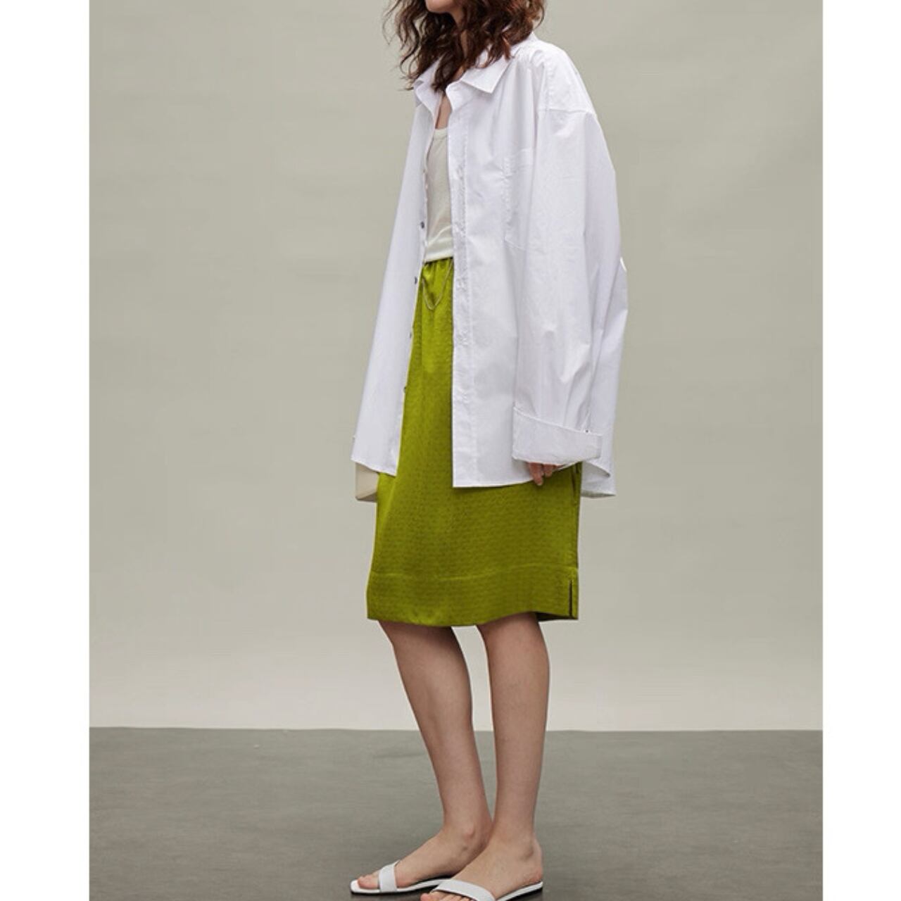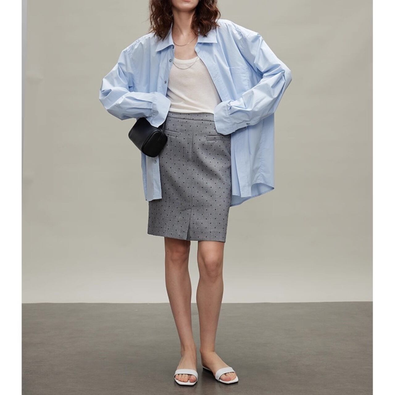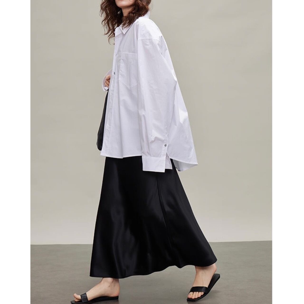 直線と余白が描く、都会的モードシャツ。