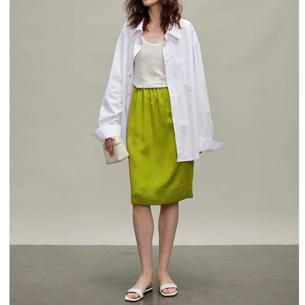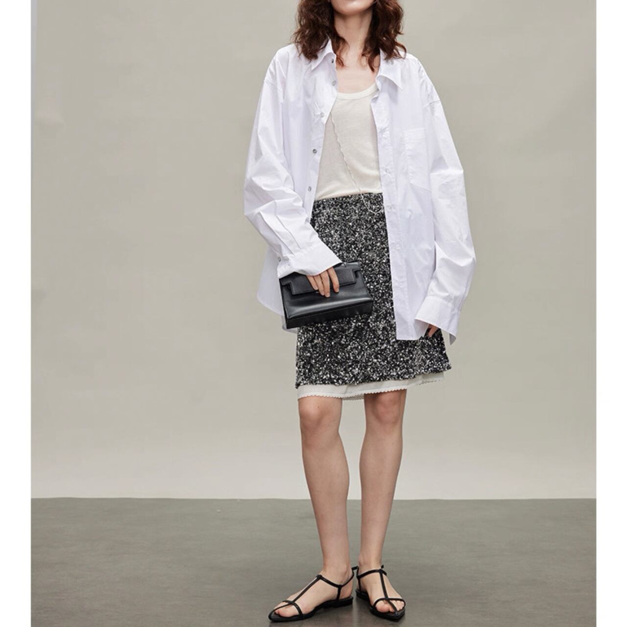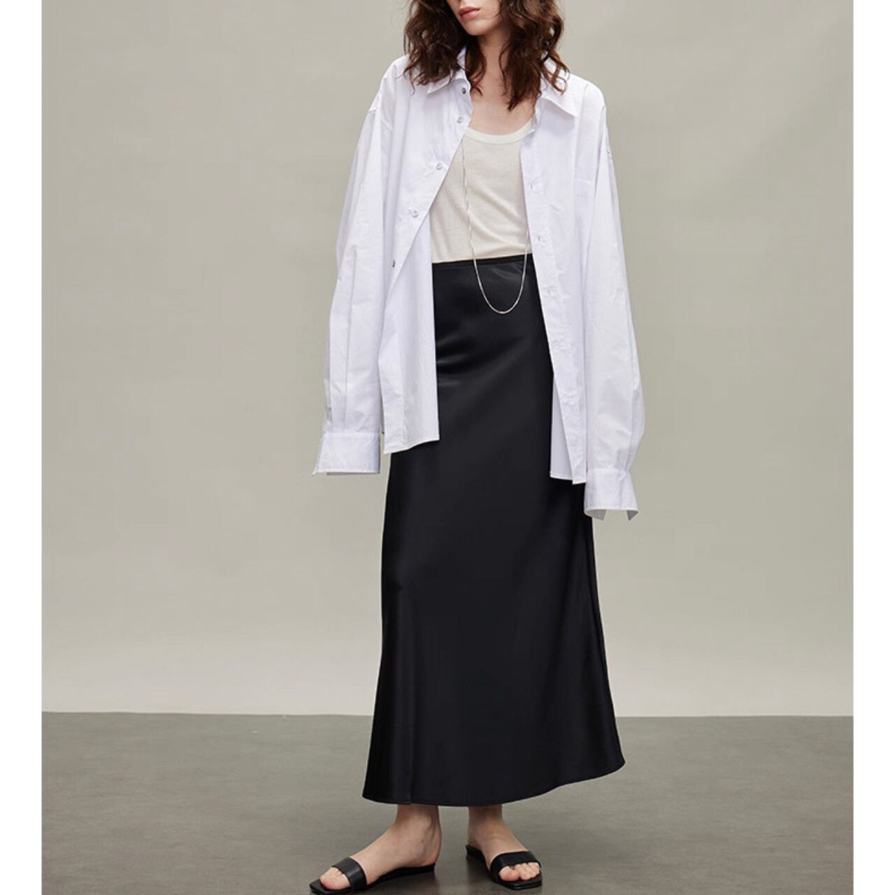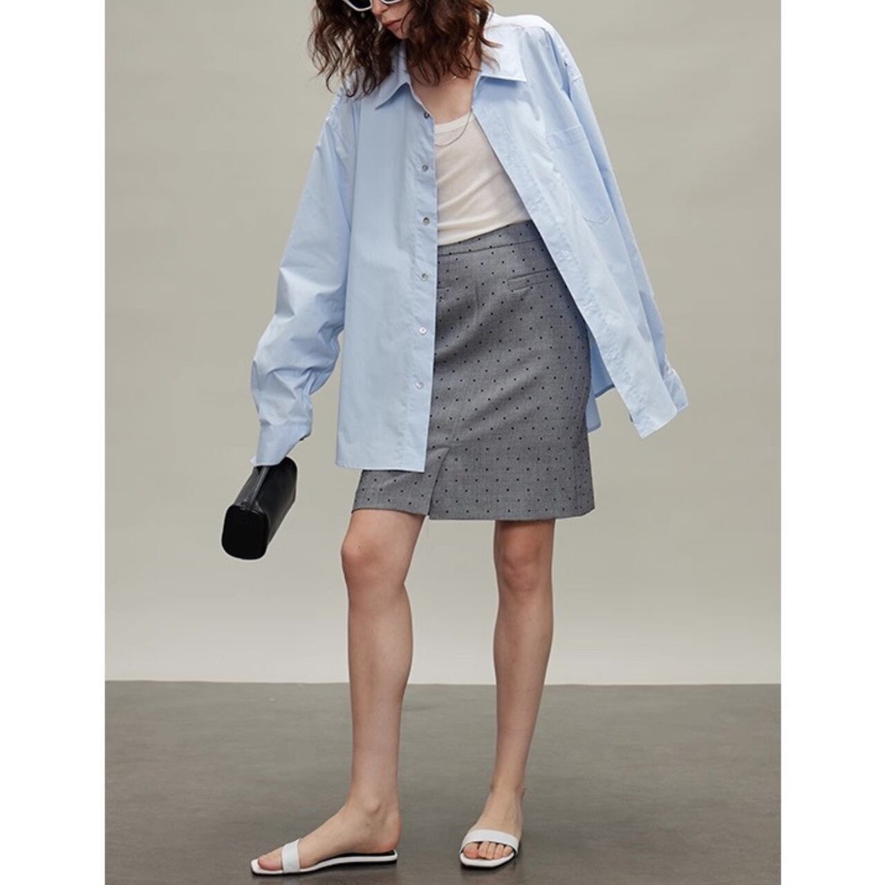 直線と余白が描く、都会的モードシャツ。