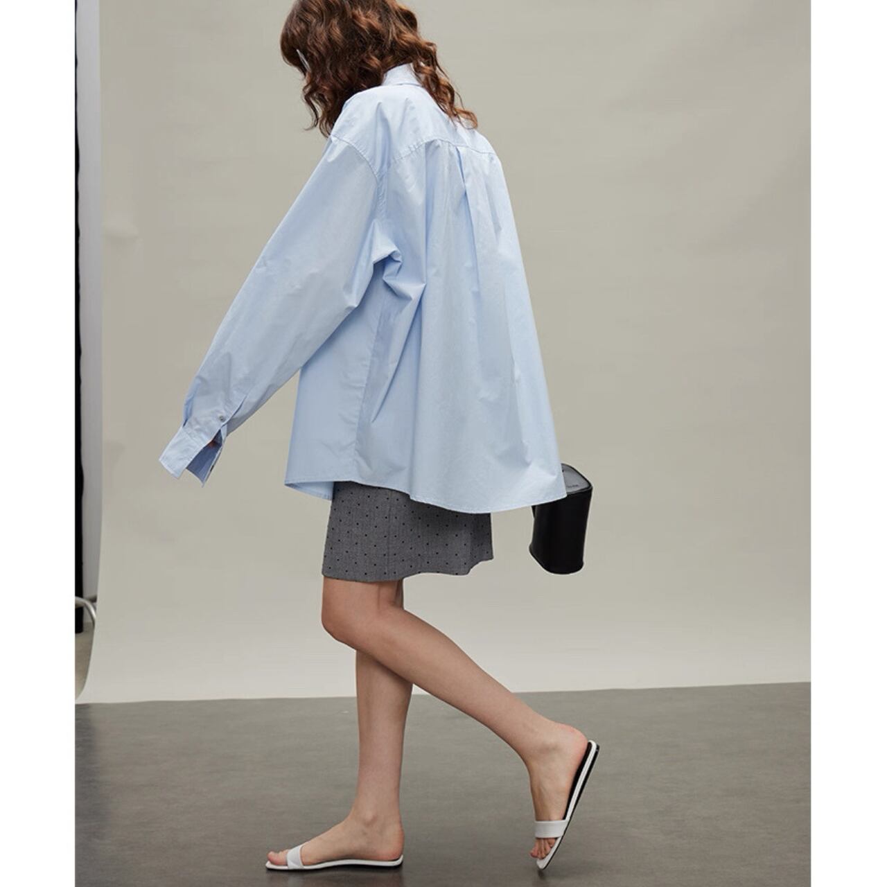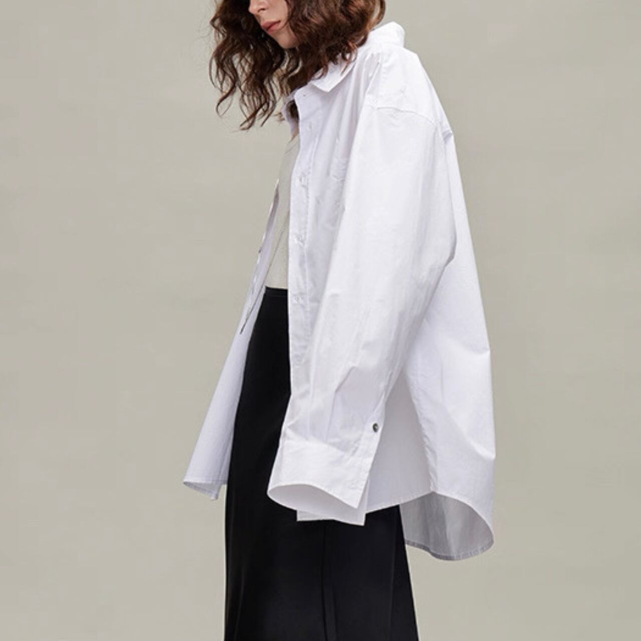 高密度に織り上げたコットンを使用し、ハリ感と柔らかさを兼ね備えた一枚。立体的なHラインシルエットとドロップショルダーが、ゆったりとした中にも計算された構築美を生み出す。上質でミニマルな仕立ては、羽織りとしてもレイヤードとしてもオールシーズン活躍する万能アイテム。