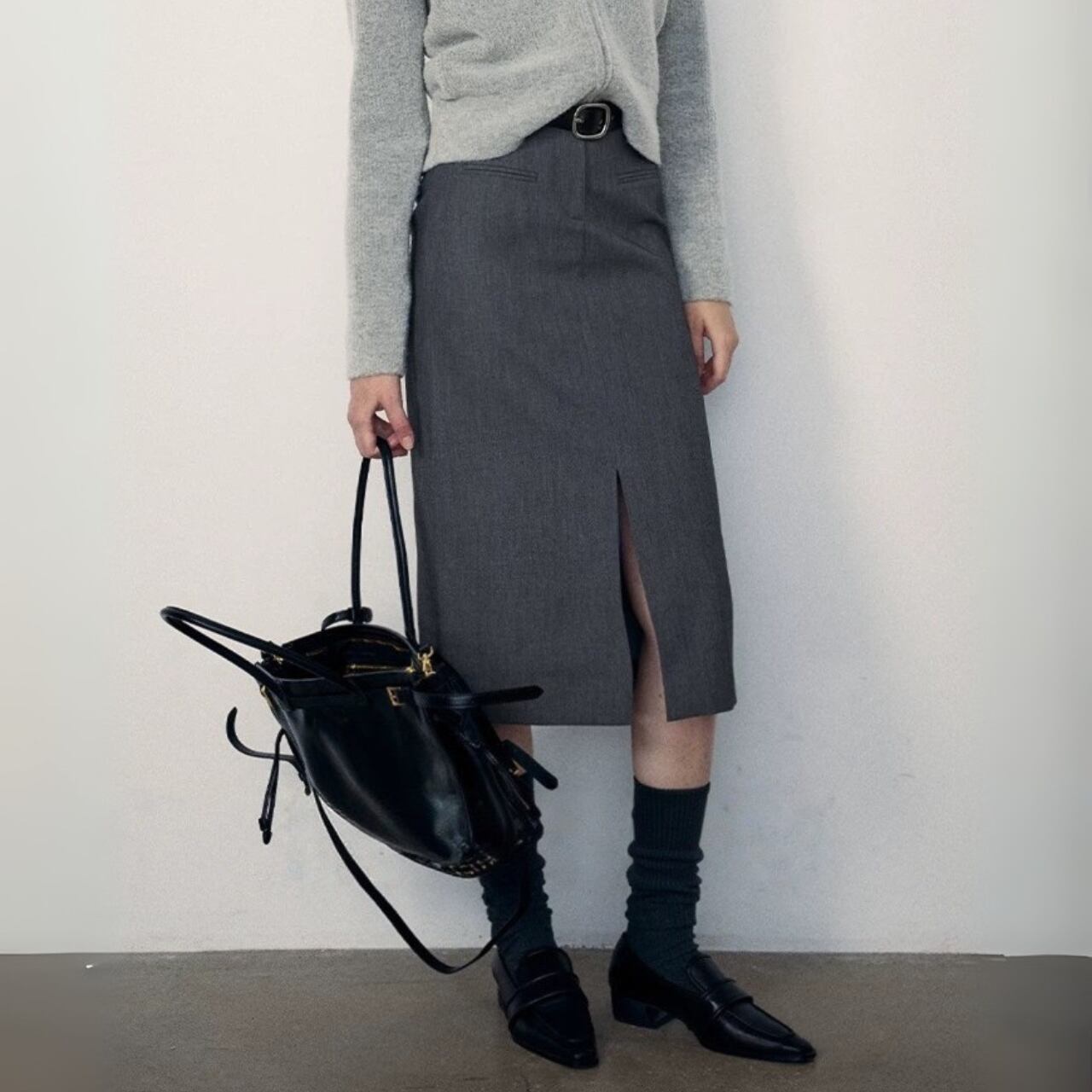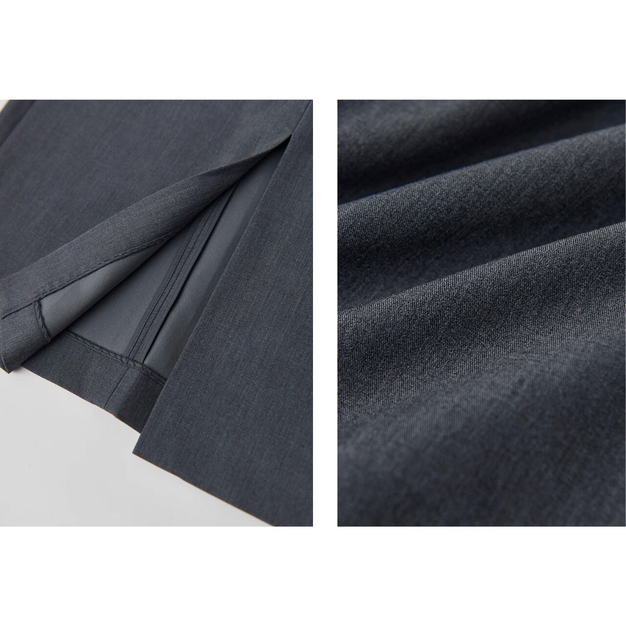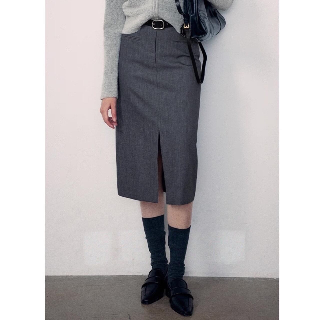 上質感漂うハイエンドなウールブレンド素材を使用。さらりとした肌触りとしっとりとした温もりをあわせ持ち、美しいラインを長くキープできるのも魅力。程よくゆったりとしたHシルエットは自由度とこなれ感を生み、センタースリットと膝下丈がクールで知的な女性らしさを演出する。トップスを選ばず着こなし次第でシーズンを越えて活躍する一着。