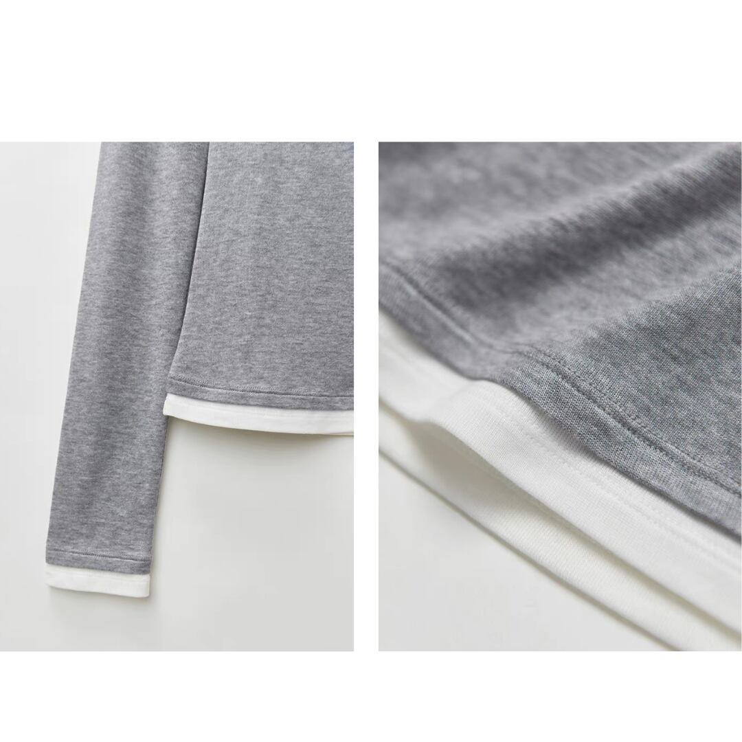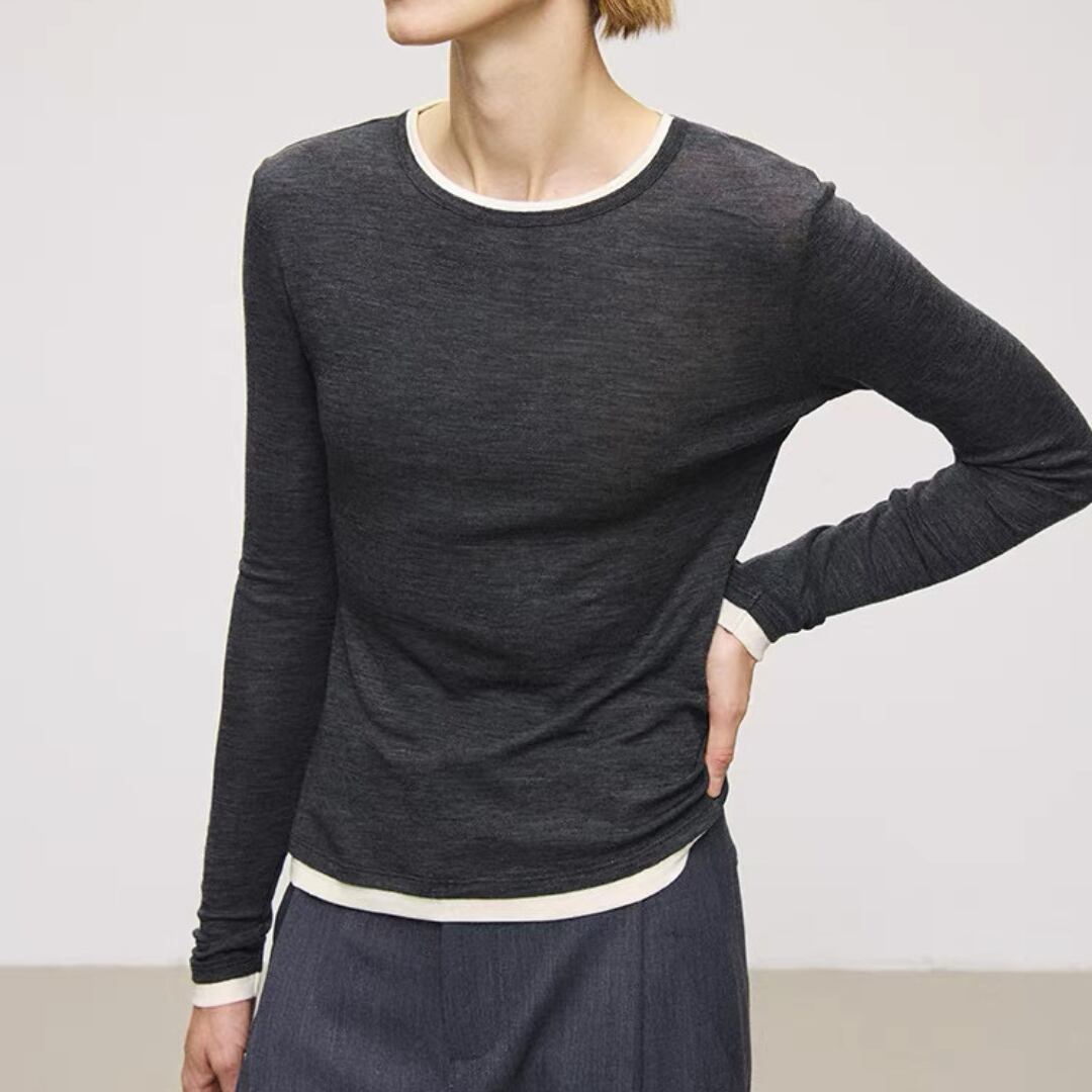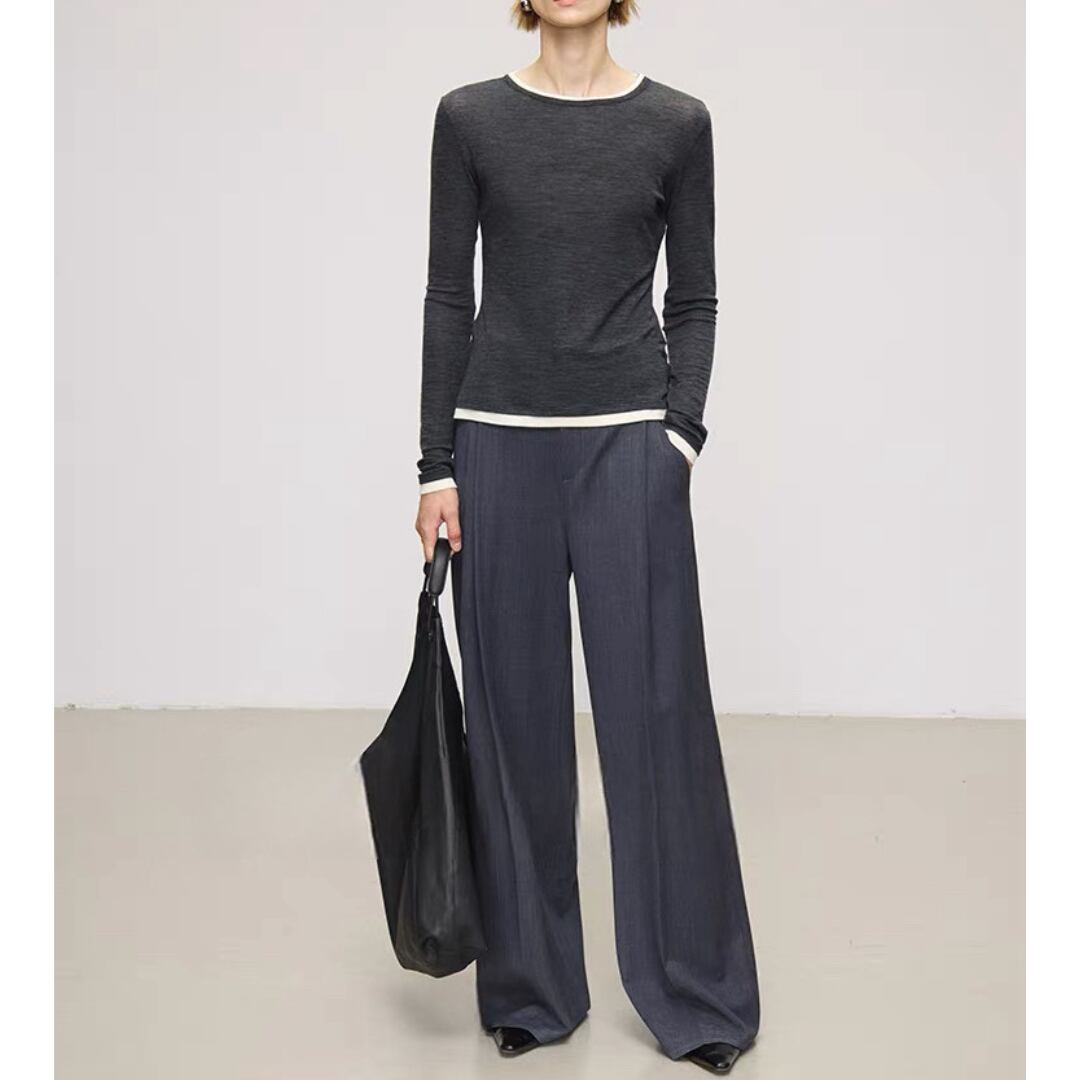 縁に走るレイヤードディテールが、シンプルな中に奥行きと抜け感を生み出す一着。ウールブレンドの上質な編地は、ほんのりとした光沢感と、柔らかく心地よい肌触りを実現する。細身すぎずラフすぎない計算されたシルエット。上質を知る大人にこそ届けたい、控えめで上品なモードニット。
