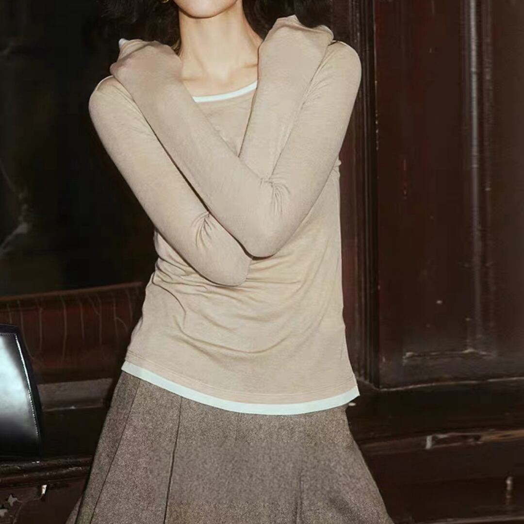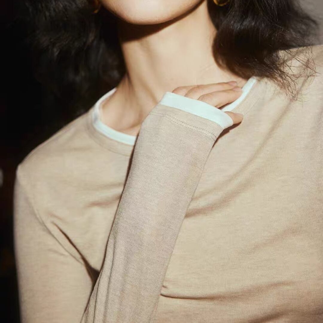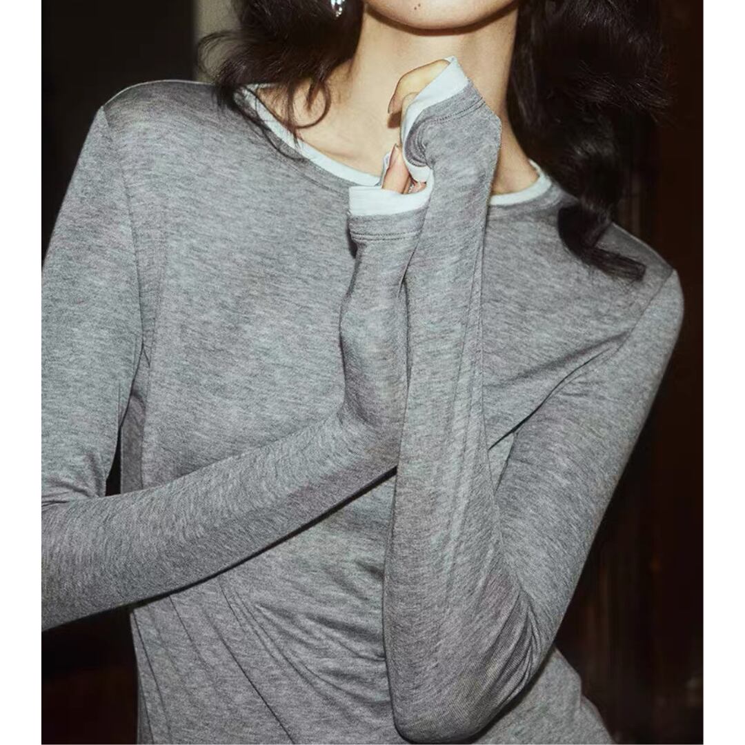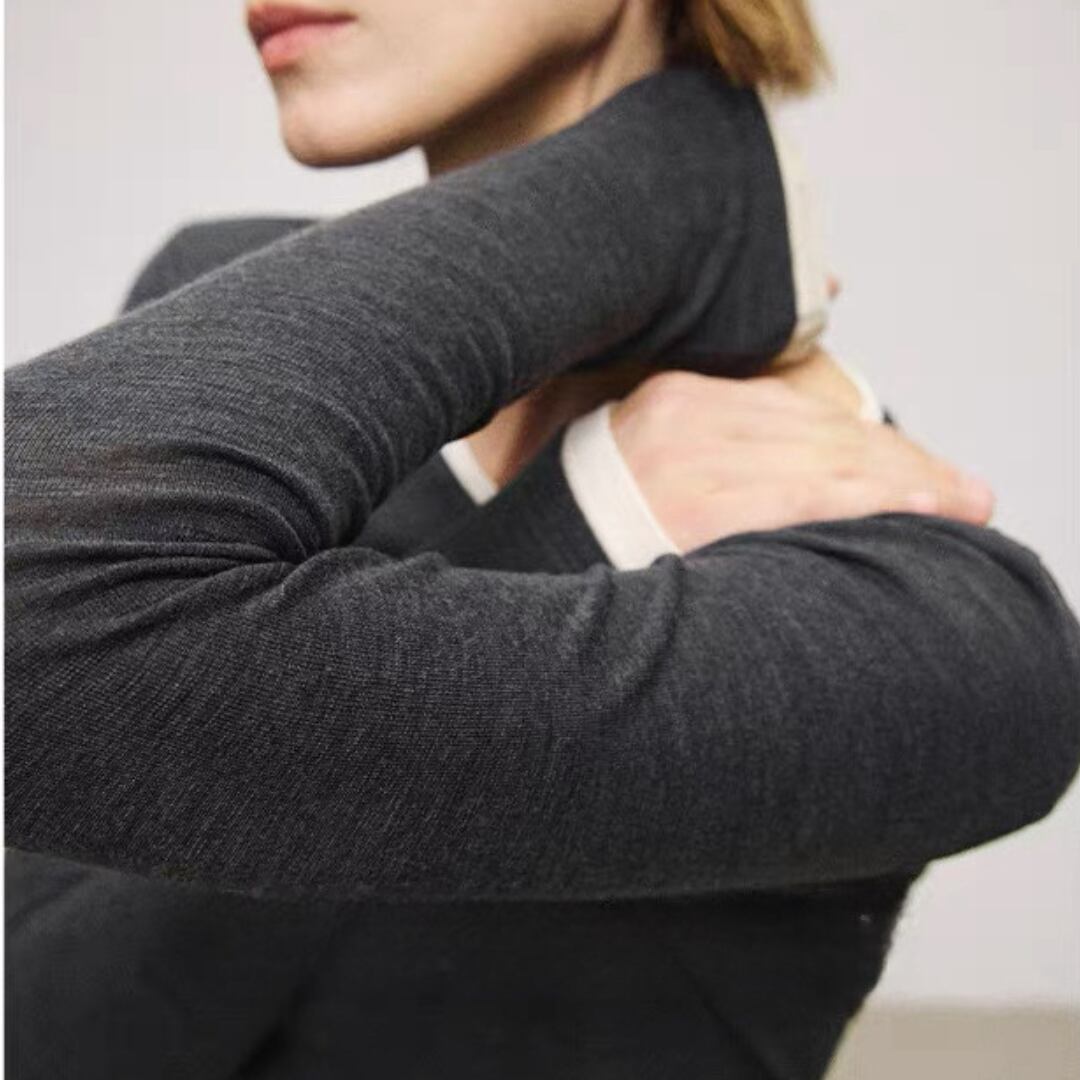 縁に走るレイヤードディテールが、シンプルな中に奥行きと抜け感を生み出す一着。ウールブレンドの上質な編地は、ほんのりとした光沢感と、柔らかく心地よい肌触りを実現する。細身すぎずラフすぎない計算されたシルエット。上質を知る大人にこそ届けたい、控えめで上品なモードニット。